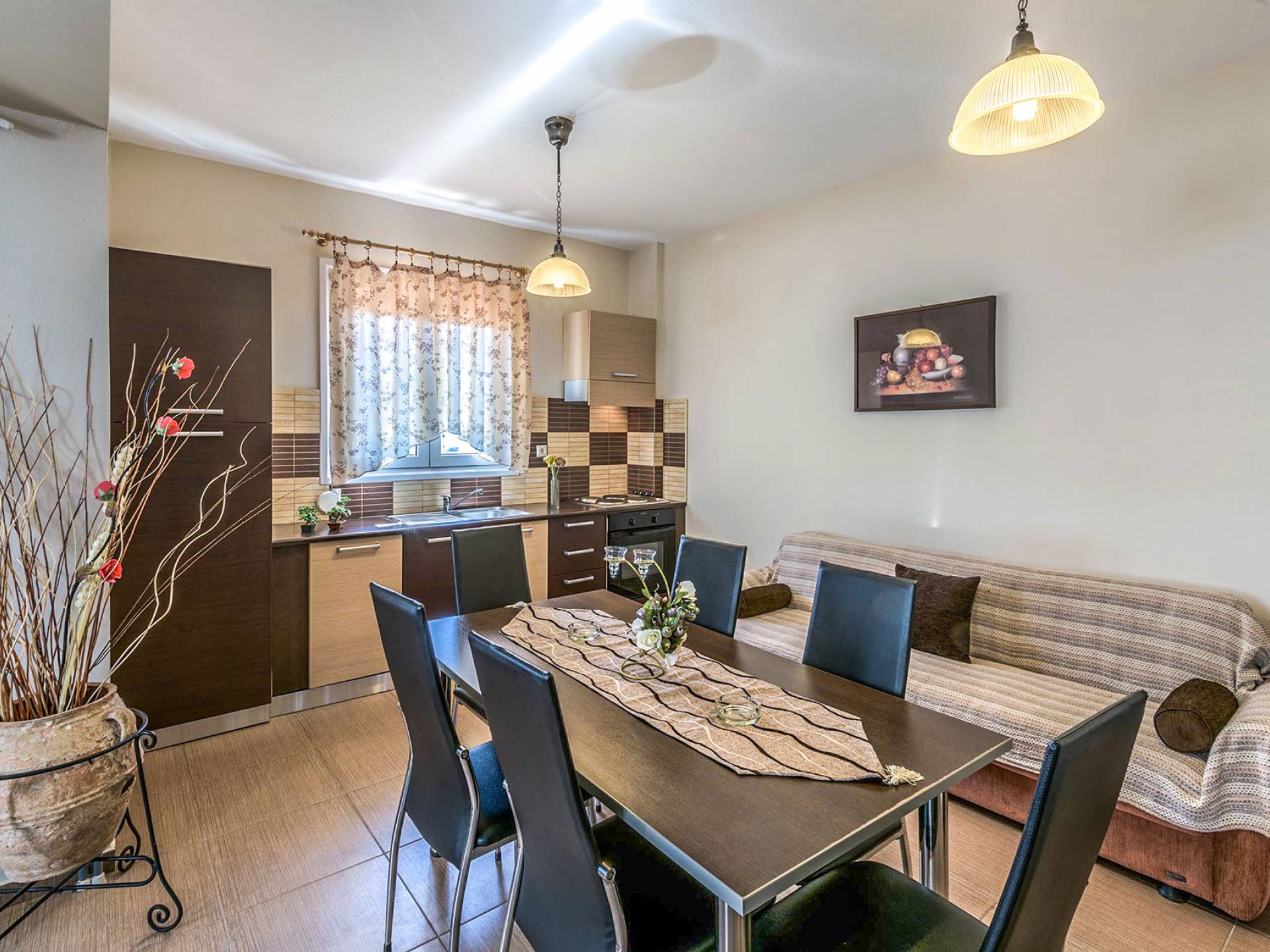 El Lydia Villa Rethymno se encuentra en Sfakaki, a 300 metros de la playa ya 300 metros del supermercado y la taberna más cercanos. La ciudad de Rethymno está a 10 km y el aeropuerto de Heraklion a 75 km. Lydia 2 Villa Rethymno tiene dos plantas y su tamaño alcanza aproximadamente 110 metros cuadrados. En la entrada hay un salón comedor con aire acondicionado y una cocina totalmente equipada. Las puertas francesas se abren a un balcón con hermosas vistas y muebles de jardín.