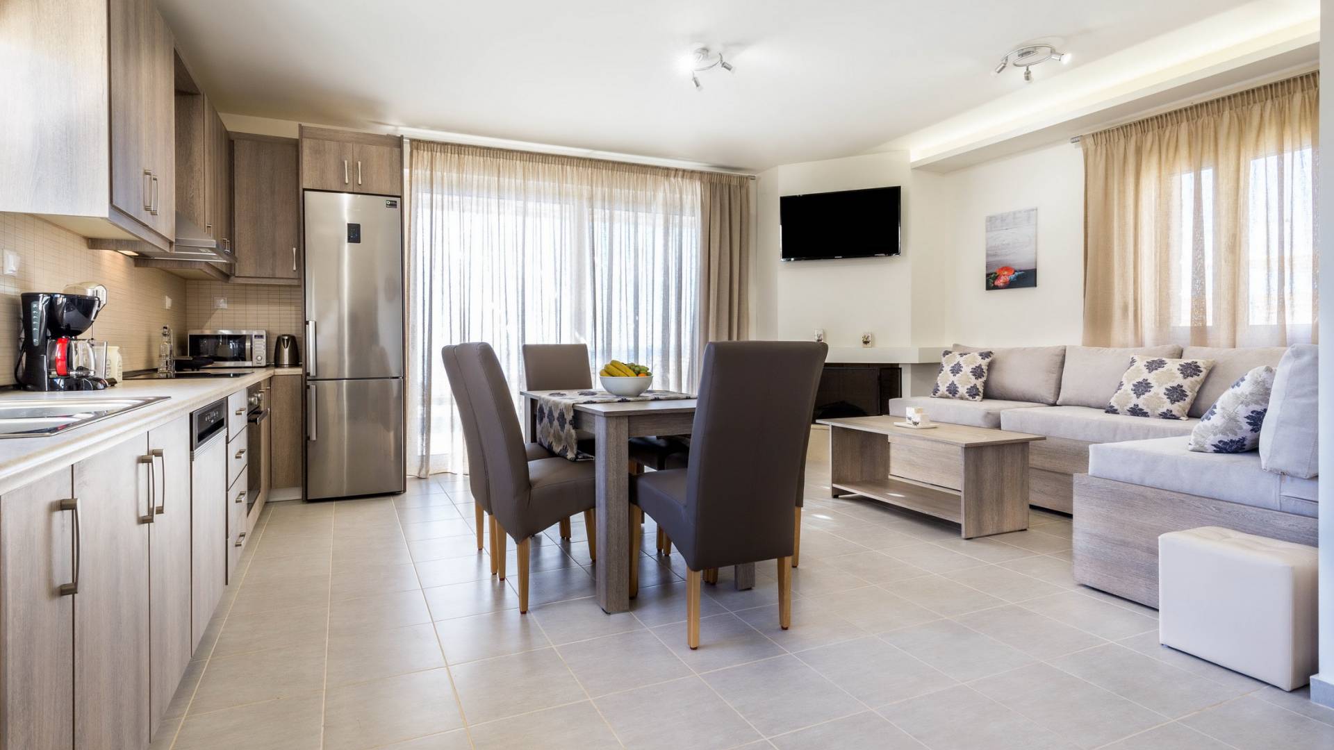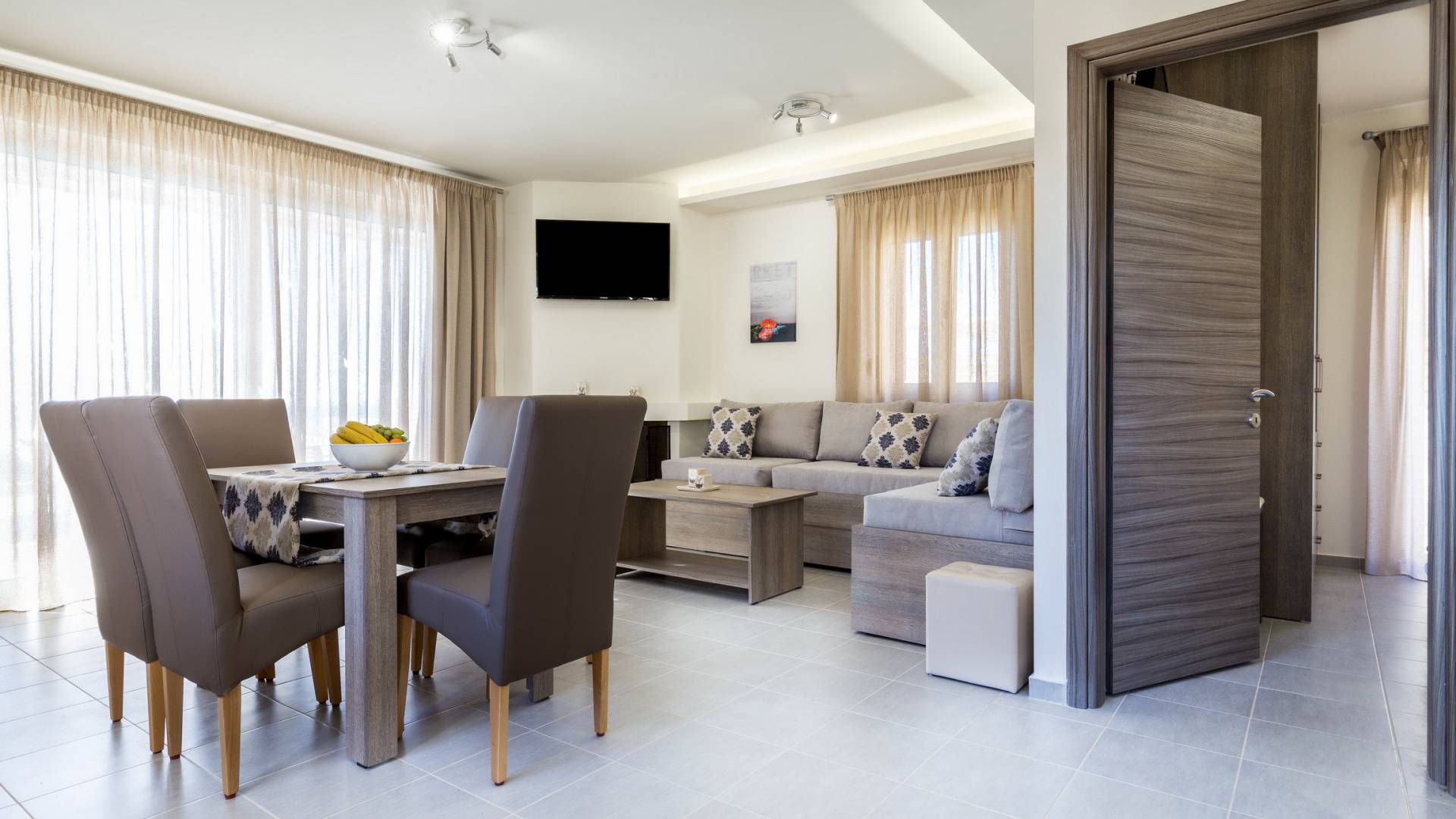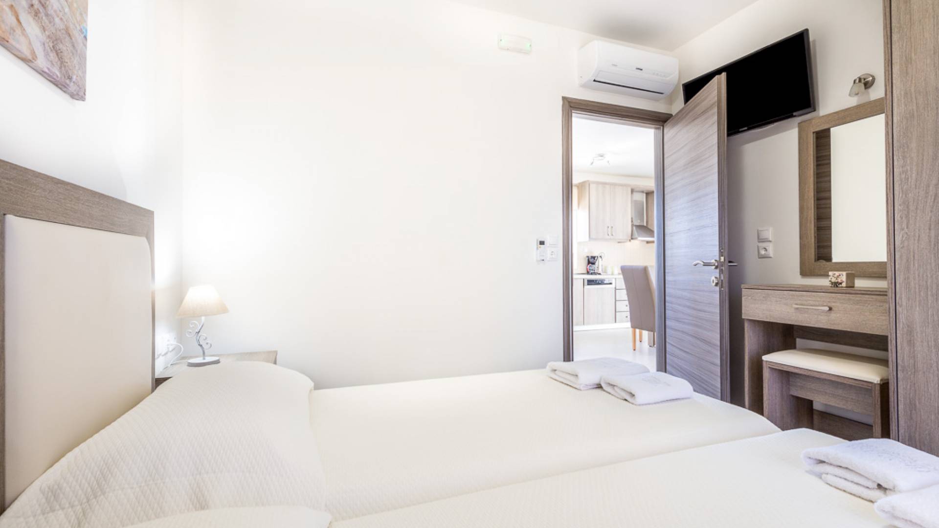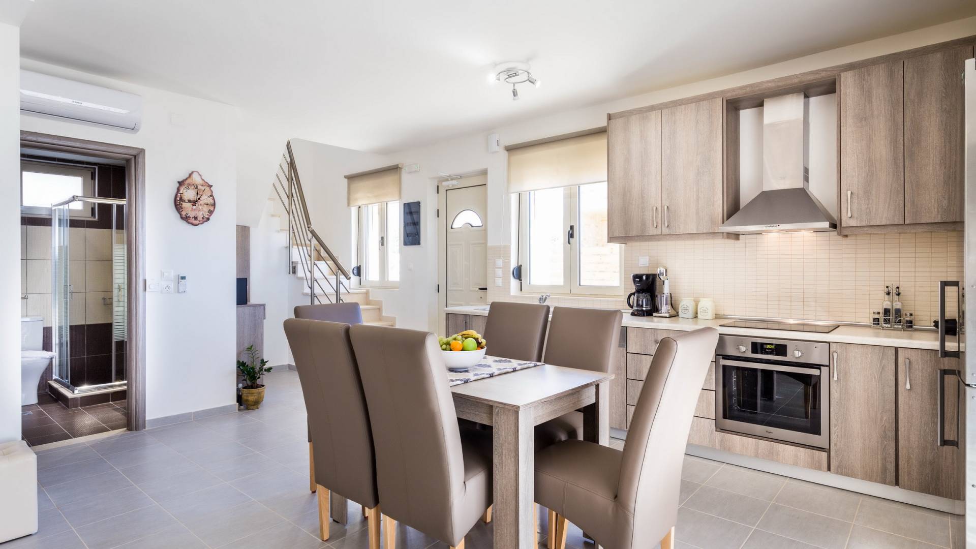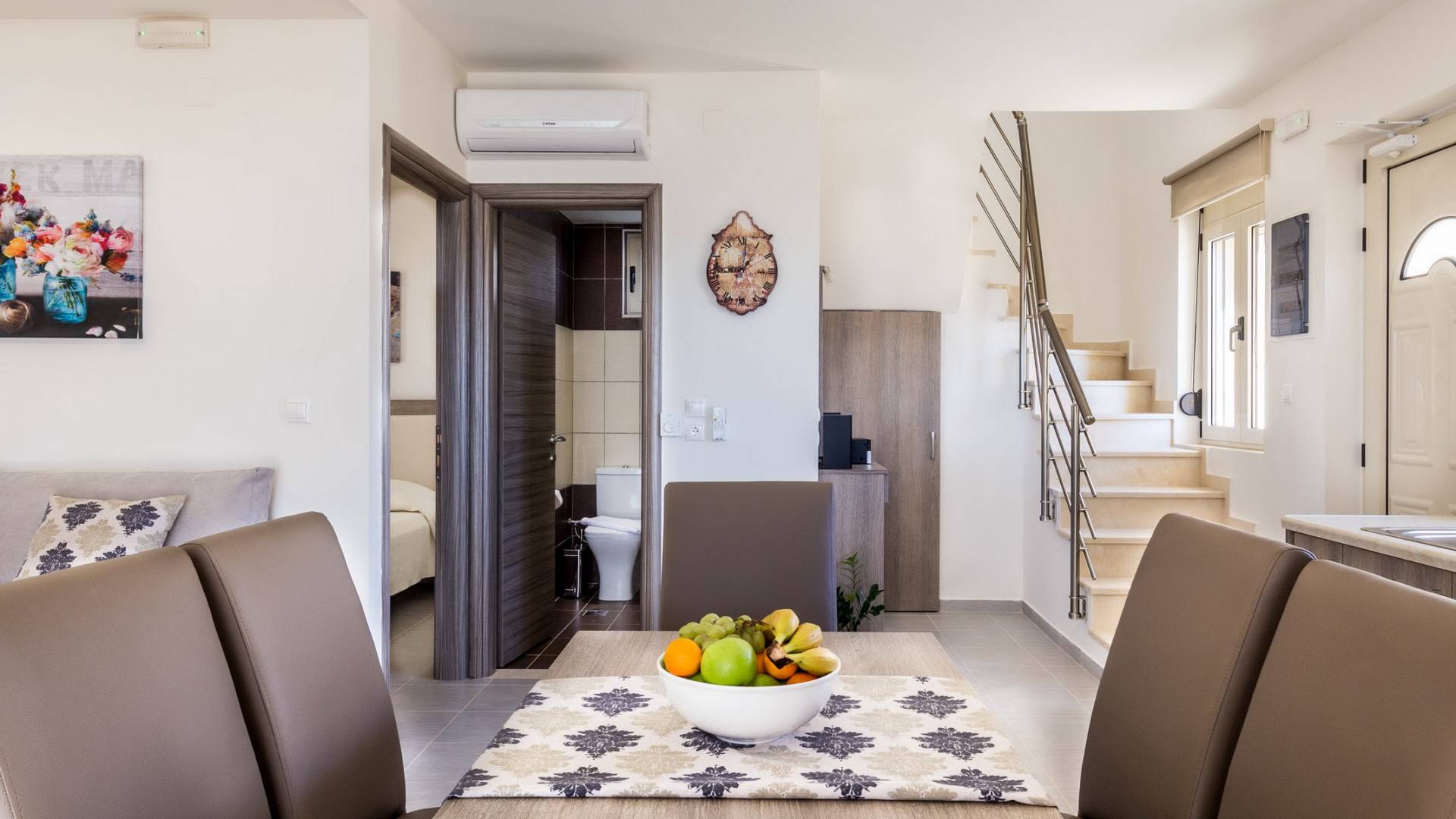 Todas las habitaciones de Lefkopetra Villa Rethymno están completamente amuebladas y decoradas con un gusto excepcional y un énfasis en el lujo y la funcionalidad. Encontrarás Internet VDSL WI-FI, aire acondicionado, calefacción y Smart TV satelital full HD. En la planta baja de la villa, hay un dormitorio con dos camas individuales, una cocina totalmente equipada con comedor y todos los electrodomésticos modernos como cafetera, hervidor, tostadora, exprimidor, mini picadora, batidora, lavavajillas, refrigerador con congelador, lavadora y horno con vitrocerámica, gran mesa de comedor, cómoda sala de estar y WC. La puerta de doble acristalamiento da acceso a la terraza y al área de la piscina. En el primer nivel, hay dos cómodas habitaciones con una cama doble, inodoro y terrazas con una vista infinita al mar y sus alrededores.