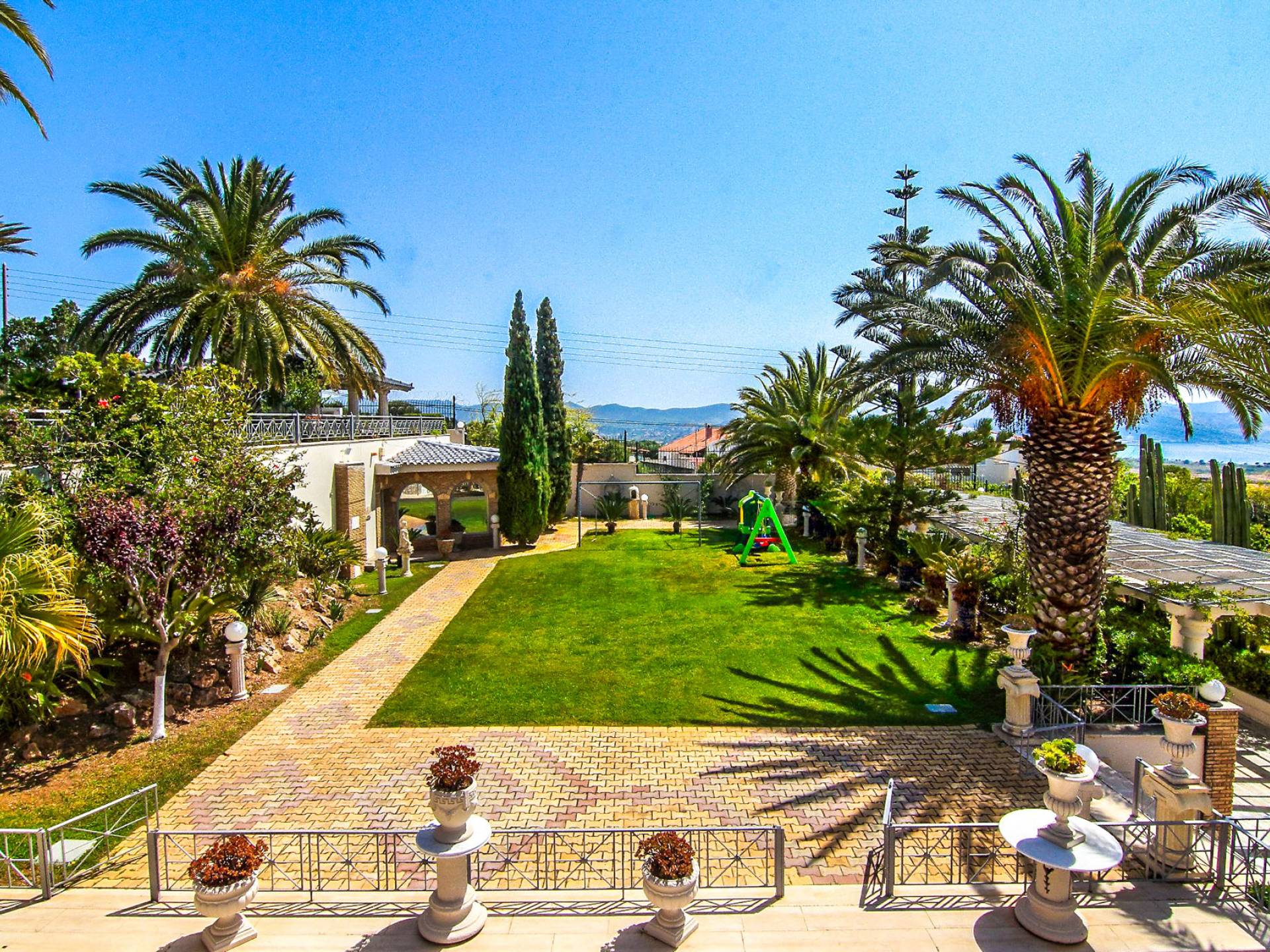 Teniendo en cuenta la geografía general de Grecia, así como la local, Kay Wings Villa Anavissos está situada en la ladera de una montaña, muy por encima del nivel del mar, pero no muy lejos de ella. A una distancia aproximada de 1,5 km del mar y su citada altura, está dotado de un panorama del Golfo Sarónico y sus alrededores, el mar visible casi en todo momento. Este alquiler de lujo consta de 8 habitaciones privadas con baños en suite, una piscina privada al aire libre y una piscina privada cubierta.