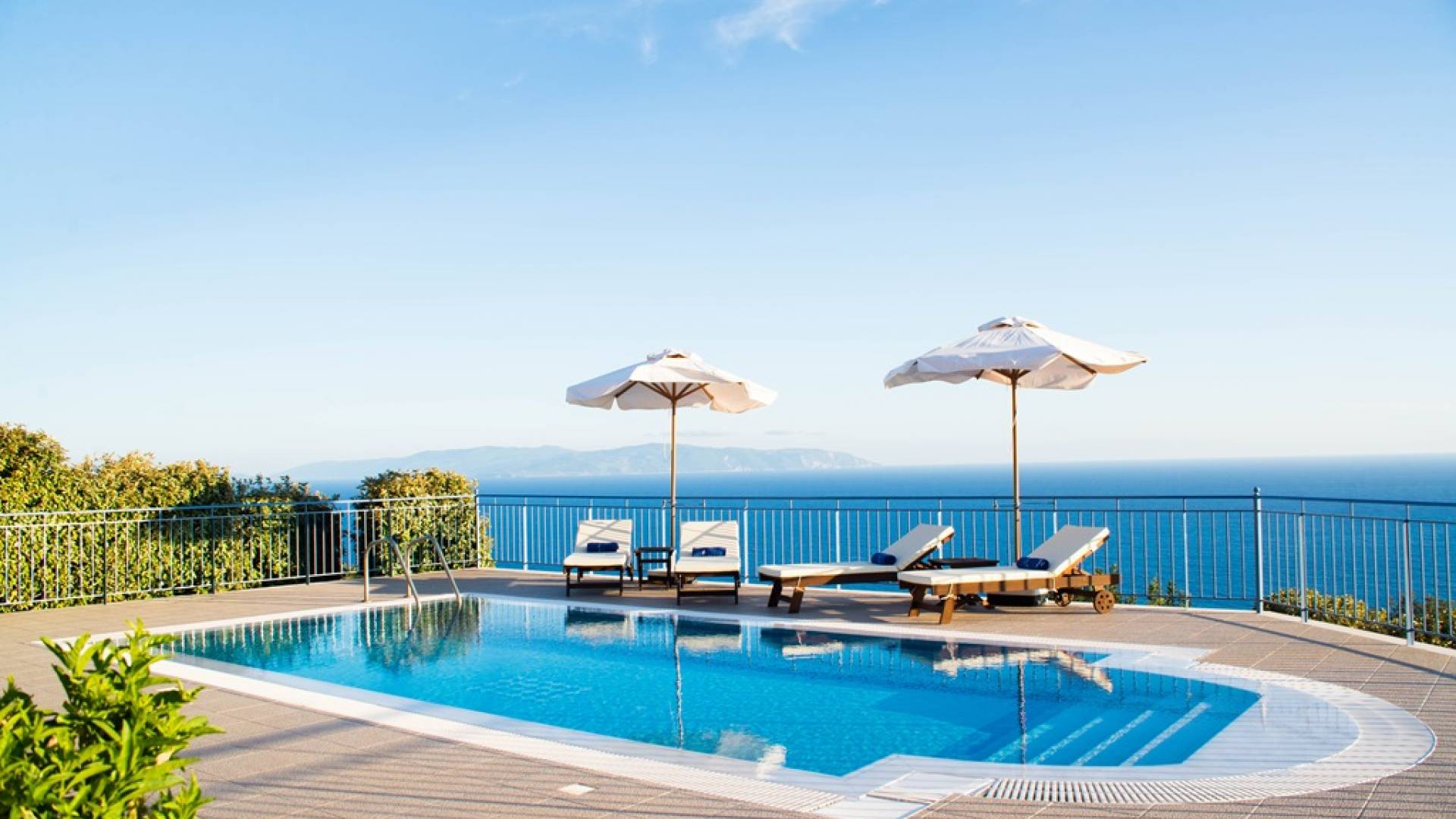 Desde todos los aspectos del complejo, el visitante disfrutará de una vista increíble: desde el sur, domina el mar Jónico, mientras que desde el norte, la parte más alta de la montaña Ainos. La belleza natural de la isla de Kefalonia, combinada con la ubicación privilegiada de las villas, así como el lujo y el entorno pintoresco, garantizan ofrecerle momentos memorables y encantadores.