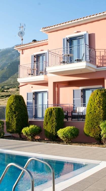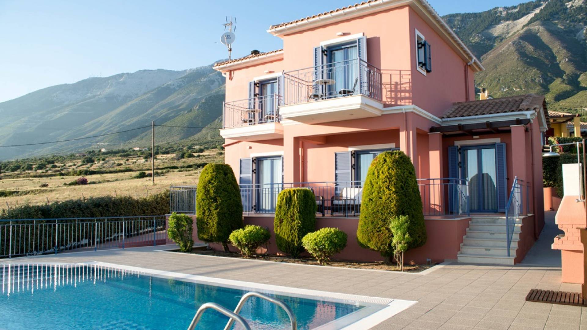 Jonian Sea View Villas Kefalonia son 2 villas de lujo en alquiler con 4 dormitorios y 2 piscinas privadas. Ionian Sea View Luxury Villas está situado en la parte sur de la isla de Kefalonia, en el pueblo de Platies, sobre la costa. El complejo incluye dos villas de lujo; Diseo y Penélope. Las villas tienen diferentes diseños y estilos de decoración, inspirados en la belleza jónica griega. Cada villa tiene una piscina privada y está completamente equipada con las necesidades requeridas para una estadía relajante e inolvidable.