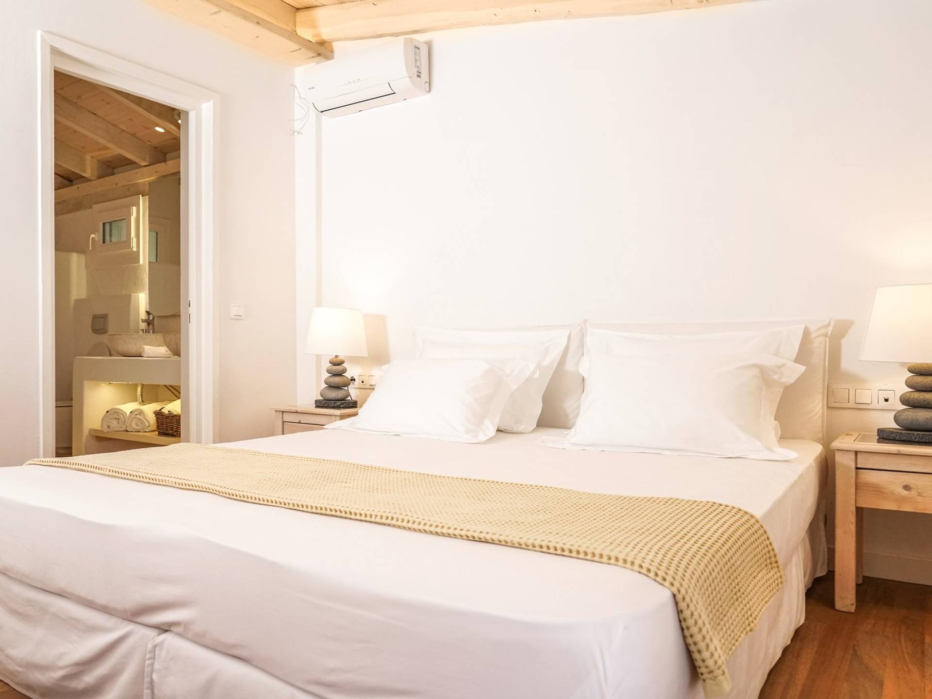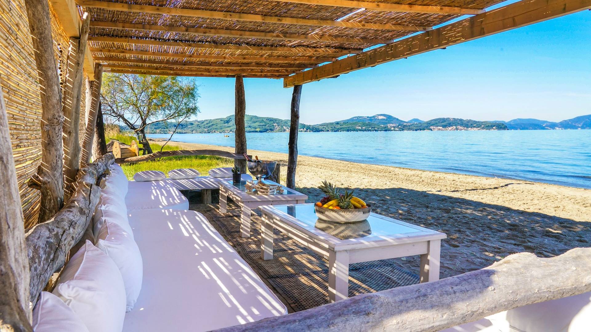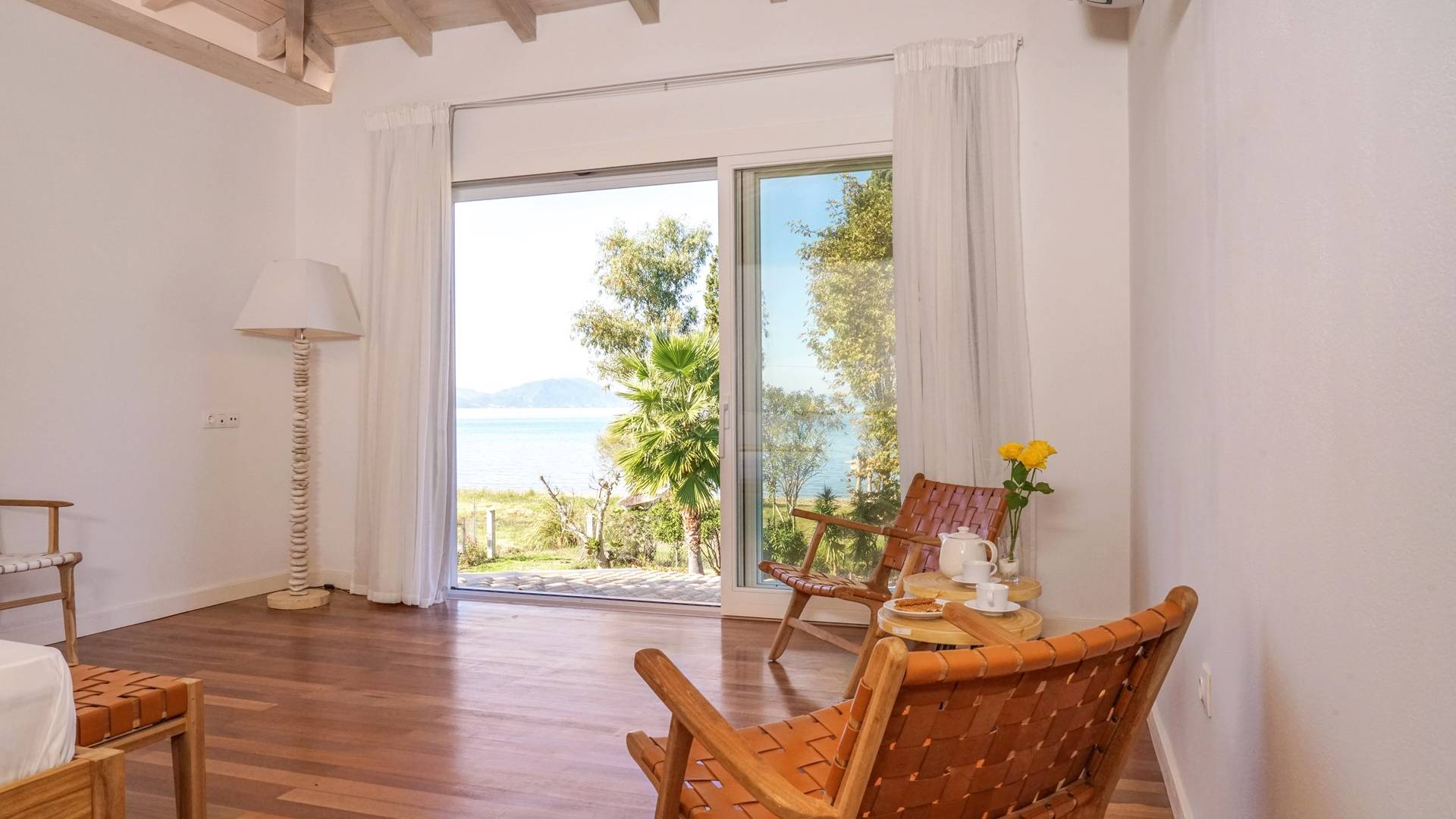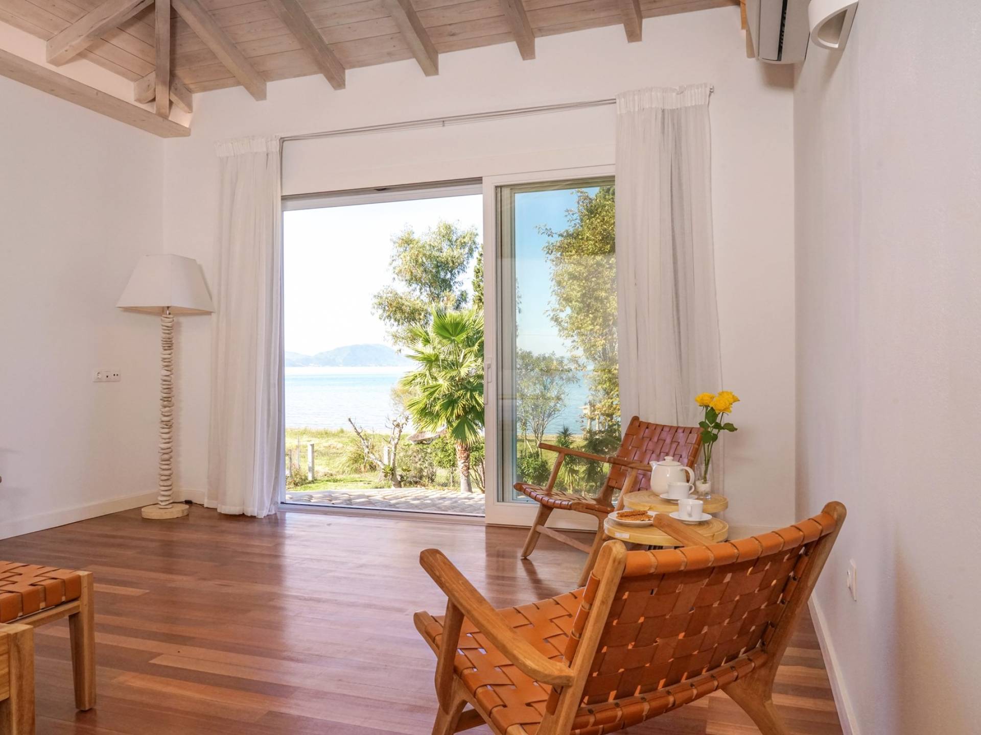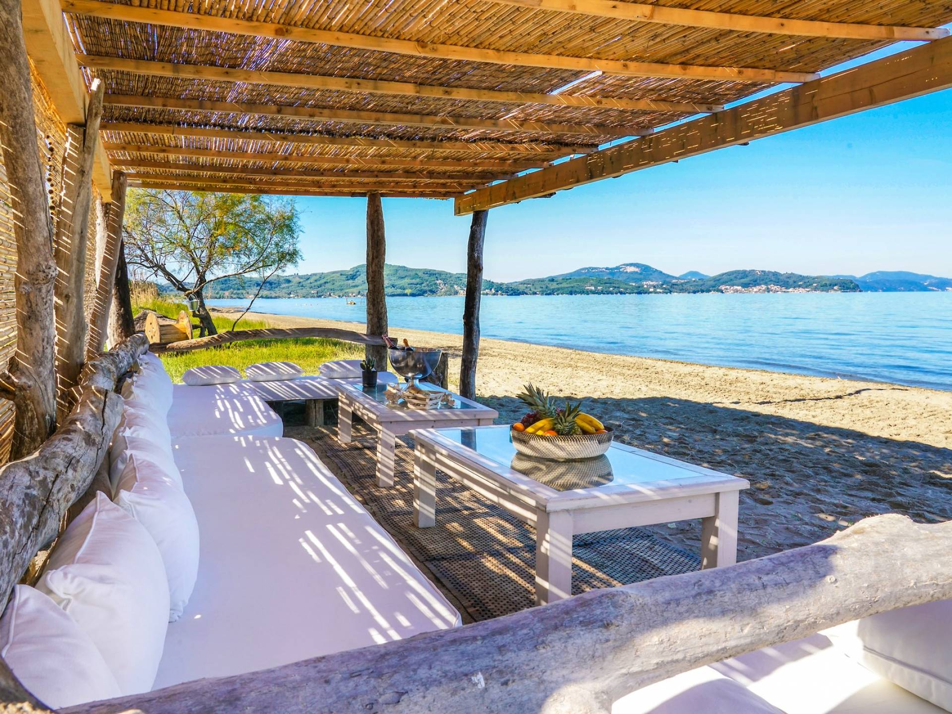 Salga a su patio y experimente las mejores vistas que la naturaleza tiene para ofrecer. Comparte un desayuno típico corfiota acompañado del cálido sol de la mañana en presencia de olivos y palmeras. Y cuando te apetezca darte un baño, tus pasos te llevarán directamente a la entrada exclusiva de la playa de arena. Quédese bajo su exclusivo mirador de playa, tome el sol en las lujosas hamacas, relájese en las aguas azules del mar Jónico y saboree una bebida refrescante mientras los dedos de los pies juegan con la arena fina y dorada.