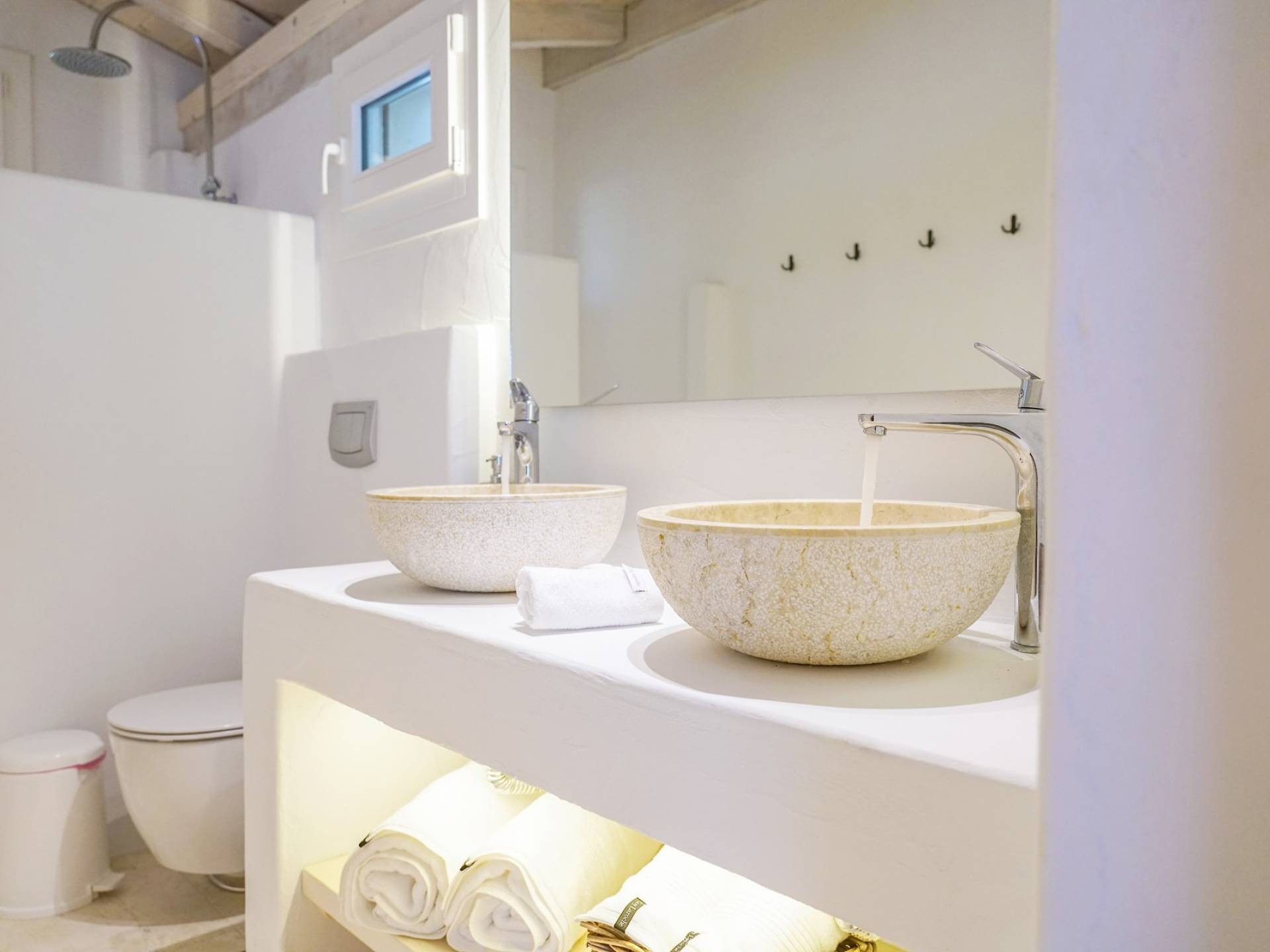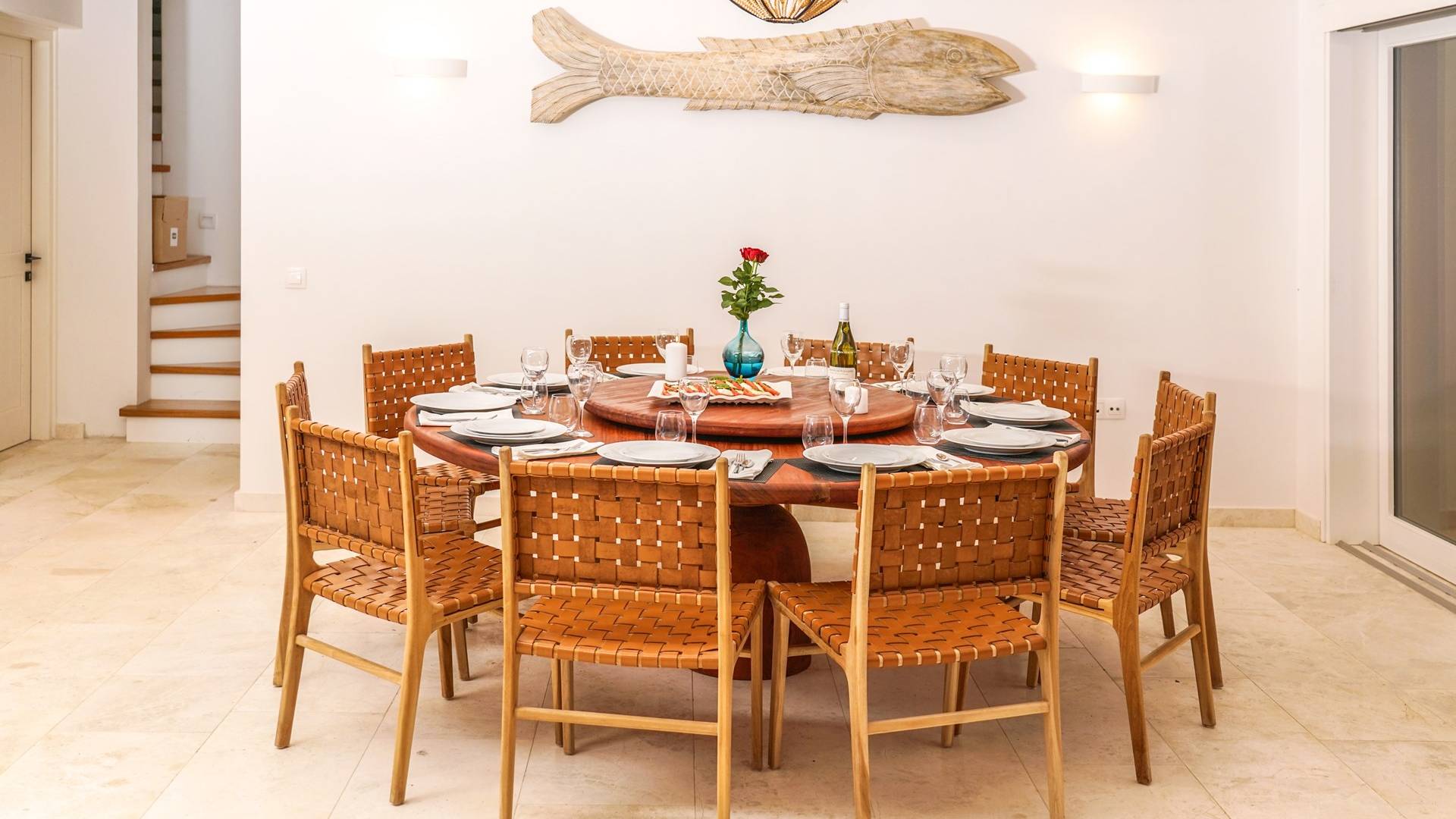 La combinación de madera y piedra y la cálida iluminación crean un ambiente acogedor listo para fomentar cada momento sin preocupaciones de su estadía. Construido estratégicamente junto a la playa de arena, Natura Mare promete un contacto permanente con el mar. Abra la puerta de su propiedad y deje que la dulce brisa de la isla junto con el olor a ropa fresca acompañe su descanso en los cómodos muebles. Disfrute de una cena memorable con amigos o familiares en el sofisticado comedor o una copa de vino junto a la elegante chimenea.