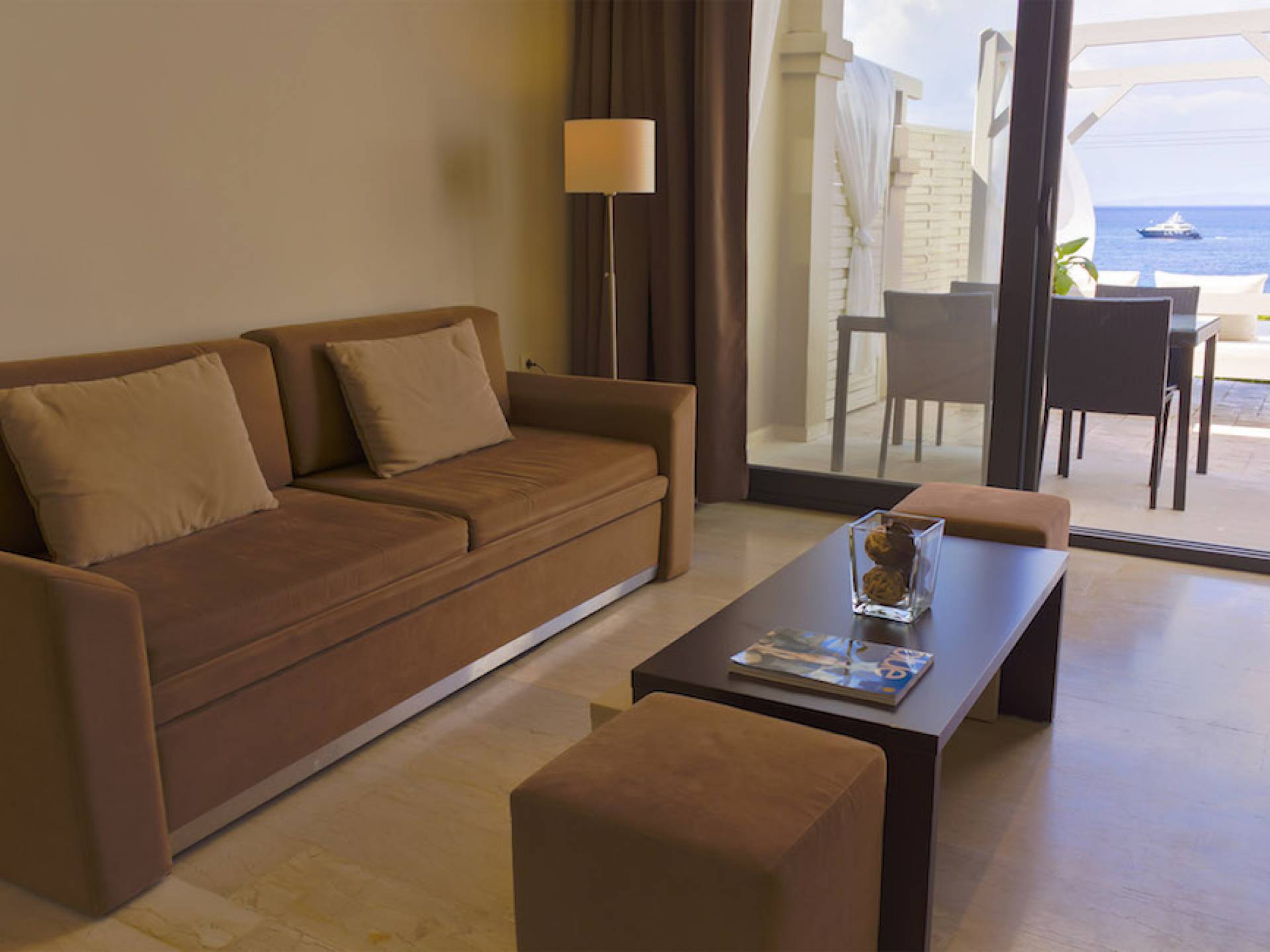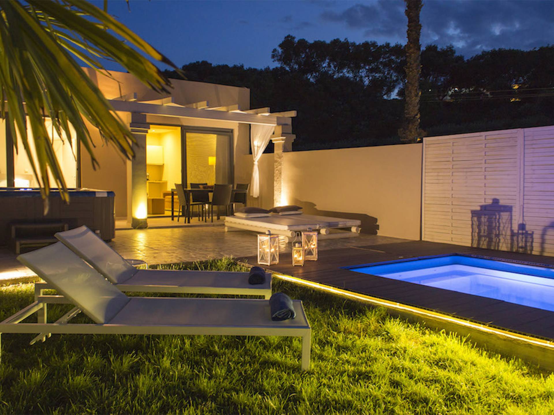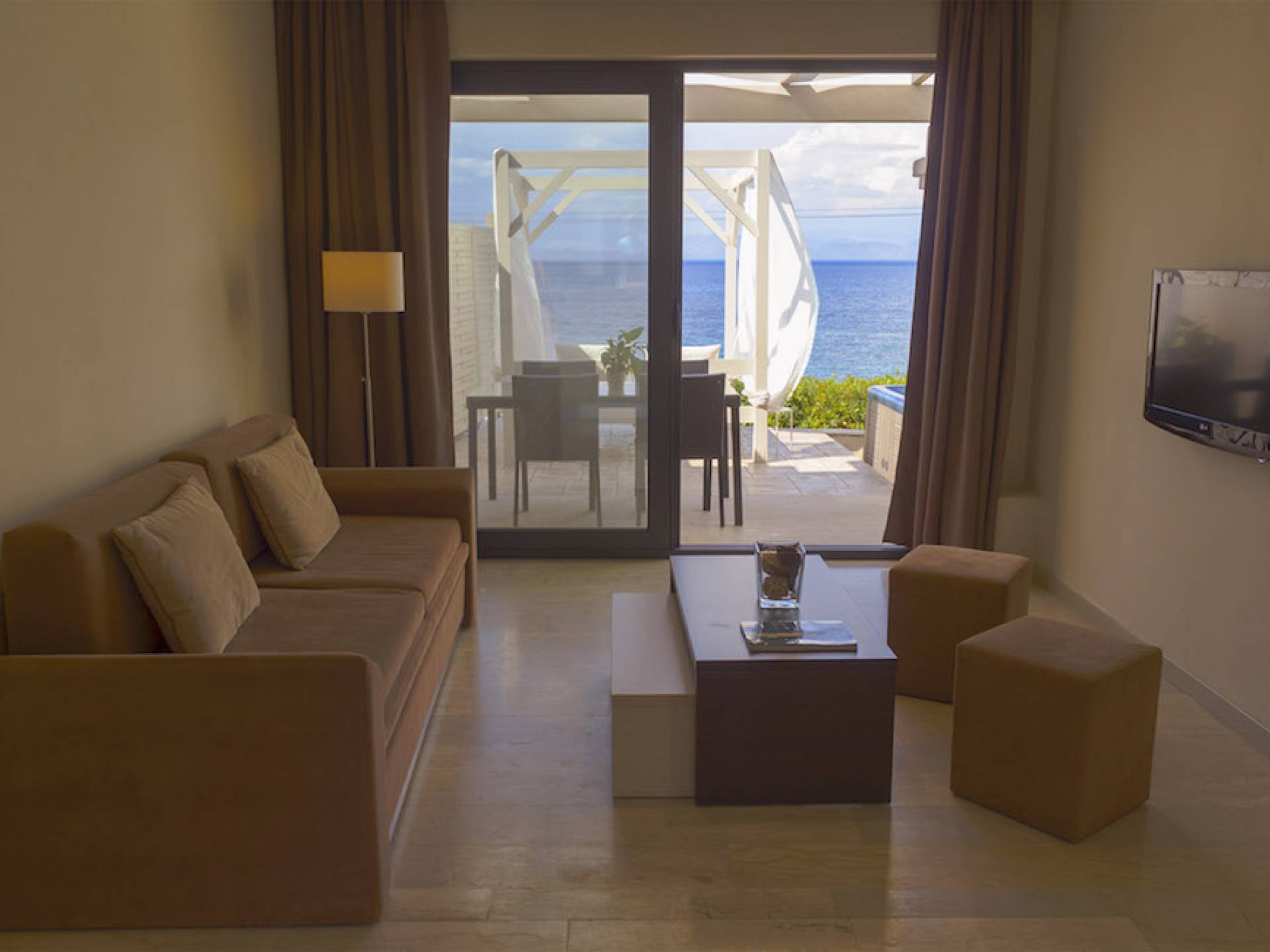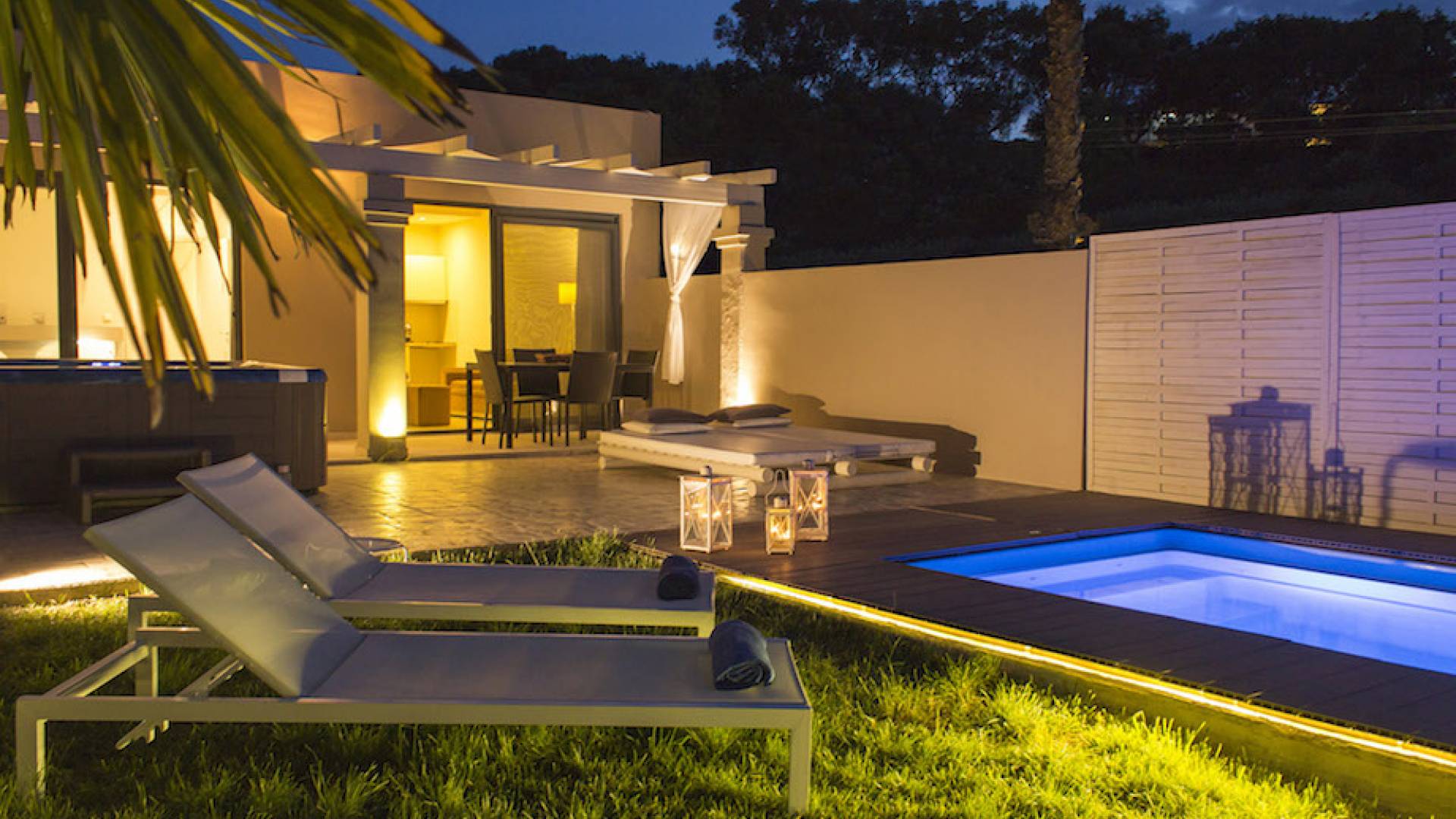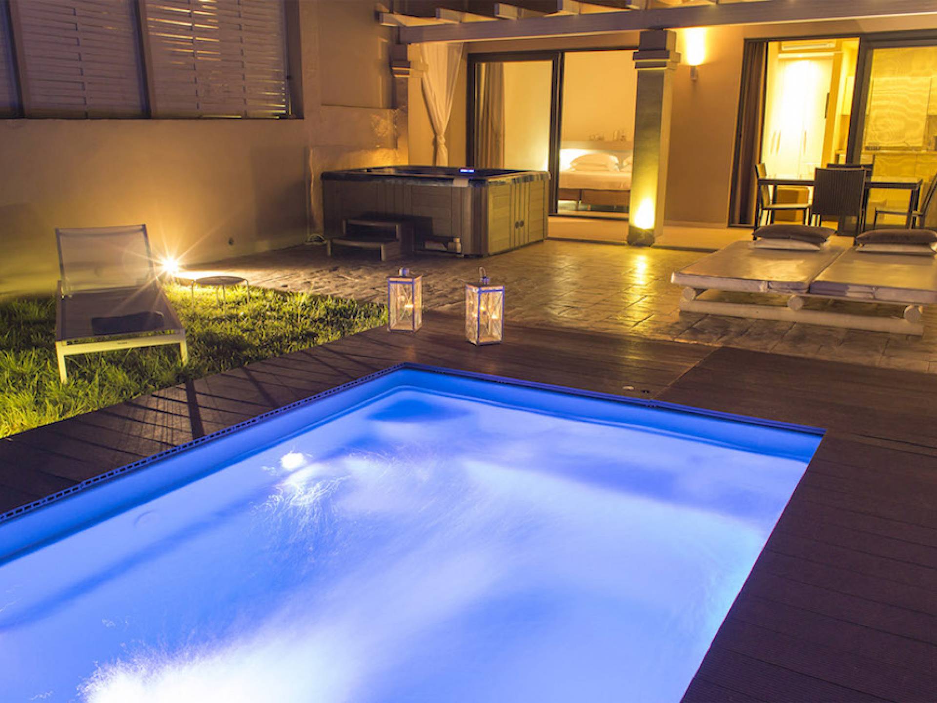 Todas las suites y villas tienen su propia terraza / patio y terraza privados para que pueda disfrutar de esos preciosos momentos del amanecer con vista al mar, o simplemente disfrutar de una copa de vino dentro de su propio jacuzzi / jacuzzi y / o privado Piscina.