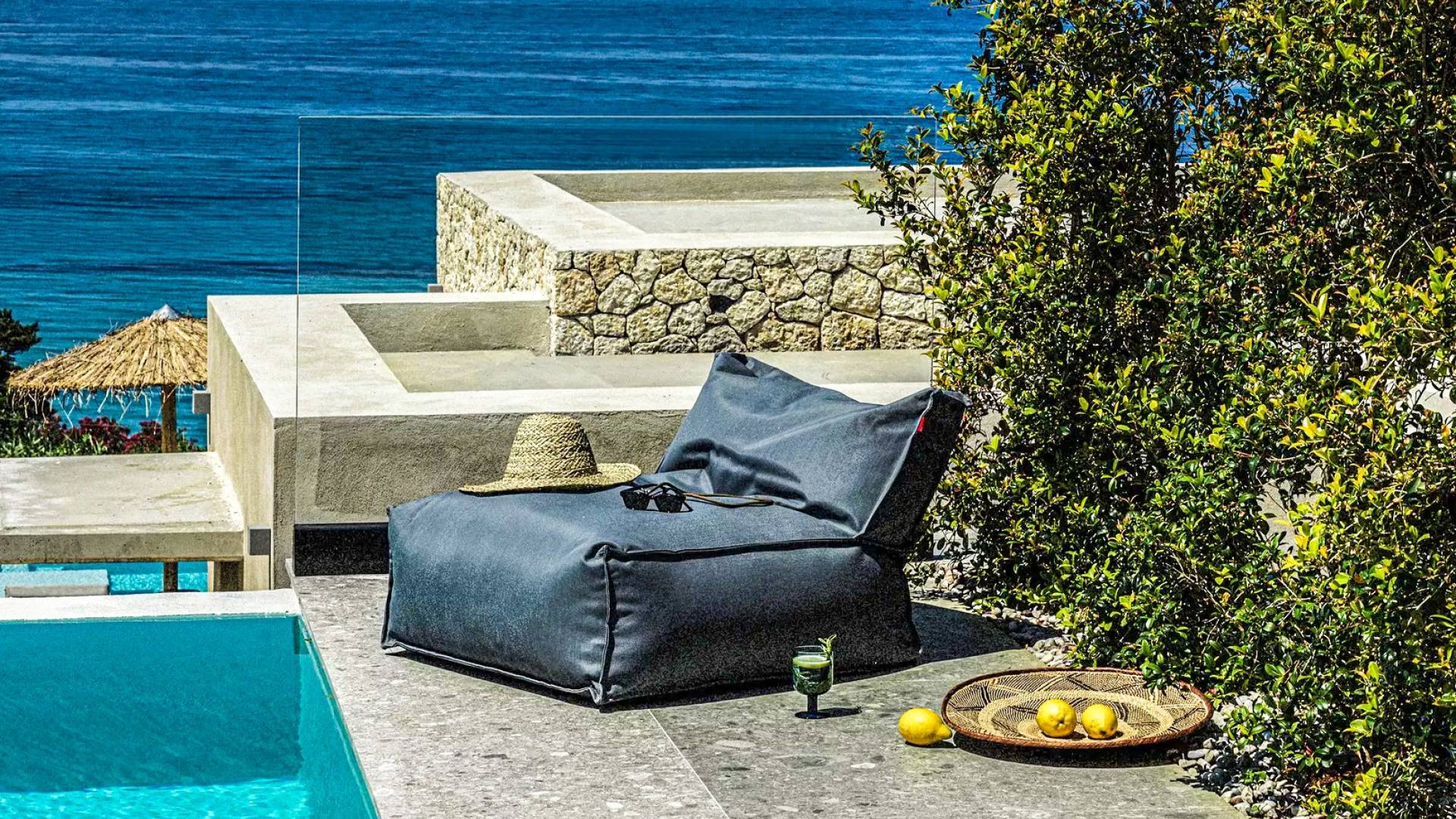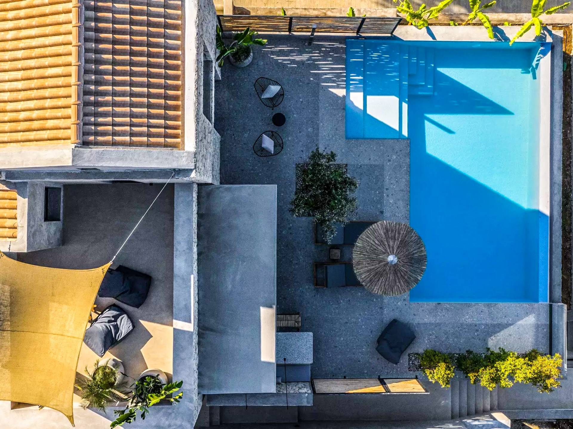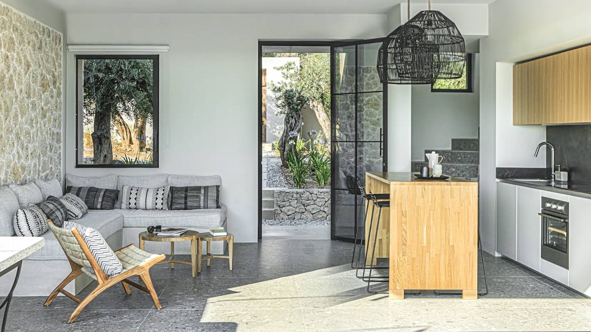 La villa de lujo de 75 m² tiene dos dormitorios, un salón con cocina y dos baños, uno de ellos en suite. Esta elegante villa puede alojar hasta 6 personas. Los elegantes interiores se conectan con el exterior con ventanas de piso a techo que dan la sensación de un área única que conduce a la piscina infinita privada. Su sueño confortable está garantizado con las camas de Coco-Mat. Dos camas king-size o twin para hasta cuatro personas y dos sofás cama. La terraza privada ofrece mucho espacio para relajarse y disfrutar de los días de verano. El diseño y la arquitectura crean un ambiente de lujo donde los materiales naturales dominan en una estructura plana amable y familiar con el huésped.