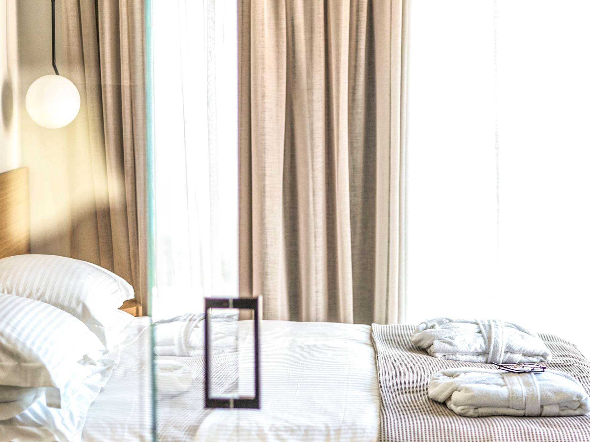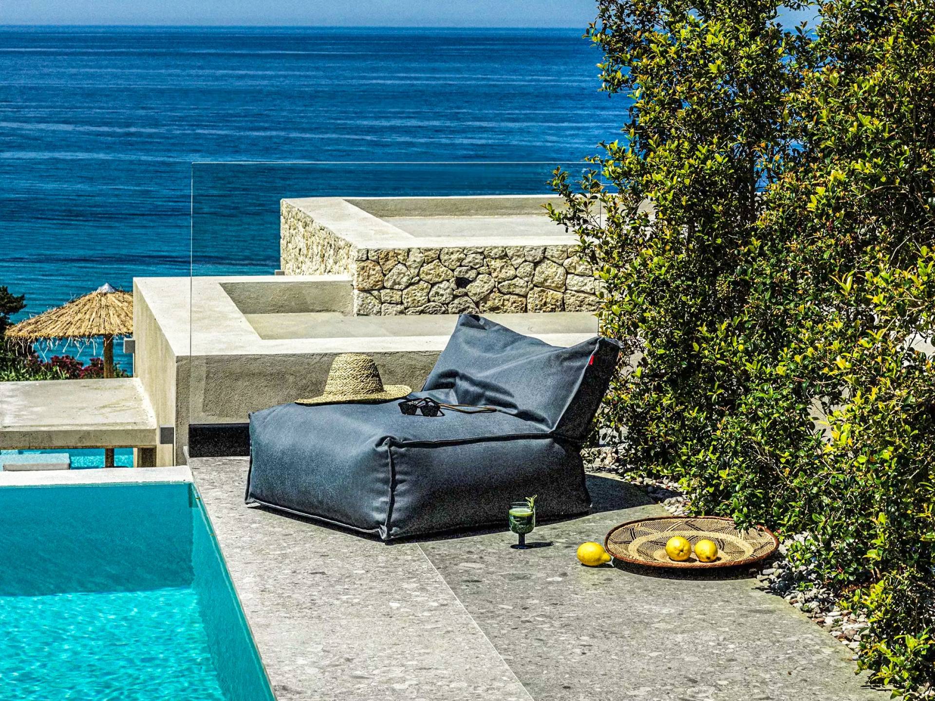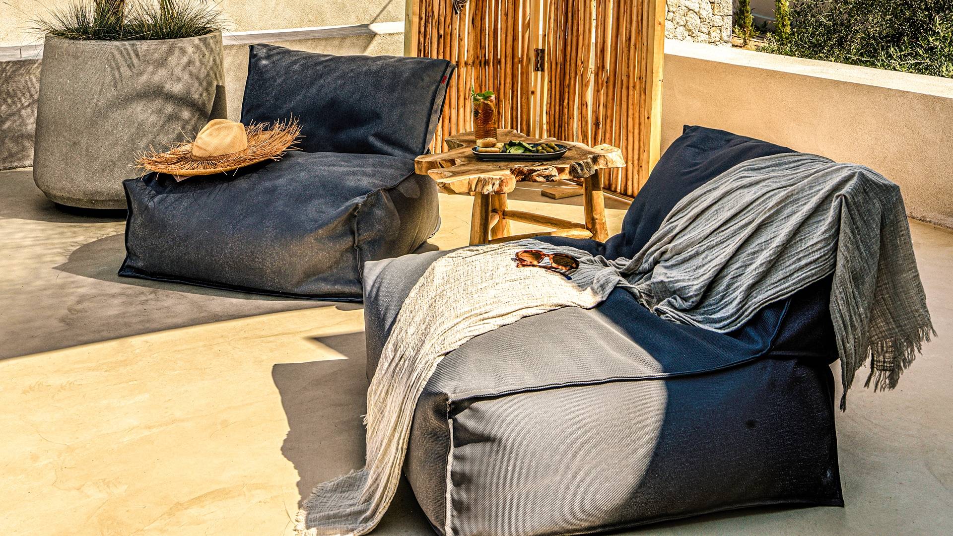 La villa de lujo de 75 m² tiene dos dormitorios, un salón con cocina y dos baños, uno de ellos en suite. Esta elegante villa puede alojar hasta 6 personas. Los elegantes interiores se conectan con el exterior con ventanas de piso a techo que dan la sensación de un área única que conduce a la piscina infinita privada. Su sueño confortable está garantizado con las camas de Coco-Mat. Dos camas king-size o twin para hasta cuatro personas y dos sofás cama. La terraza privada ofrece mucho espacio para relajarse y disfrutar de los días de verano. El diseño y la arquitectura crean un ambiente de lujo donde los materiales naturales dominan en una estructura plana amable y familiar con el huésped.