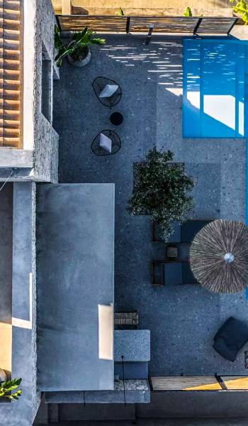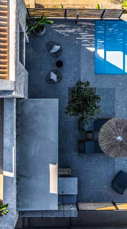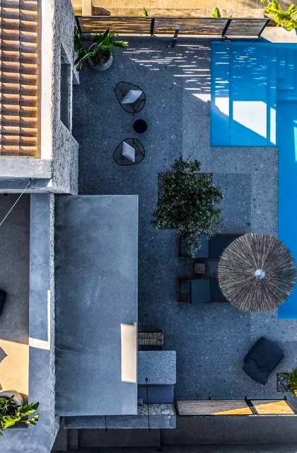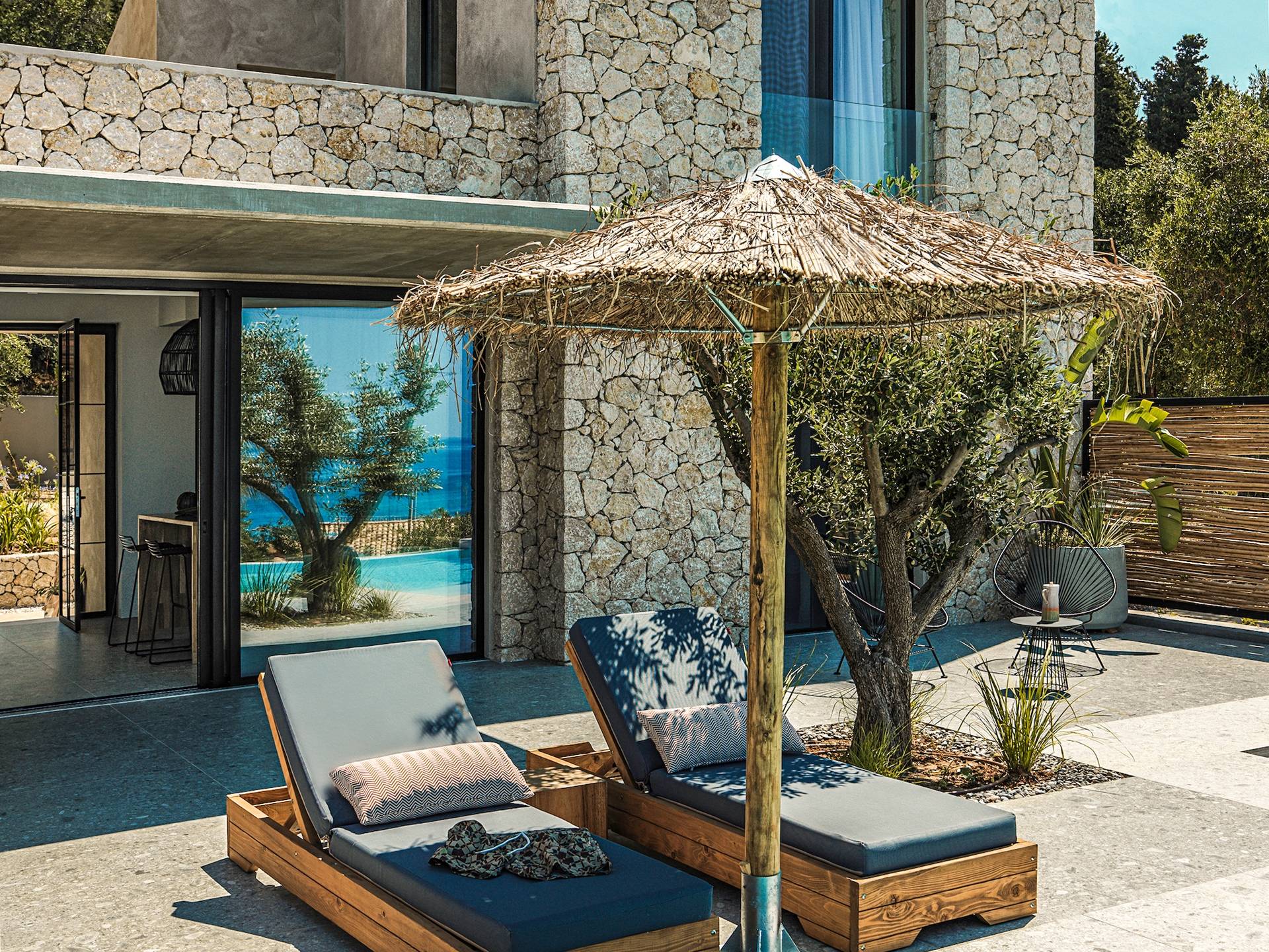 Mimi and Coco es una estructura bioclimática que consta de tres villas con piscinas privadas en el lado oeste de la isla de Corfú. En un entorno cautivador frente al mar Mediterráneo, Mimi & Coco presenta un retiro tranquilo en la isla de Corfú. Los materiales utilizados en el proceso de construcción son ecológicos, lo que da como resultado estructuras de alta eficiencia energética. Un procedimiento de construcción especial combinado con materiales naturales, como la lana para el aislamiento y la piedra para las paredes, coloca a este proyecto entre los mejores en términos de consumo de energía, mientras que el tratamiento de aguas y desechos complementa nuestro apoyo al medio ambiente.