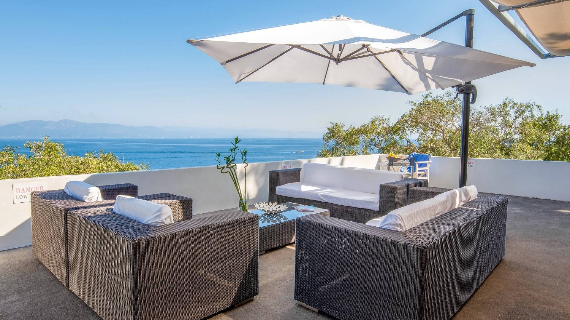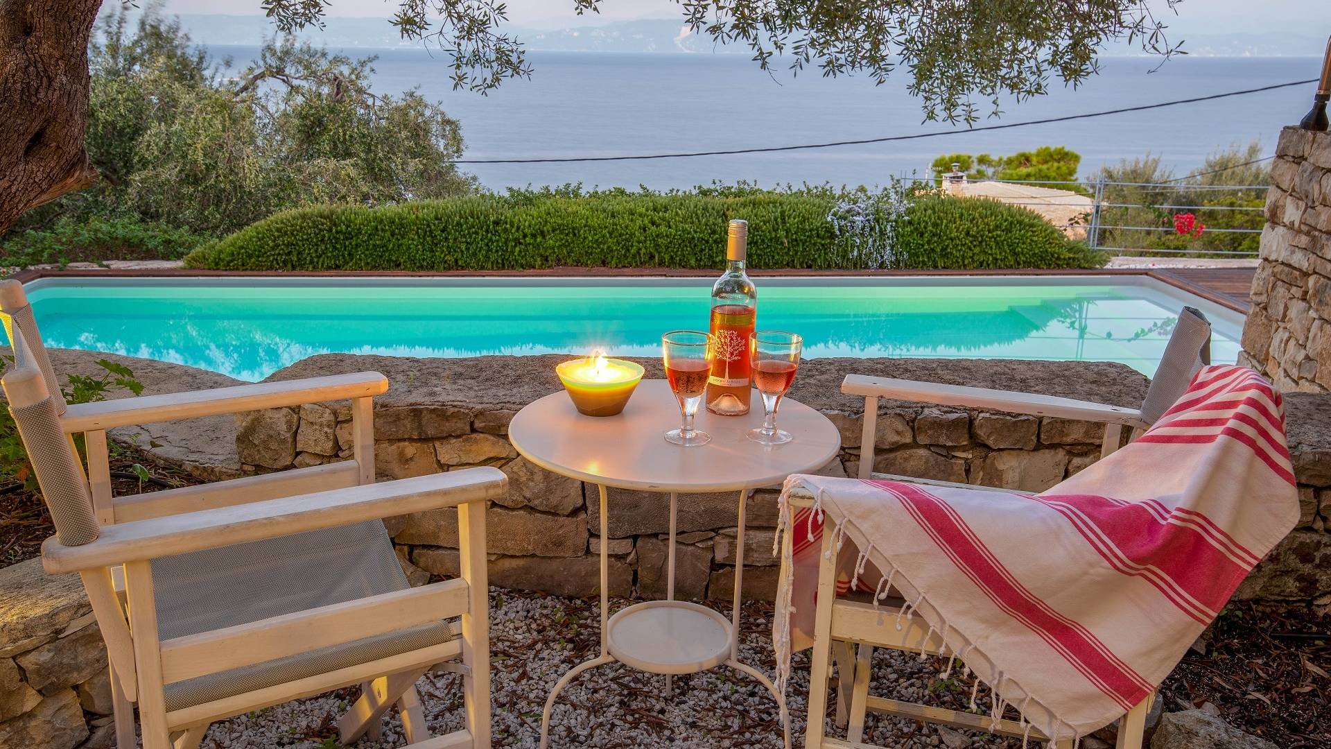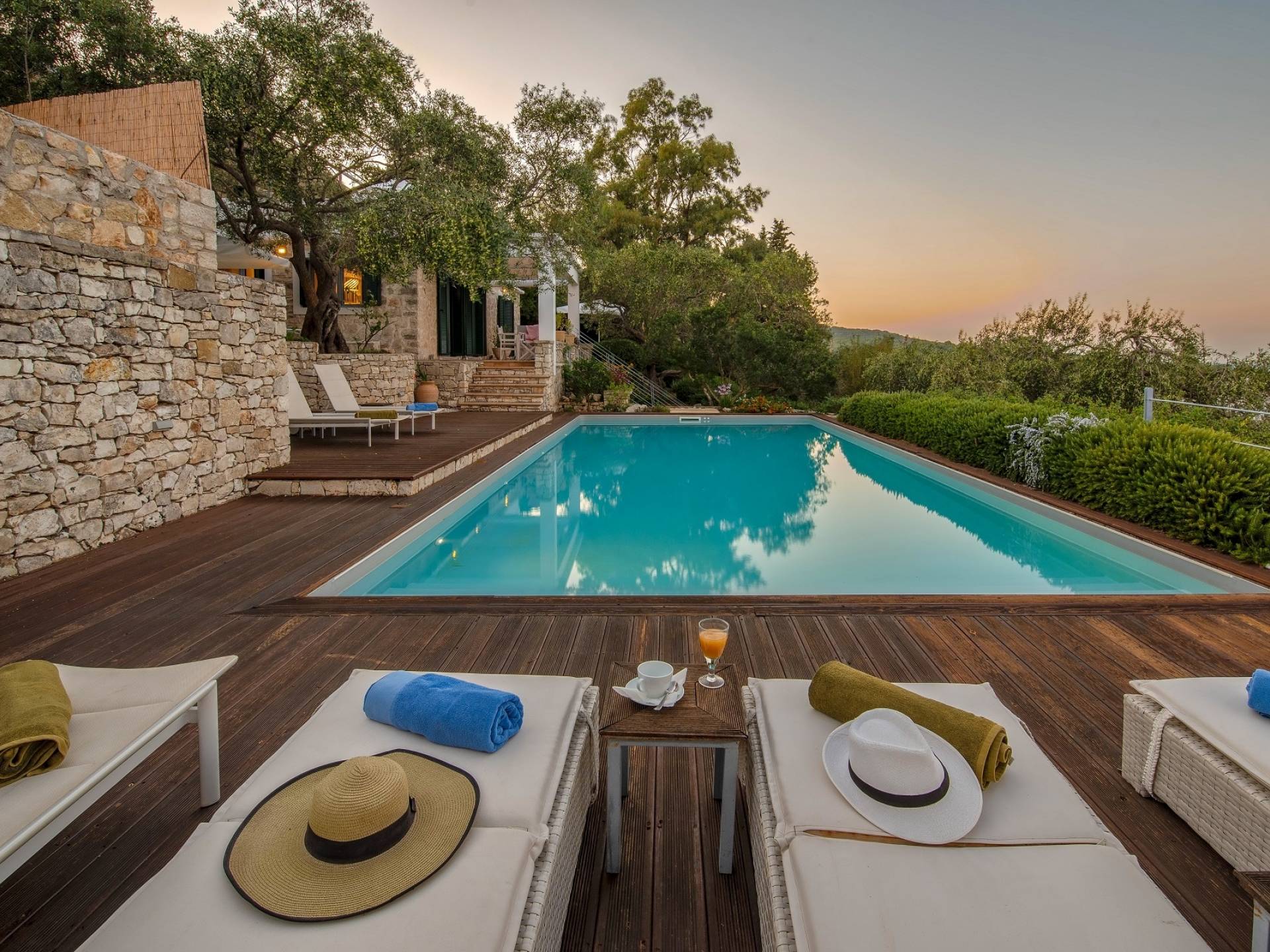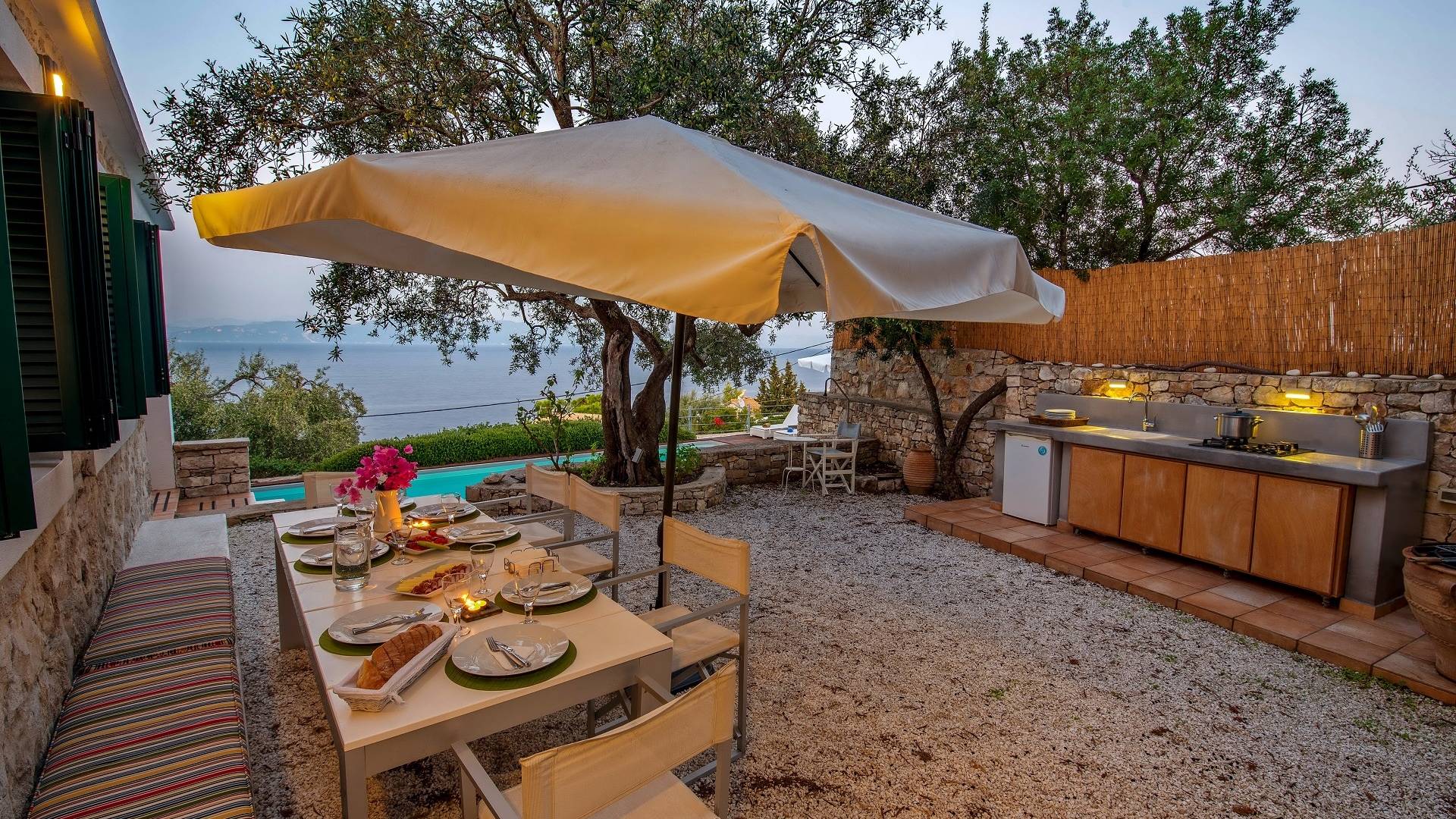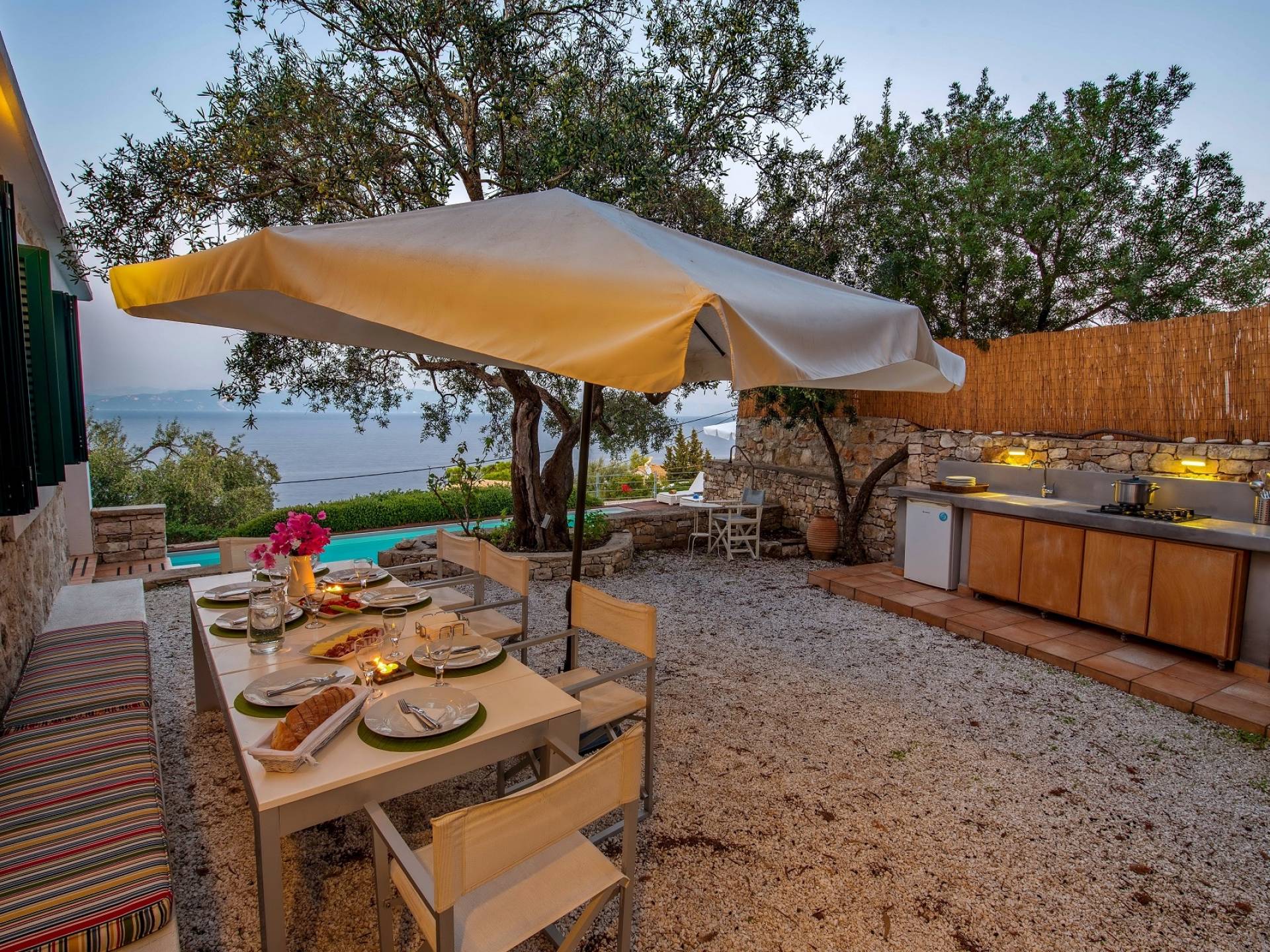Villa Olivia cuenta con amplios jardines con árboles y cultiva productos orgánicos que los huéspedes pueden usar para ensaladas y cocinar. Una gran piscina privada con una terraza de madera domina en el exterior de la planta baja. Además, las grandes terrazas con tumbonas y áreas de descanso se encuentran en las grandes terrazas en ambos pisos y cuentan con una fantástica vista al mar. Las terrazas están sombreadas con una pérgola en la planta baja y toldos en las terrazas de los pisos superior e inferior
