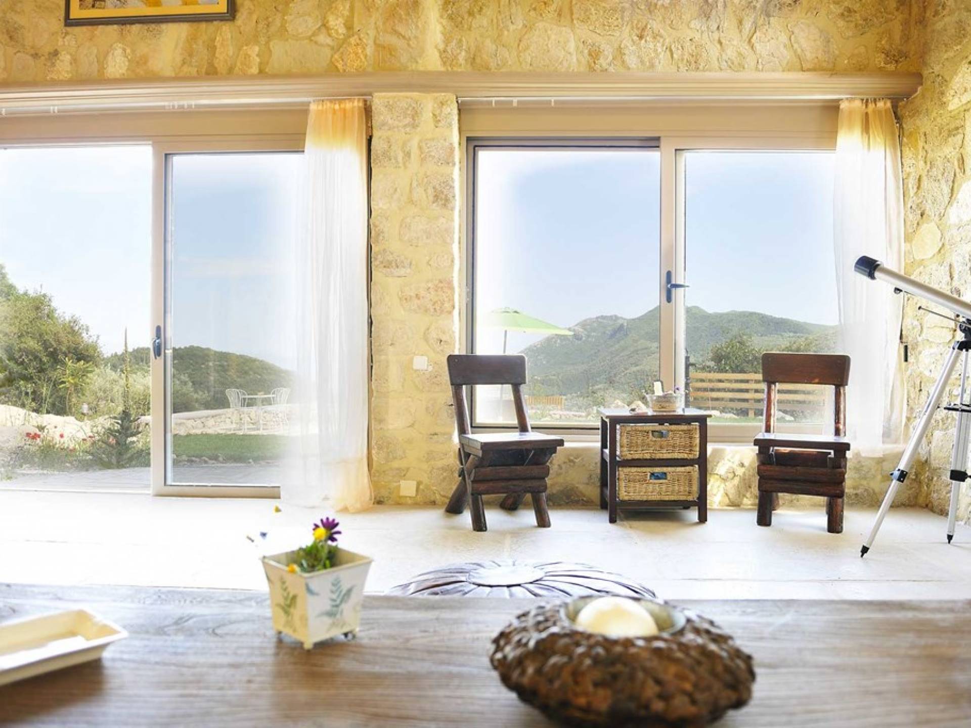Villa Nefeli (115m2) ofrece todas las comodidades para que los visitantes se sientan como en casa. Villa Nefeli es independiente de las otras villas permitiendo momentos de calma, tranquilidad y privacidad. Está ubicado en medio del bosque con vista a los Pelagos jónicos azules. La villa de lujo puede albergar hasta 4 visitantes con un ático de planta abierta y un dormitorio. Es un destino ideal para los naturalistas, construido como un "Invernadero" adaptándose al paisaje.