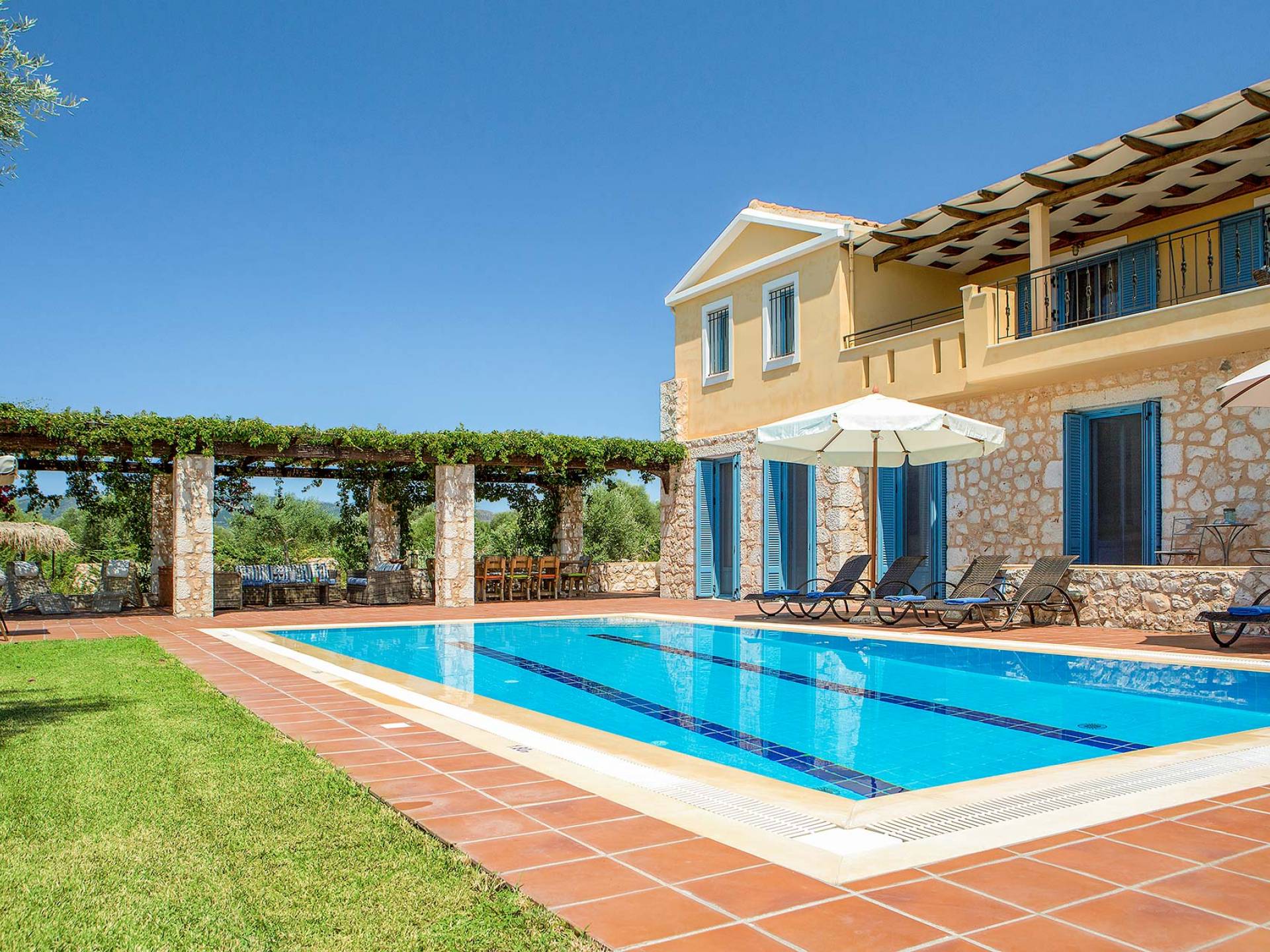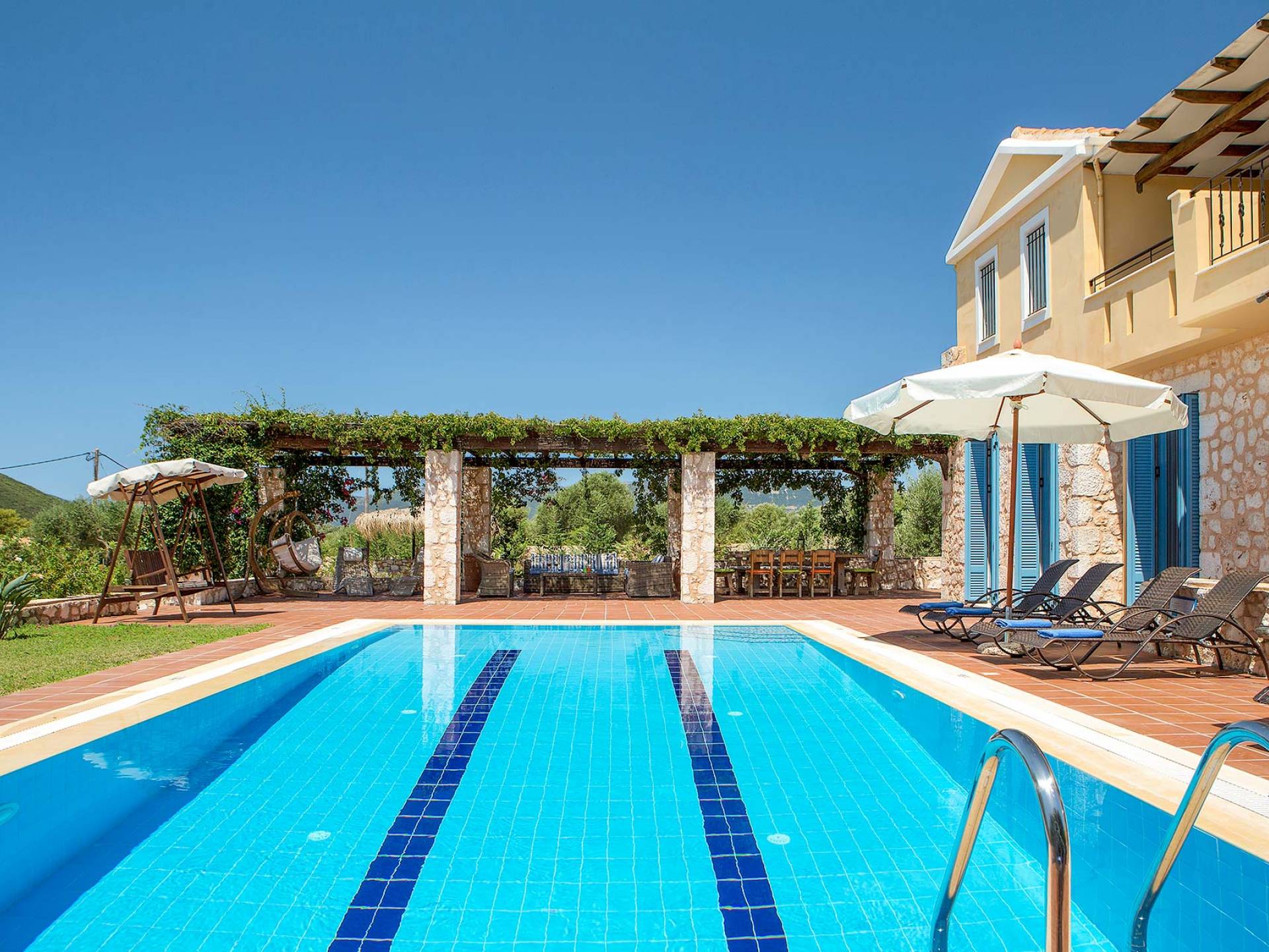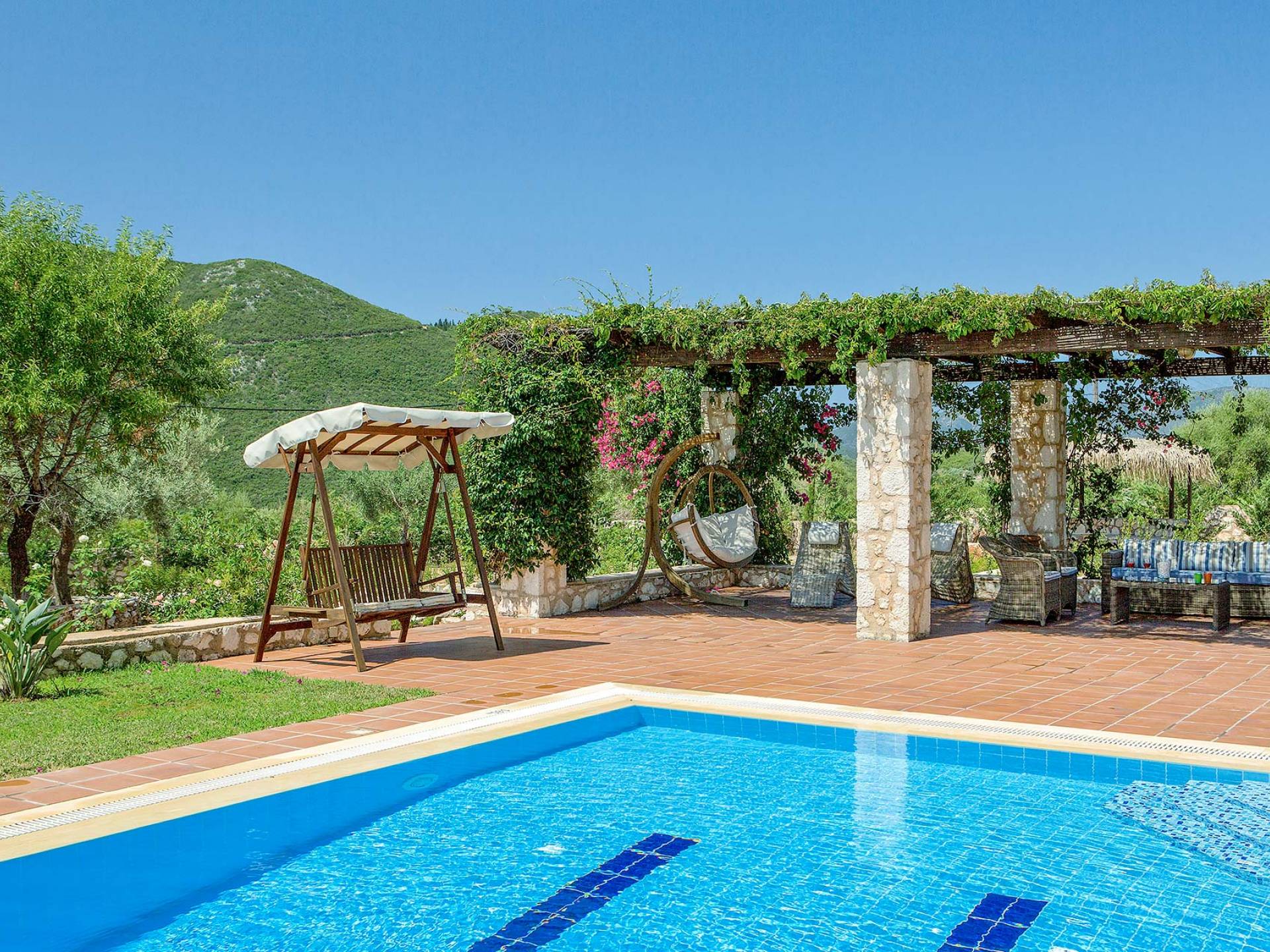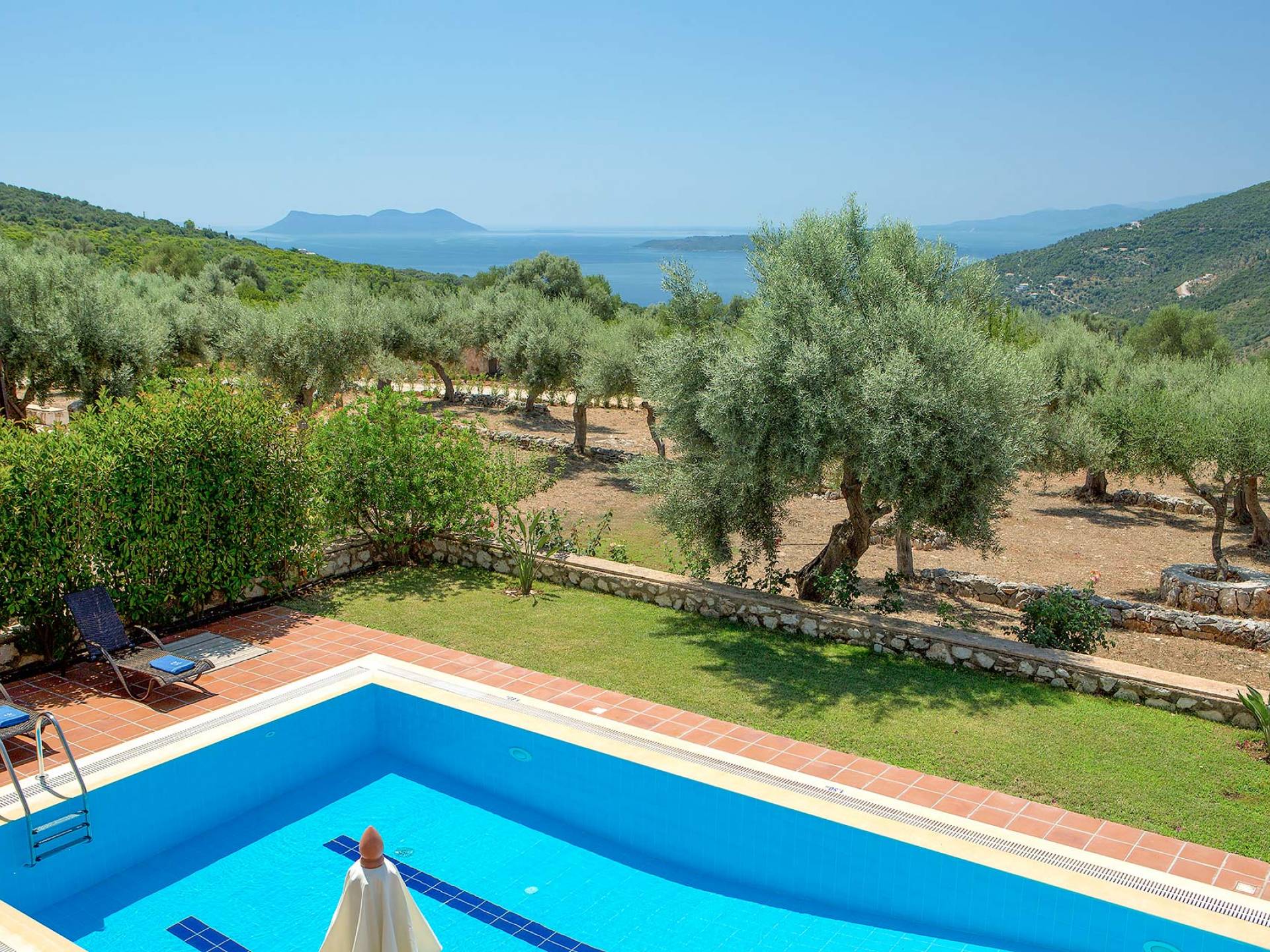 Villa Sappho Lefkada es una villa de lujo en alquiler con 3 dormitorios y piscina privada. En un exuberante 2000 metros cuadrados. finca con olivos, almendros y muchos árboles frutales, con una magnífica vista panorámica del Mar Jónico, se encuentran los 130 metros cuadrados. Villa Sappho Lefkada. Este espacioso alquiler de vacaciones es ideal para familias o grupos de amigos y ofrece una magnífica piscina privada y todas las comodidades que necesita para que su estadía sea memorable.