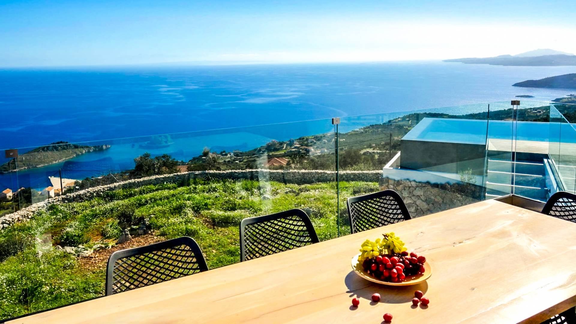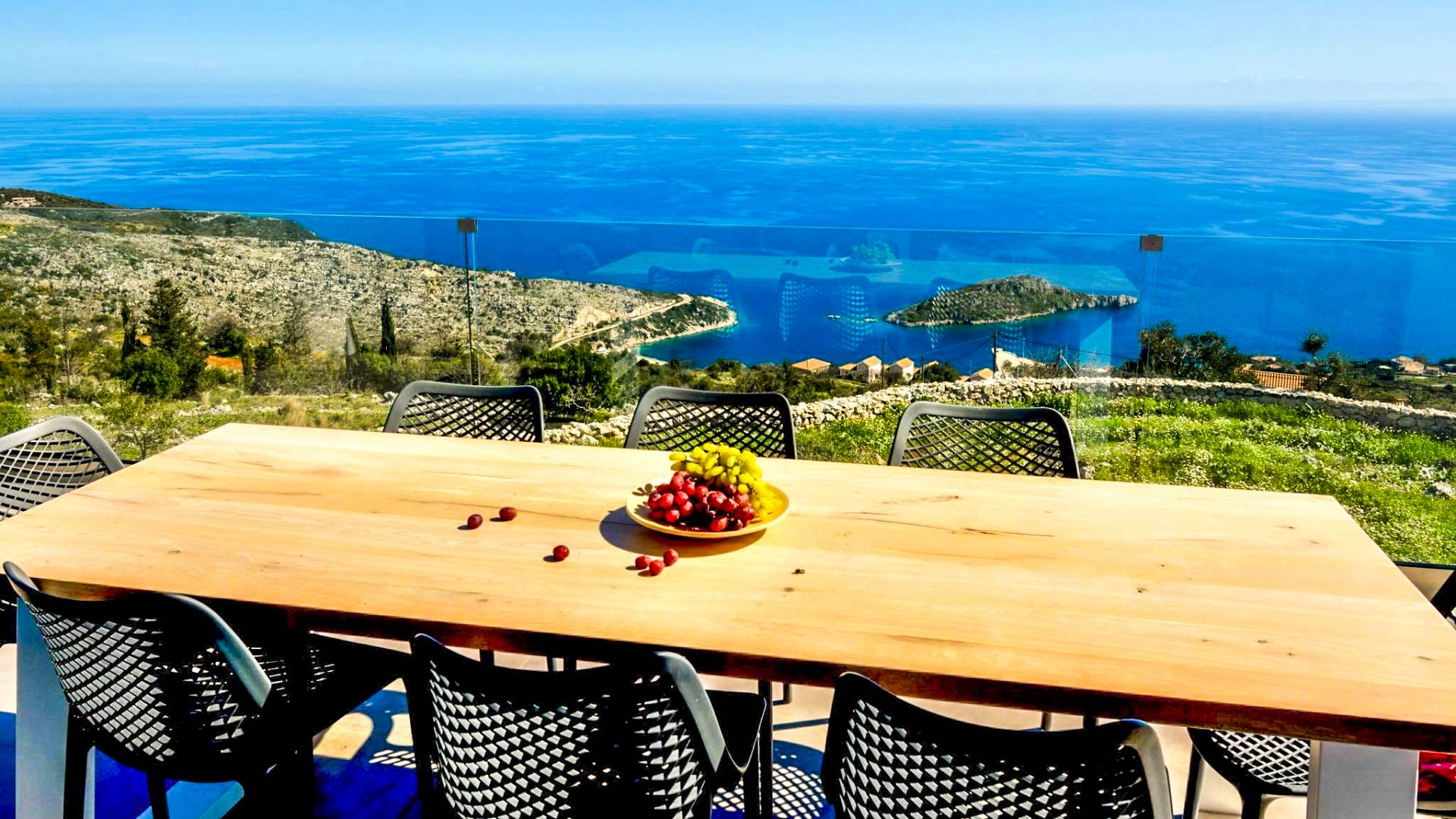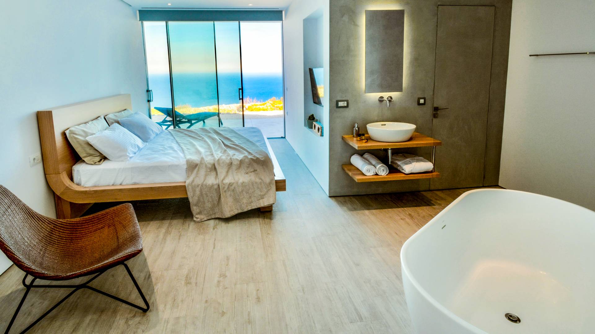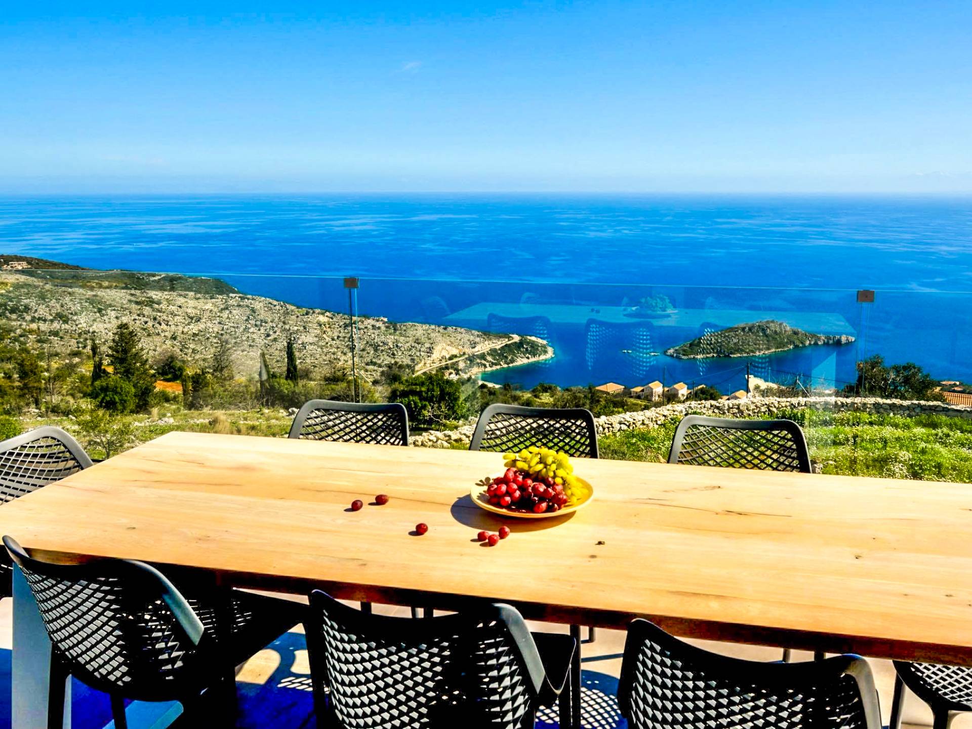 La Luminous Villa Zante está diseñada para ofrecerle una experiencia inolvidable al combinar un diseño minimalista con el campo rocoso y las impresionantes vistas. Tienes que permanecer en él, vivir en él y respirarlo, para apreciarlo plenamente. Contempla el horizonte sublime y saborea la deliciosa brisa en la amplia terraza de la villa. Juegue en la espectacular piscina y relájese en elegantes tumbonas al sol. Cocine un delicioso almuerzo de mariscos y verduras locales y disfrútelo al aire libre. Beba cócteles mientras se maravilla con las luces nocturnas directamente desde la sala de estar o relájese en un dormitorio iluminado por las estrellas.