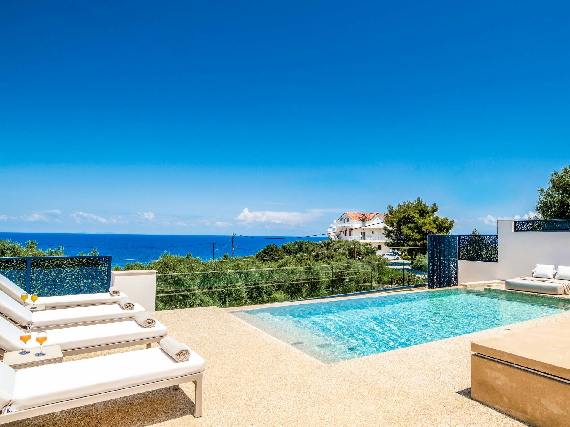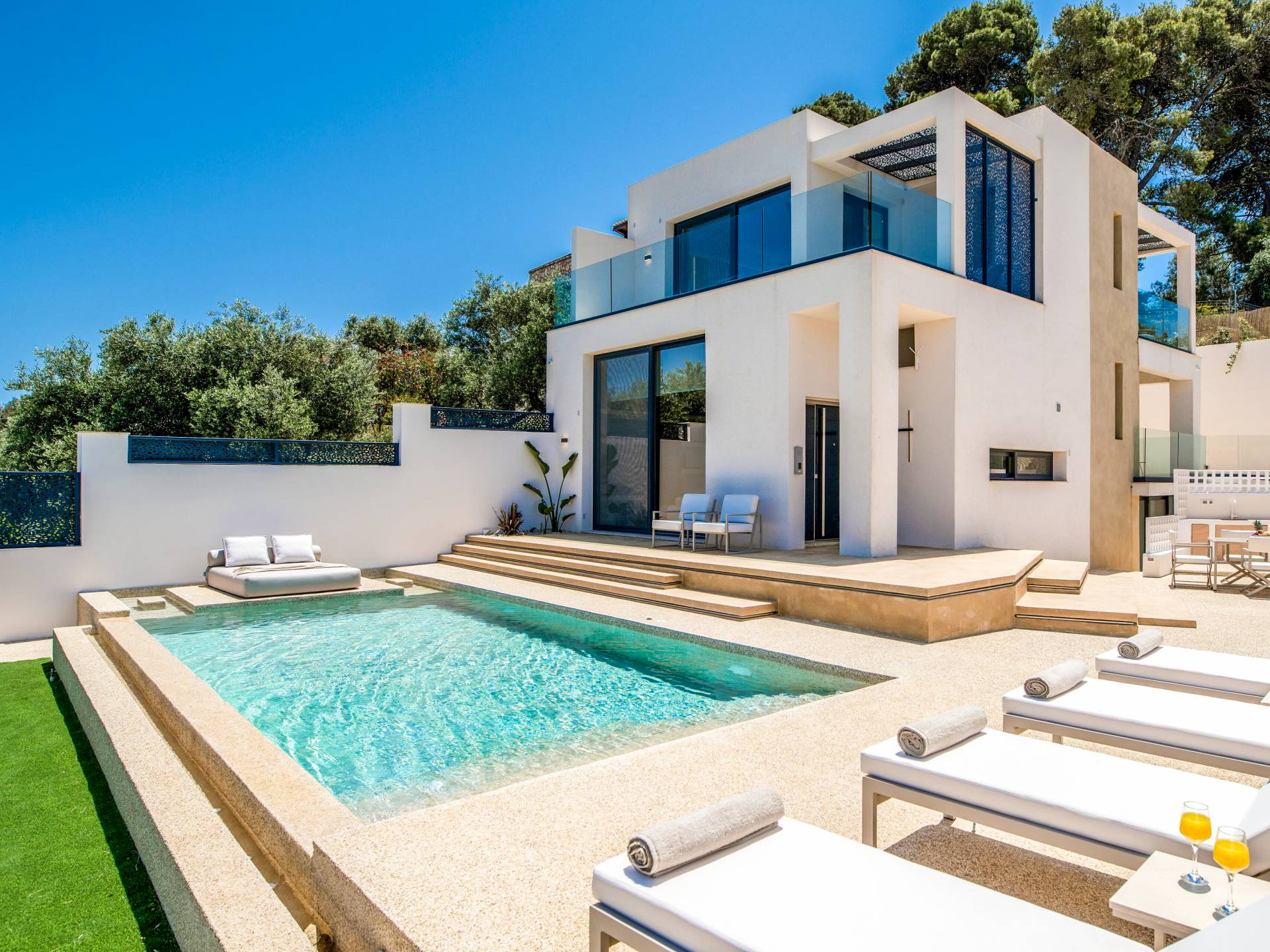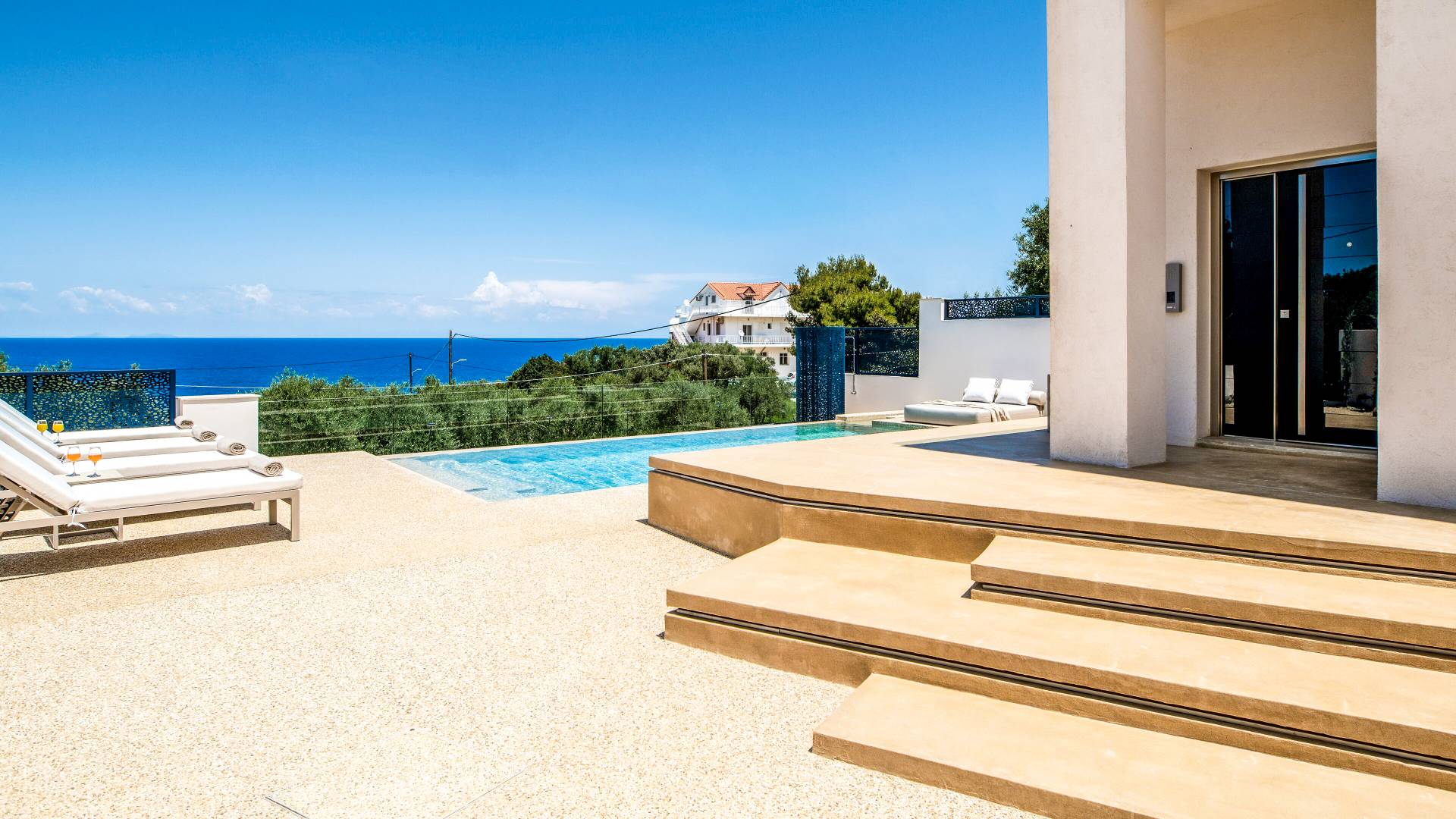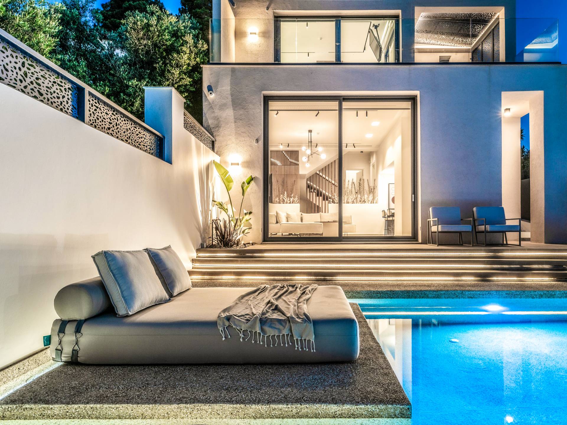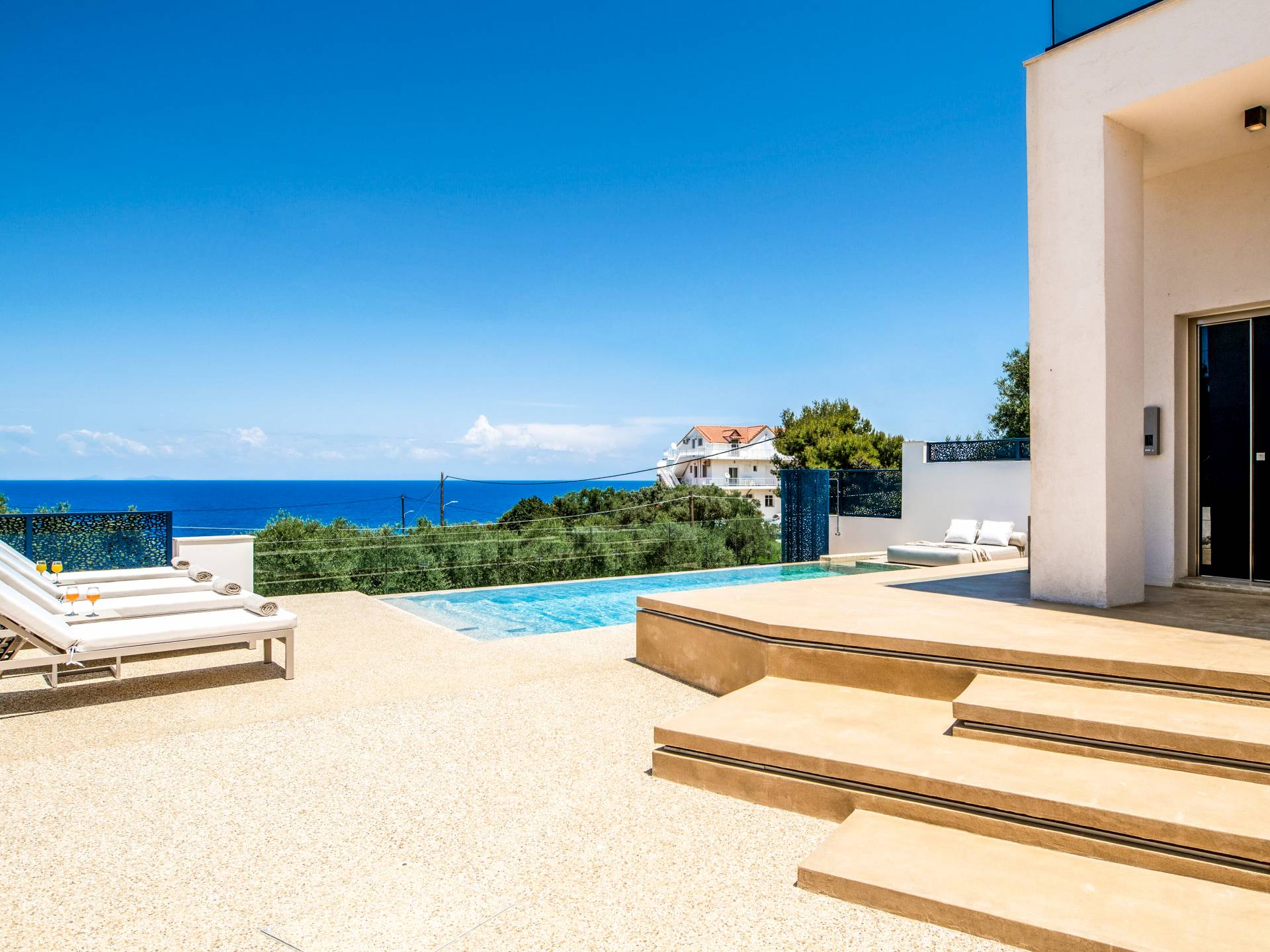 Bask in the Mediterranean sun from your private swimming pool. Designed for entertainment and relaxation, the outdoor area features:
