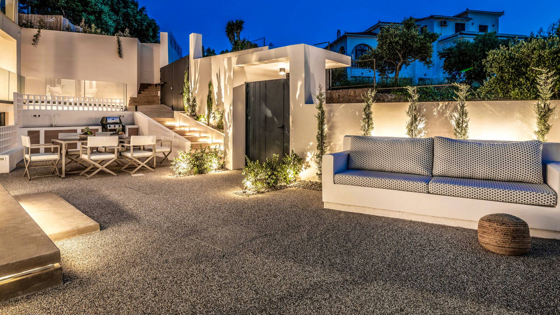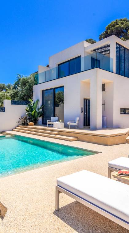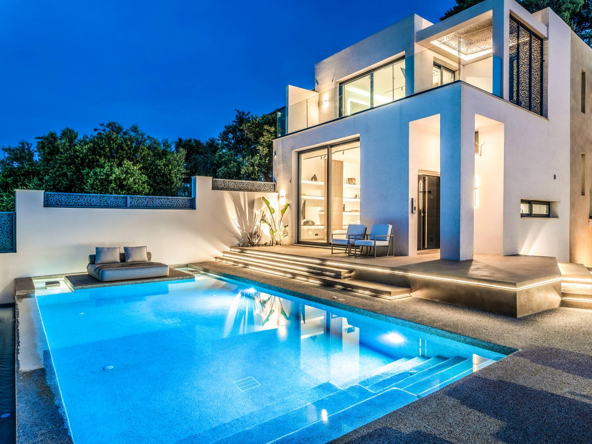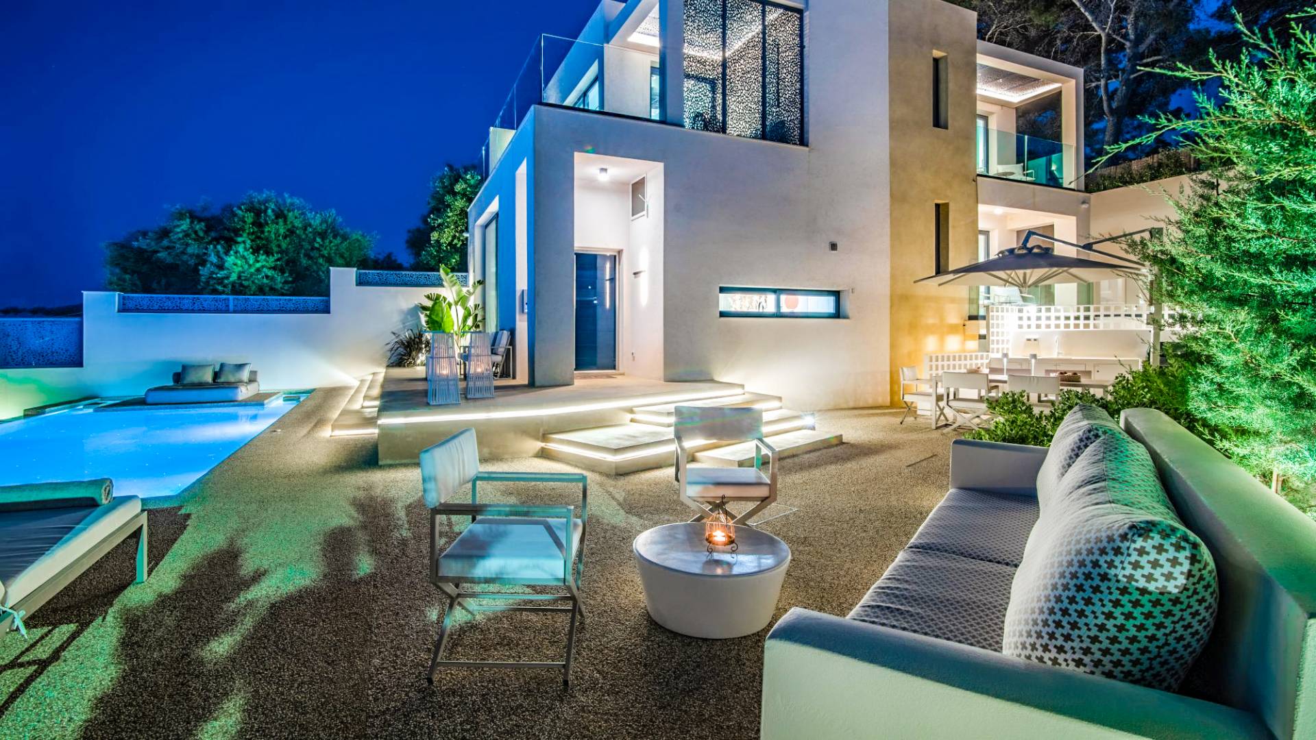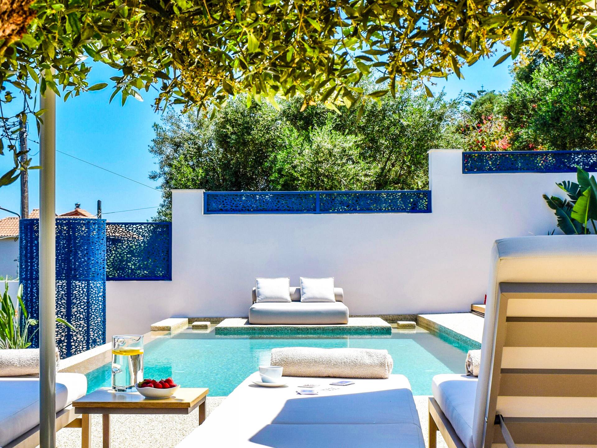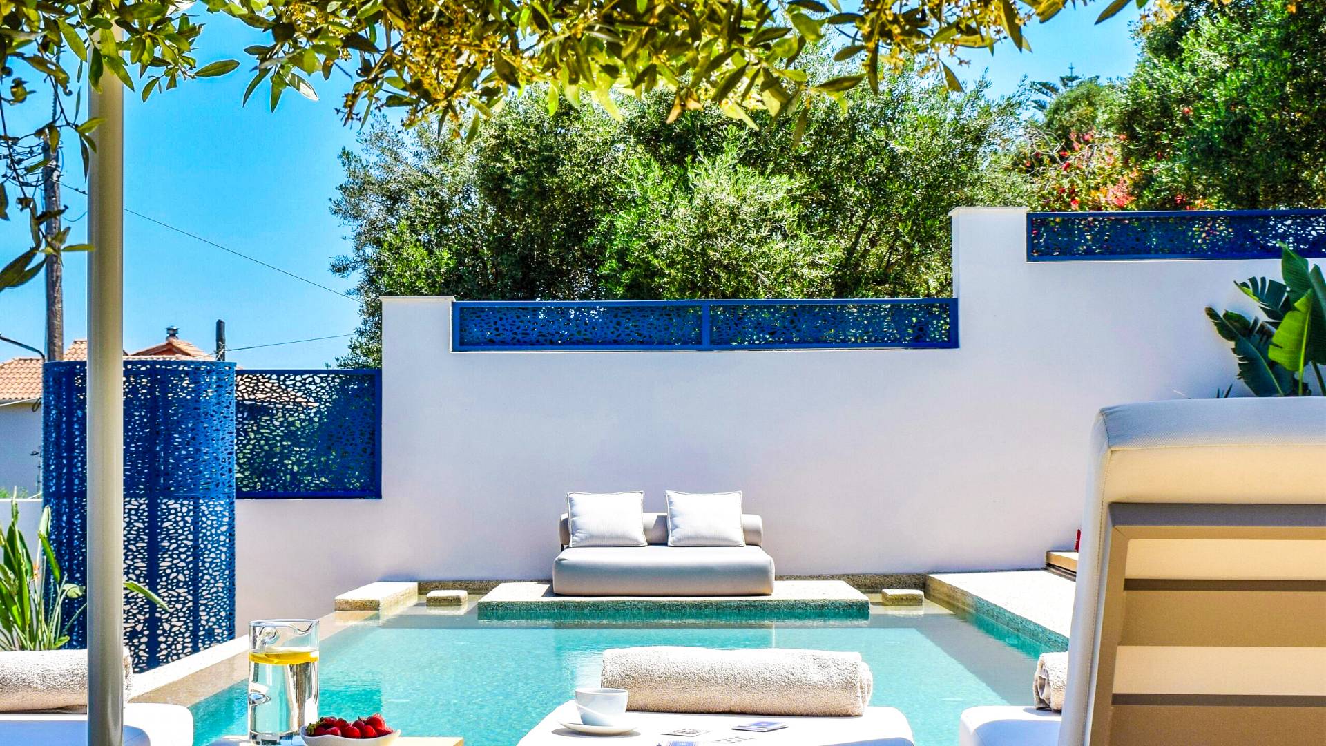 Bask in the Mediterranean sun from your private swimming pool. Designed for entertainment and relaxation, the outdoor area features: