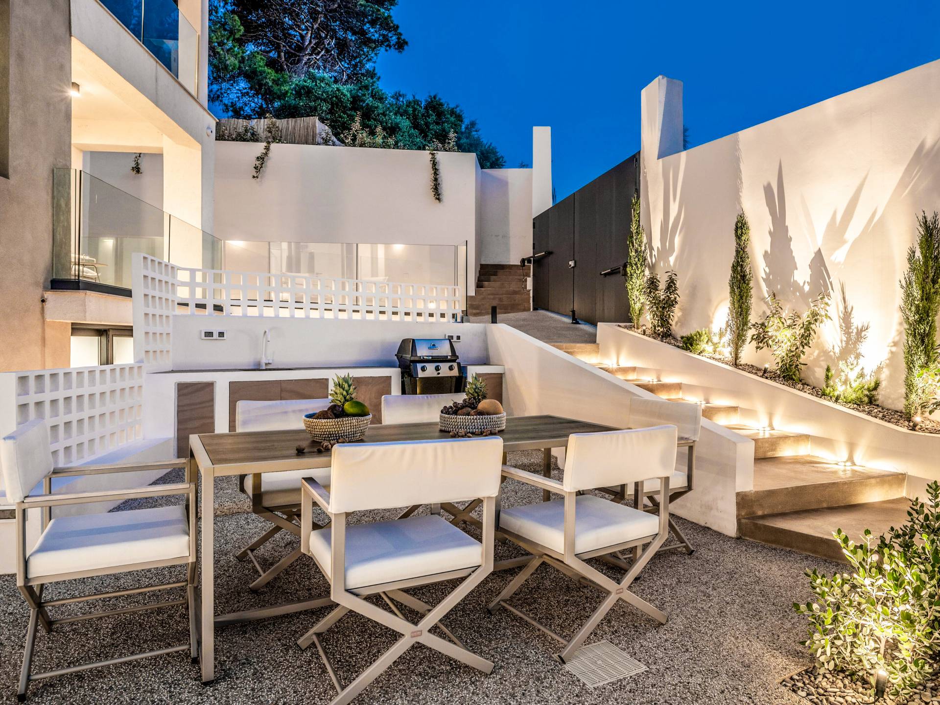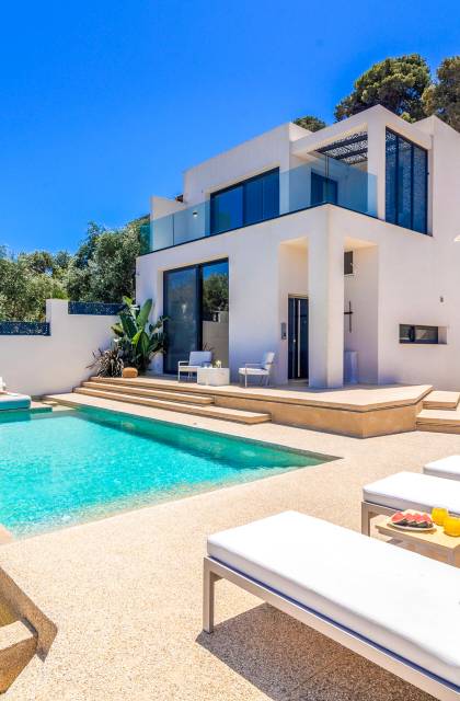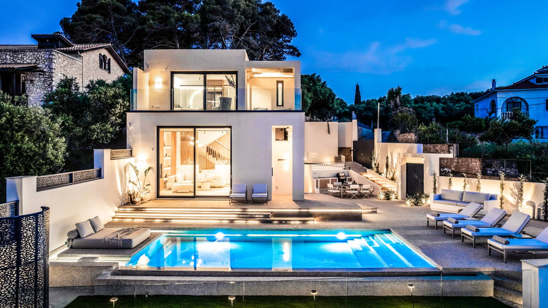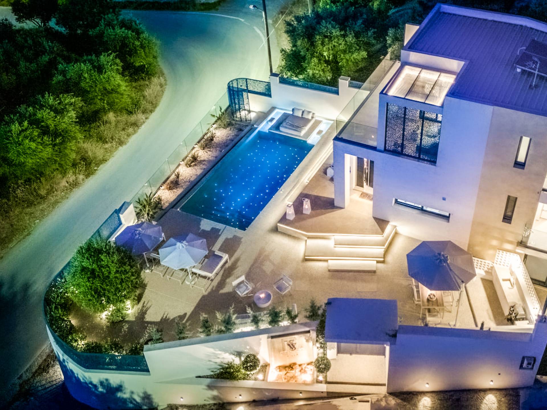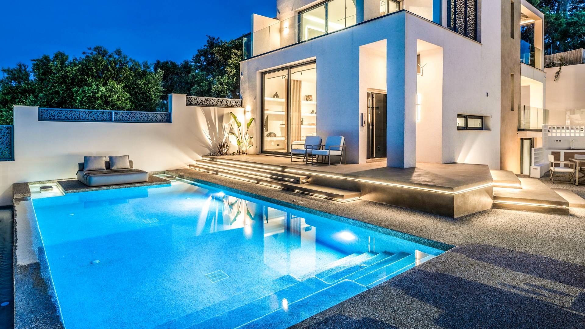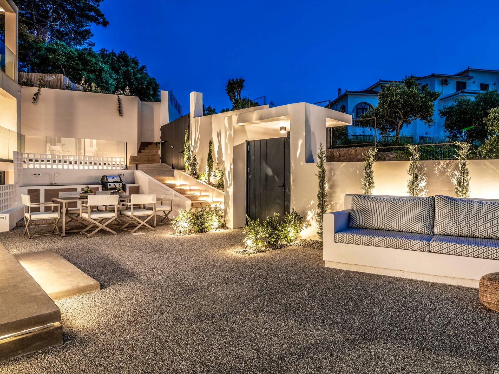 Bask in the Mediterranean sun from your private swimming pool. Designed for entertainment and relaxation, the outdoor area features: