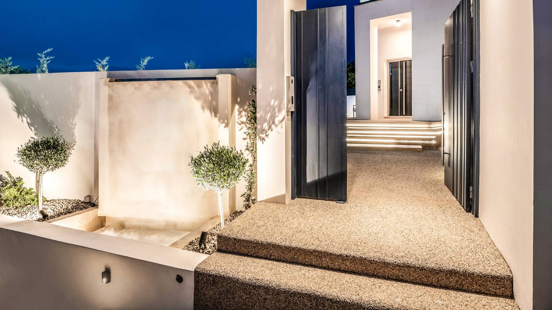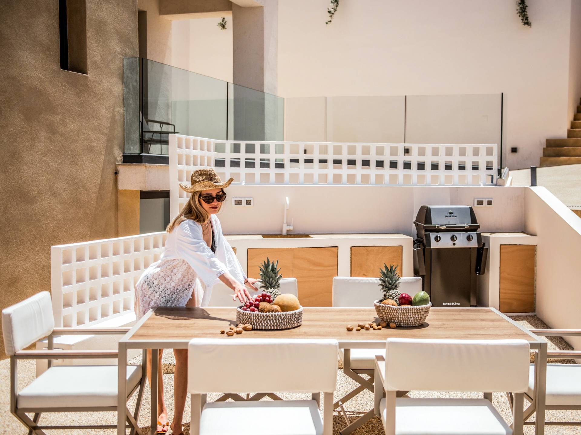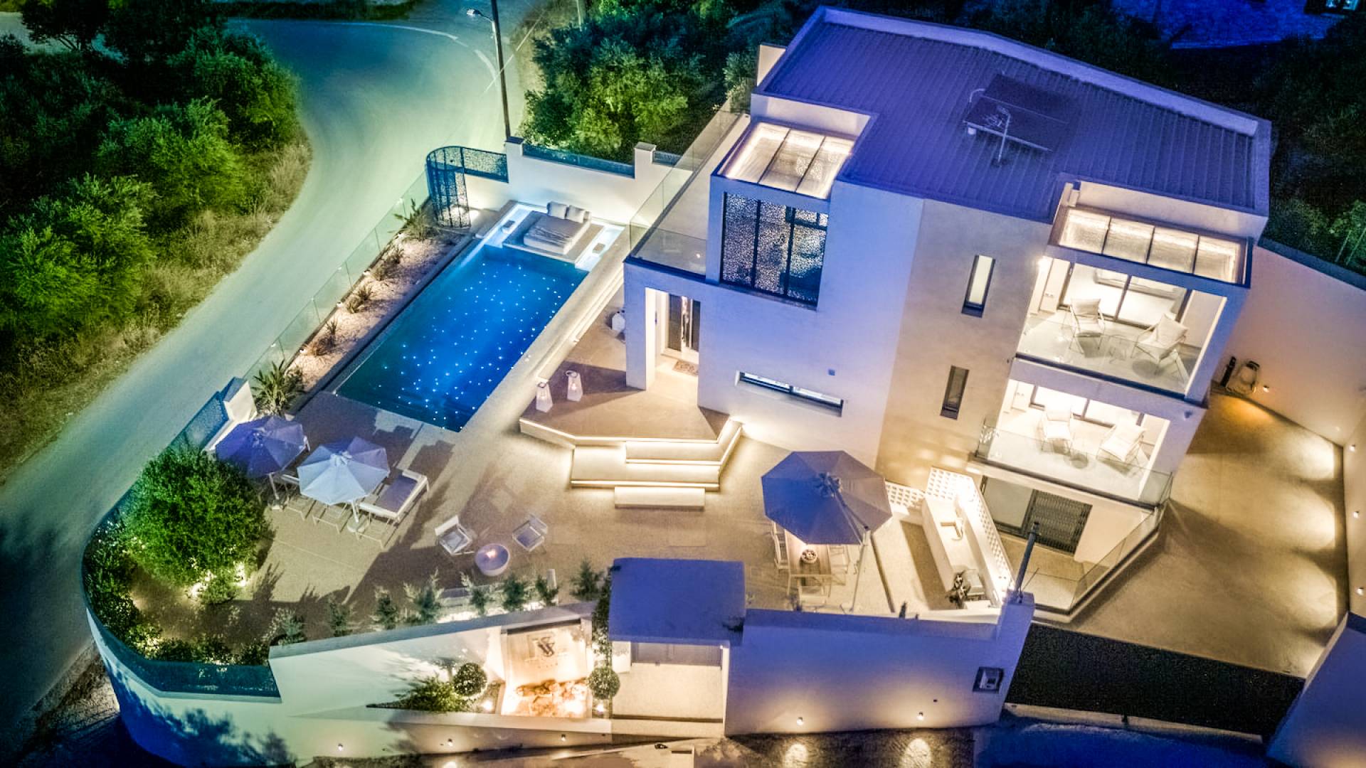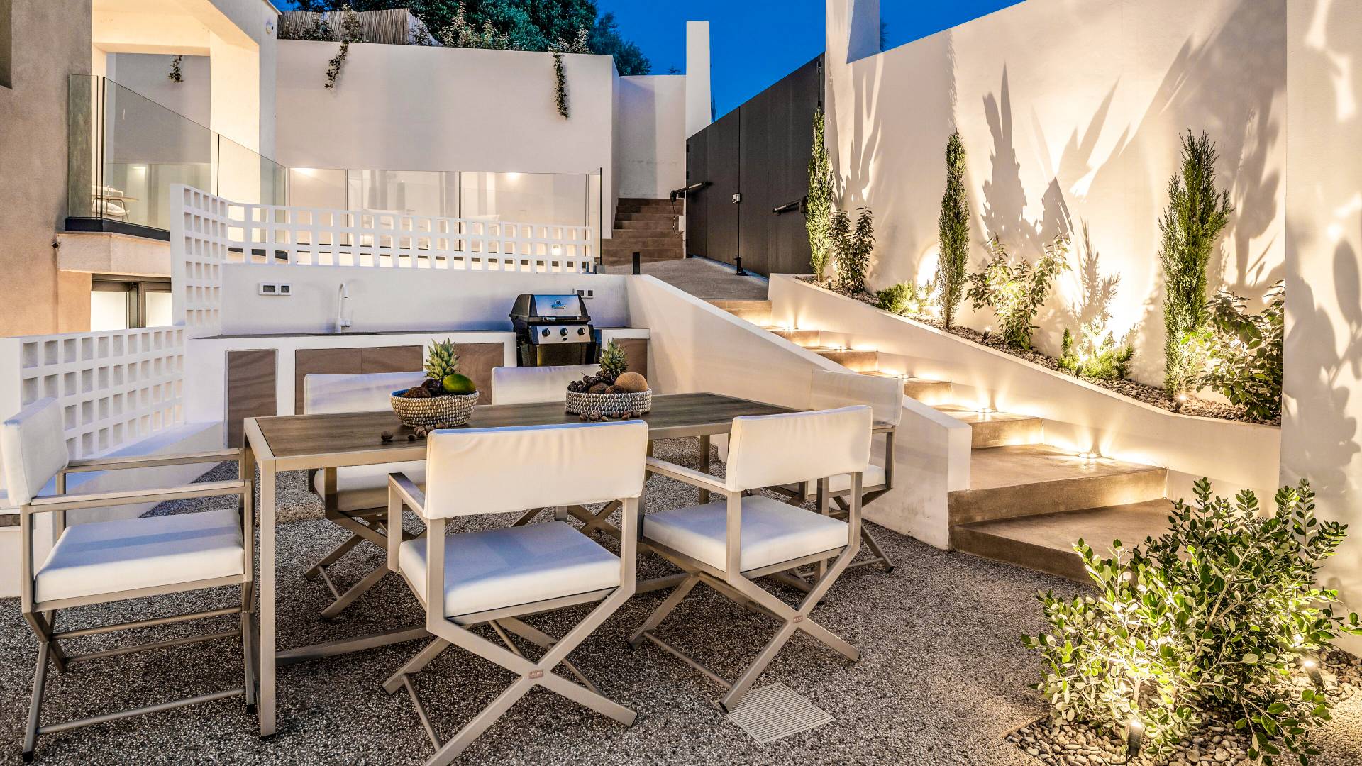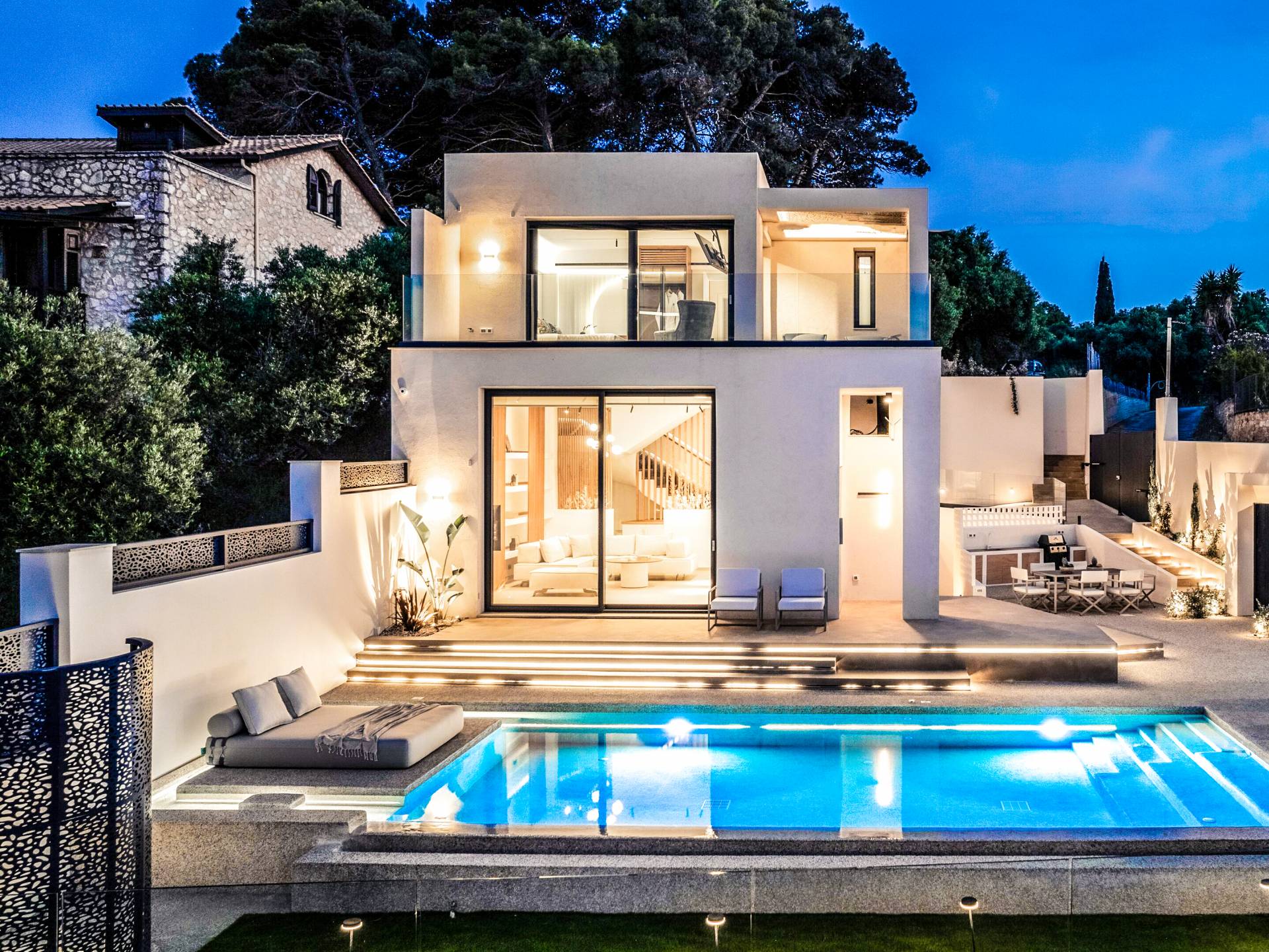 Bask in the Mediterranean sun from your private swimming pool. Designed for entertainment and relaxation, the outdoor area features: