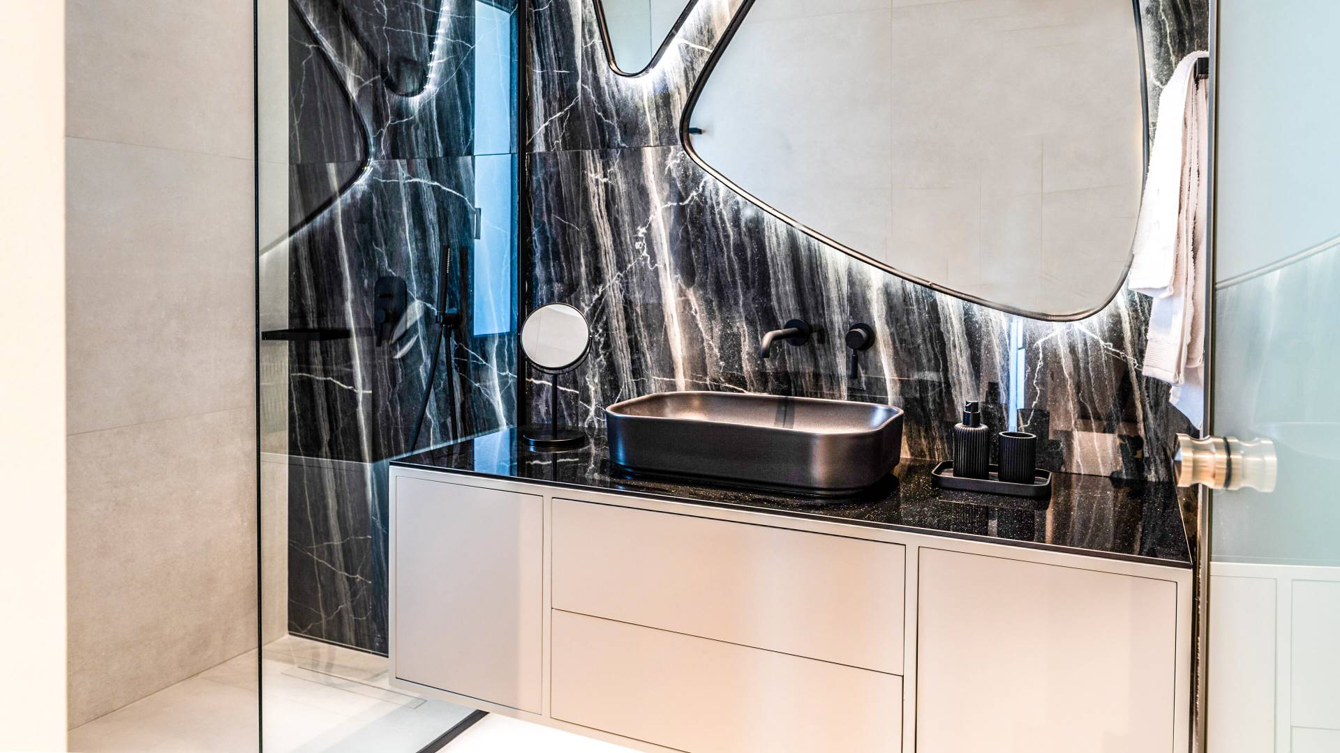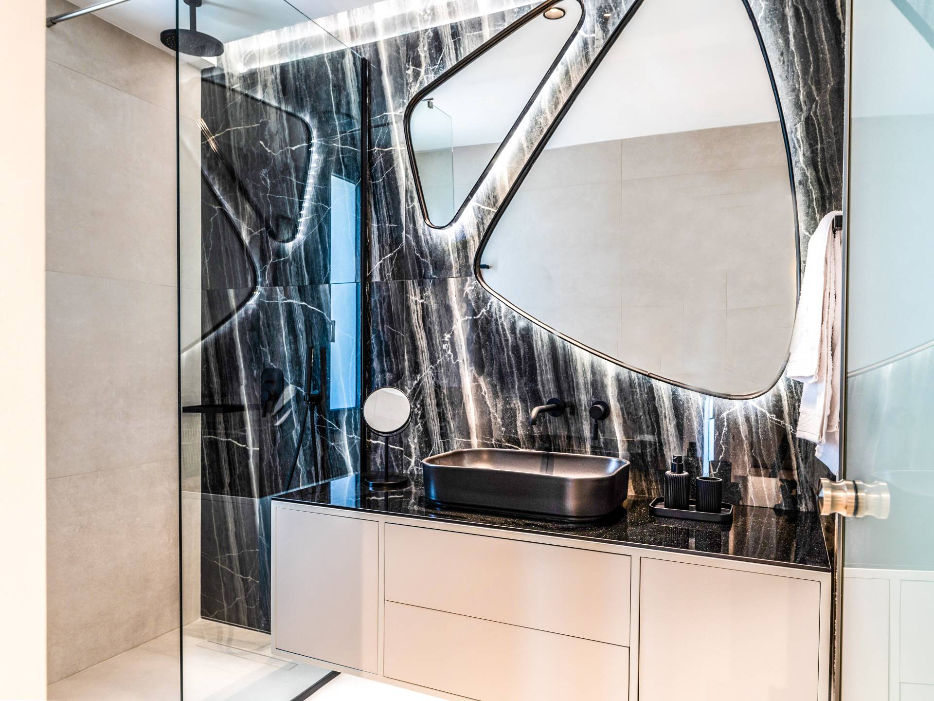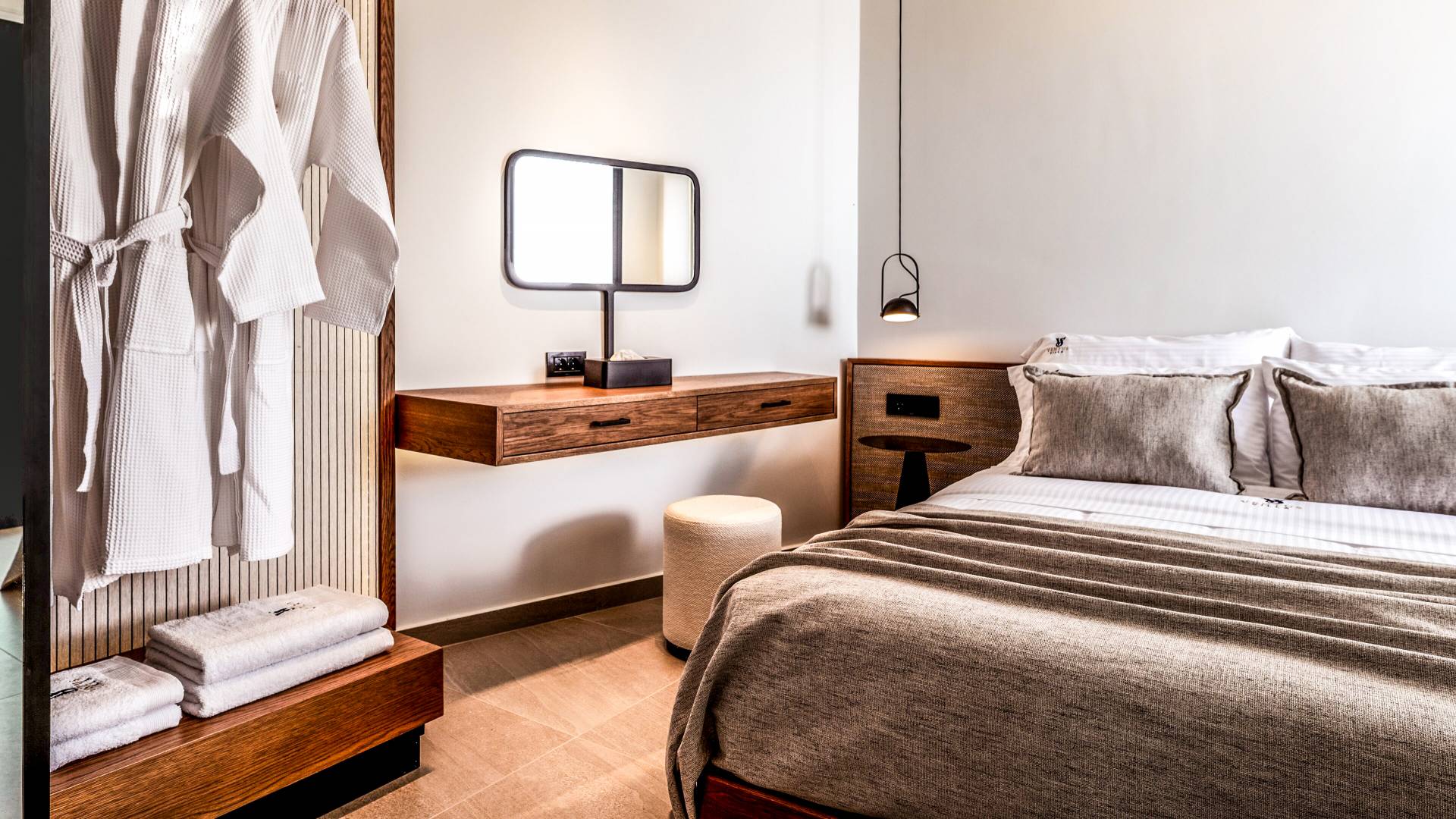 - Bedroom 1 with queen bed, ensuite bathroom and terrace access
