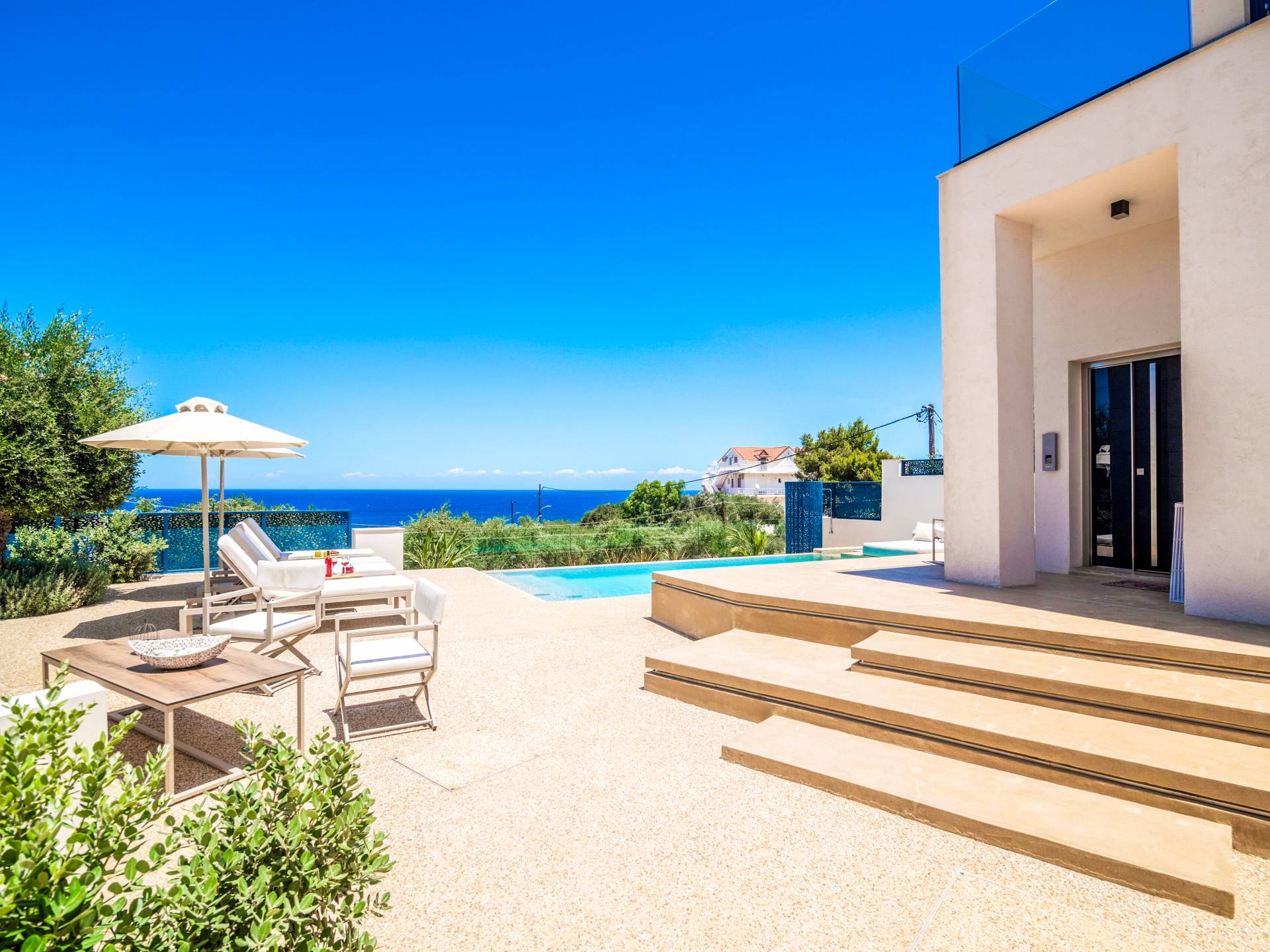 White Pearl Villa Zakynthos - A small haven set in a privileged location, this villa blends elegance, comfort, and privacy. From its modern interiors to its inviting outdoor spaces, every detail is designed for a relaxing stay. Enjoy panoramic views of the Ionian Sea, just 5 minutes from Zakynthos Town and 750 m from the beach - a peaceful escape where your dream holiday comes to life.
