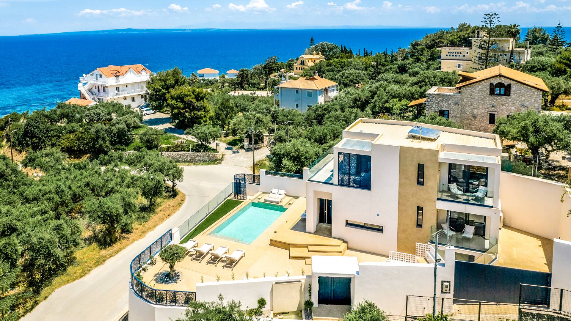 Located in the prestigious Akrotiri area of Zakynthos, the villa enjoys a peaceful hillside setting with beautiful sea views, just minutes from the island’s capital and walking distance from nearest beach. The neighbourhood is known for its quiet atmosphere, natural beauty, and easy access to everything Zakynthos has to offer.