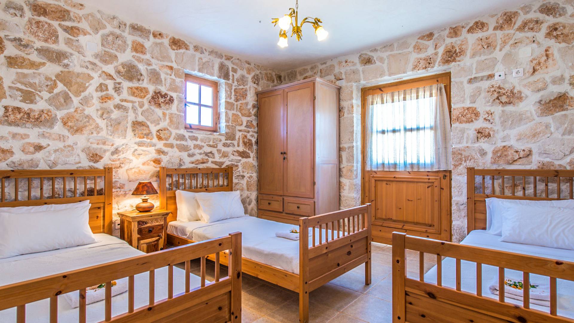 Primera planta: dormitorio doble con baño en suite. Planta baja: dormitorio doble con baño en suite. Habitación doble o cuádruple con 2 camas individuales, 1 litera y baño con ducha.
