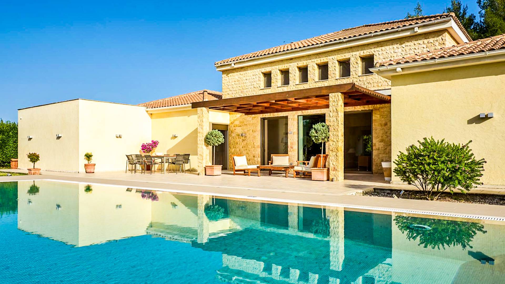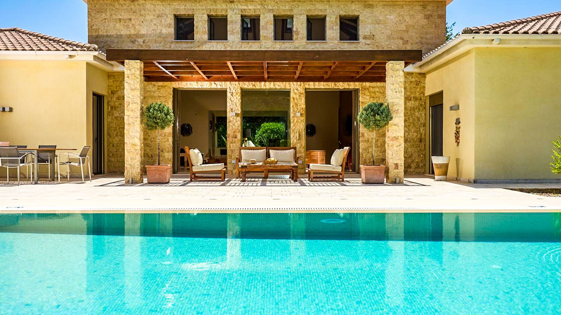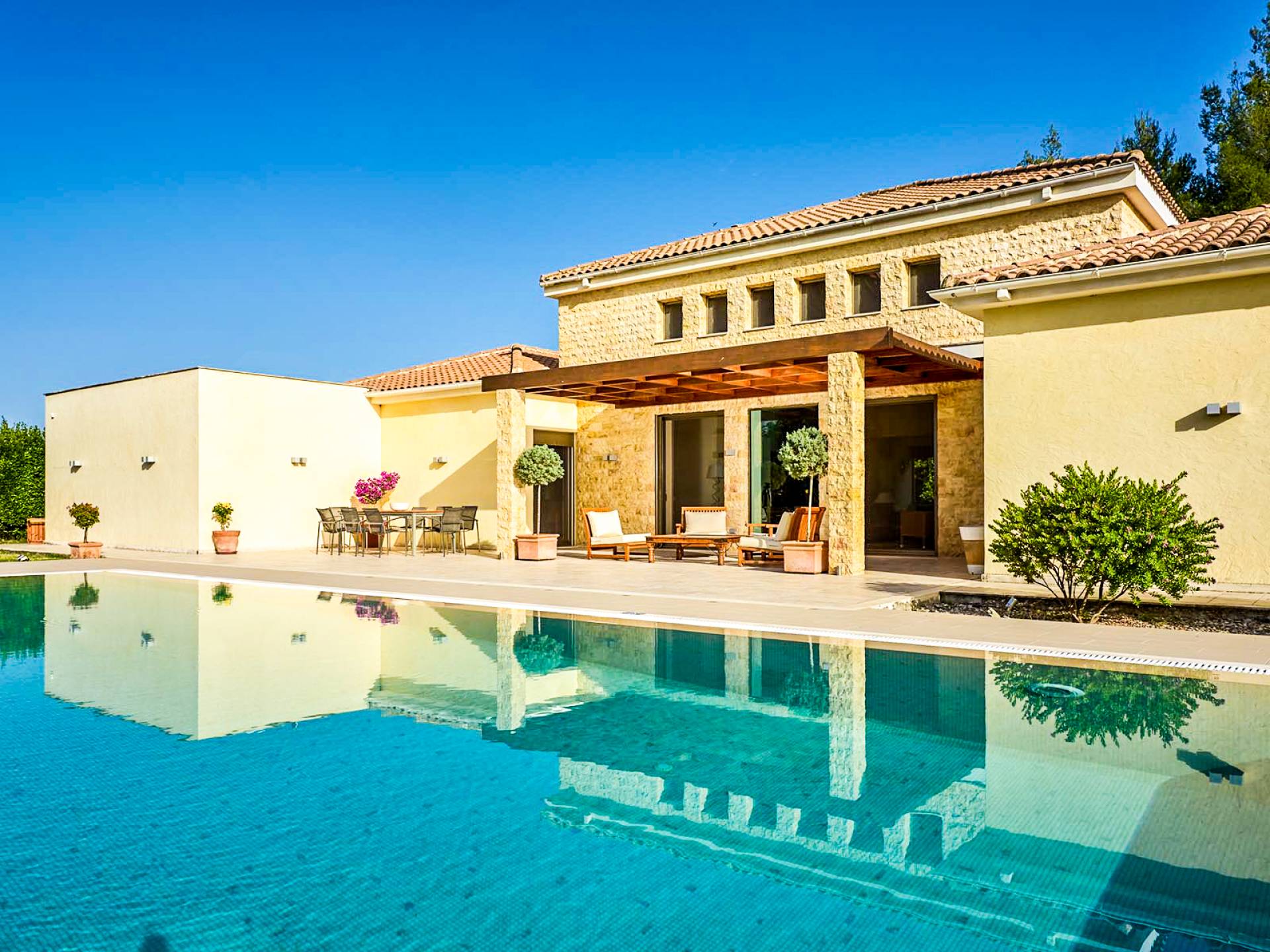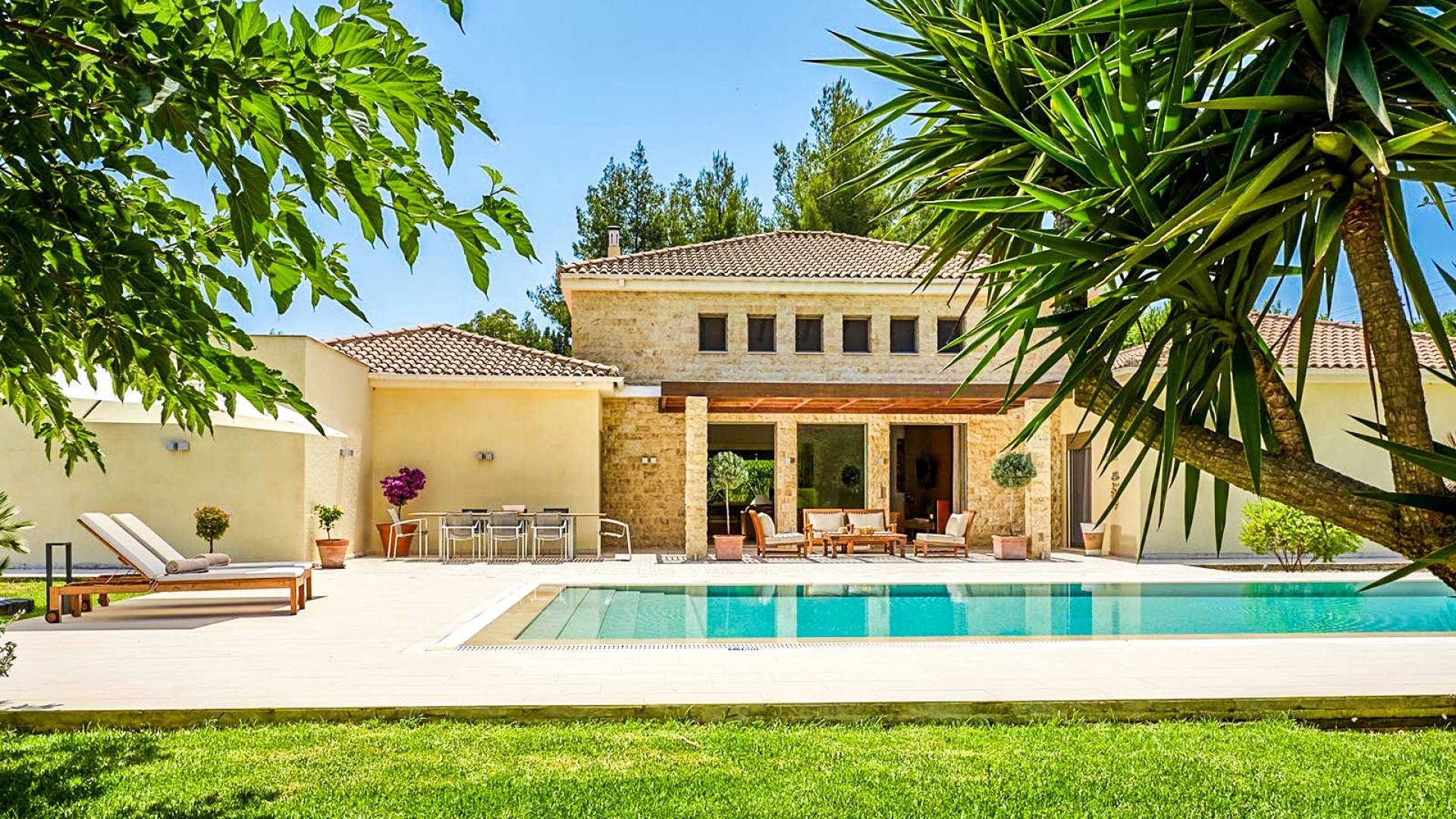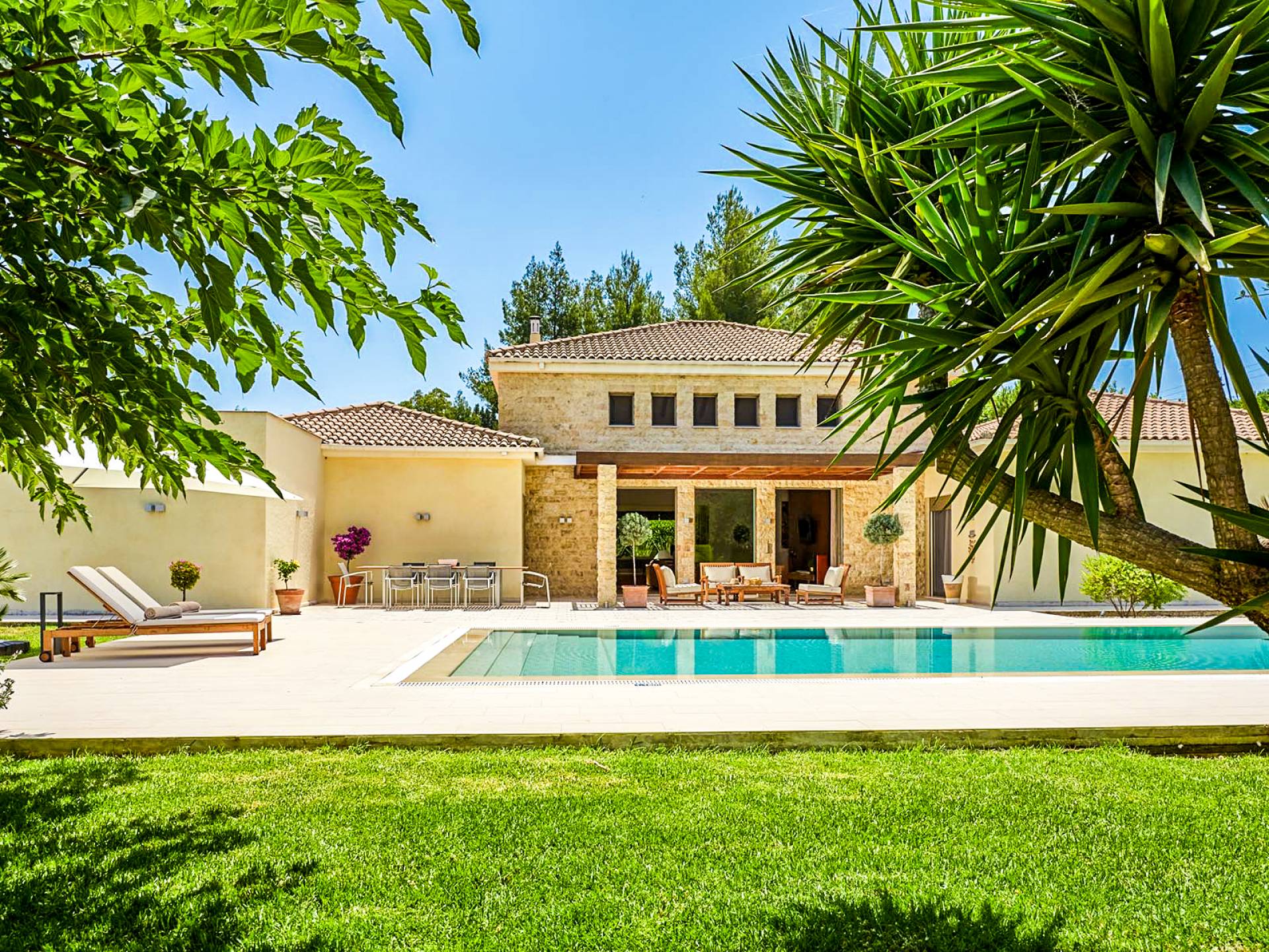 The luxurious indoor flows effortlessly to the outdoor, with every room having direct access to the stylish garden (1800m2), allowing you to make the most of the warm and pleasant climate. In the center of the garden, a spectacular swimming pool of 90m2 is there to offer you moments of cool and relaxation.