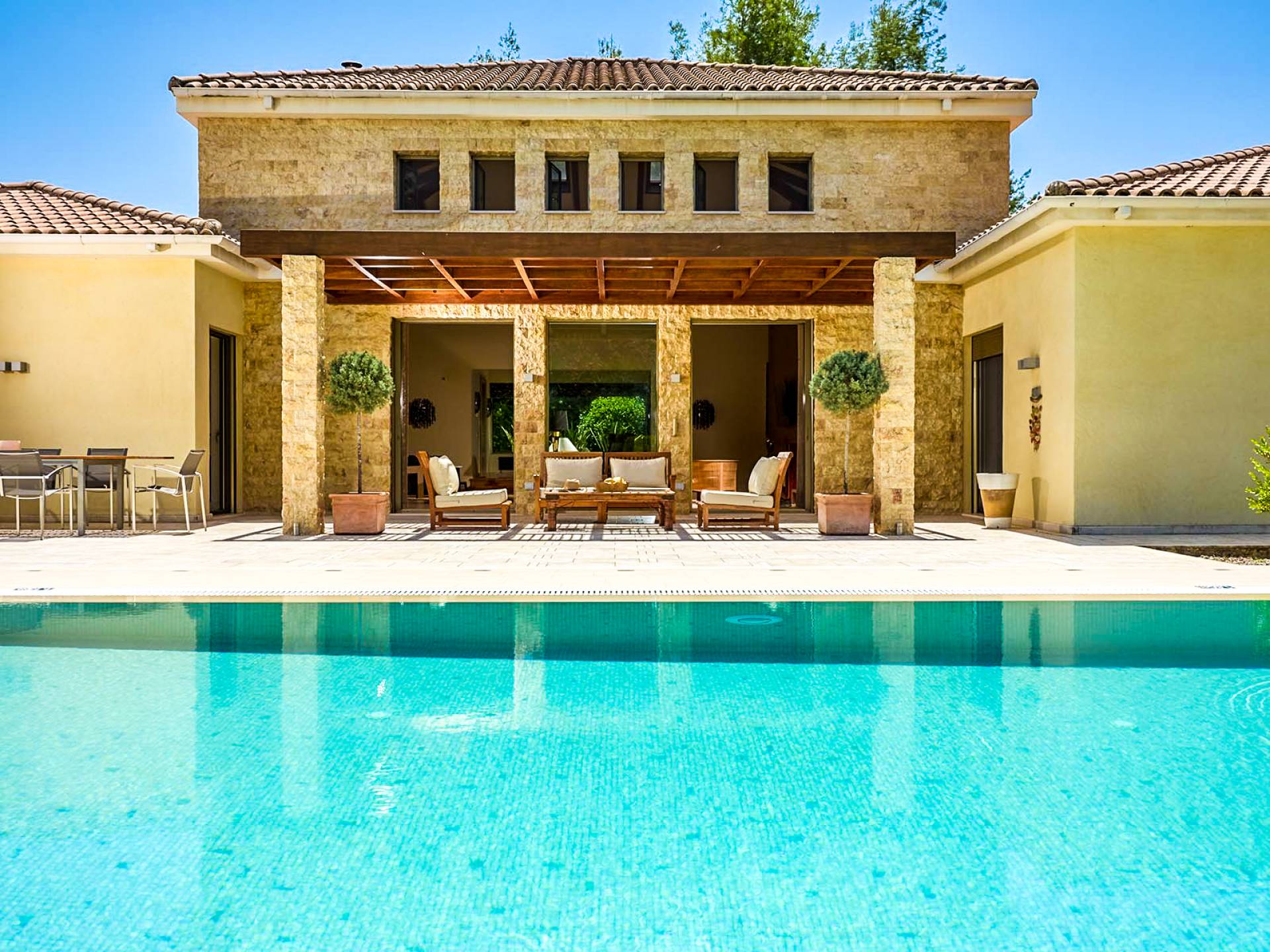 Villa Lanes Zante - With every comfort taken care of and first-class facilities, Villa Lanes Zante (370m2) makes a beautiful backdrop to a fantastic holiday. Set on a quiet spot in Laganas Bay Beach on the island’s south-facing sandy coast, Villa Lanes Zante is a contemporary private villa with elegant decoration, built with the finest materials on one level.