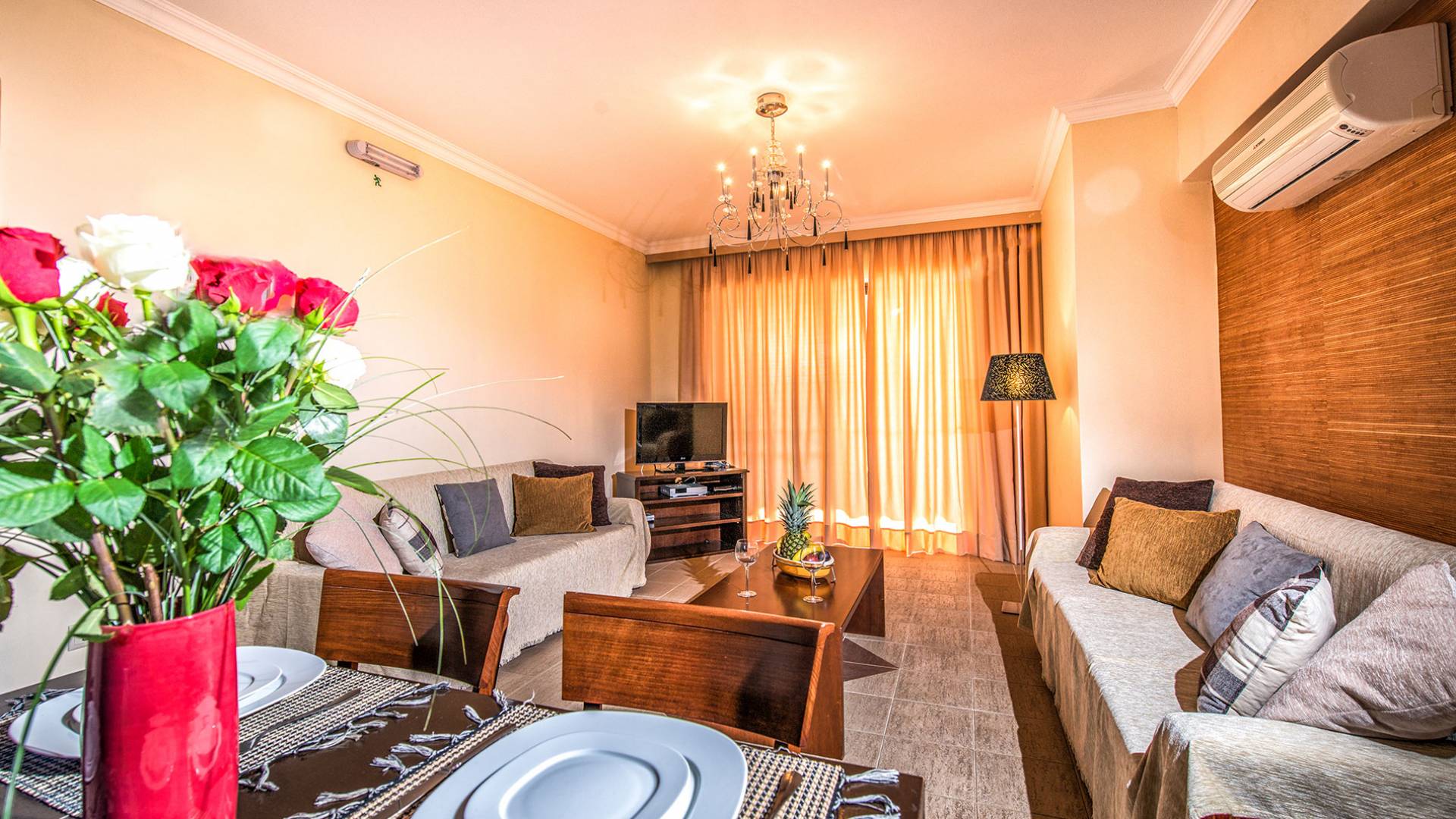Cuenta con una habitación doble y una habitación con dos camas individuales con lujosos cuartos de baño en suite con bañera, inodoro, secador de pelo y espejo de aumento; salón amueblado, decorado con buen gusto que ofrece un ambiente relajante y confortable con TV / DVD, estéreo, reproductor de CD, acceso a Internet Wi-Fi y aire acondicionado; cocina totalmente equipada con una "sensación de hogar lejos del hogar", armarios empotrados, todos los utensilios, horno, nevera grande, microondas, cafetera de filtro, tostadora y hervidor y amplio comedor con gran mesa y sillas para seis personas cómodamente.