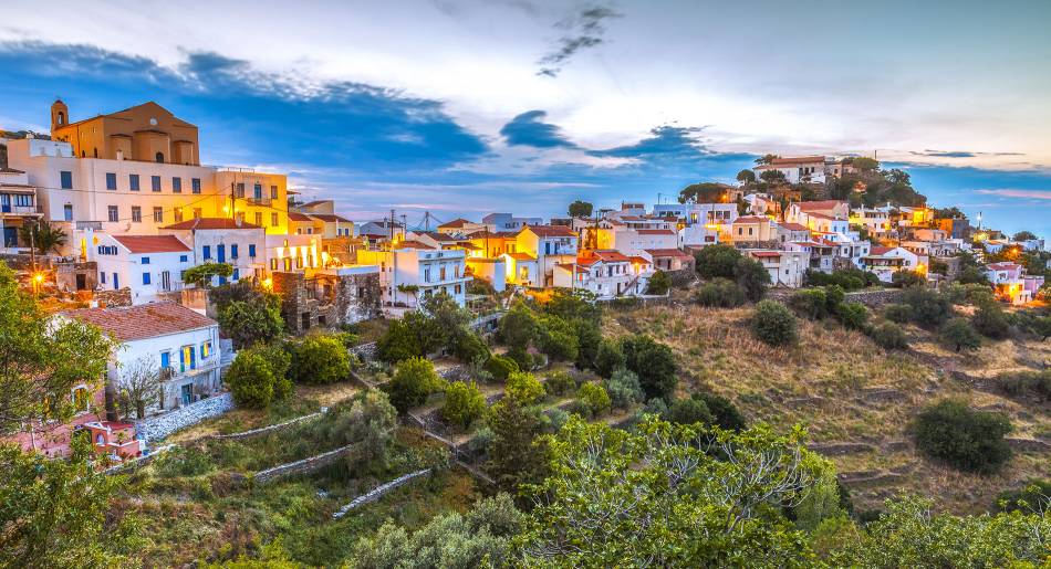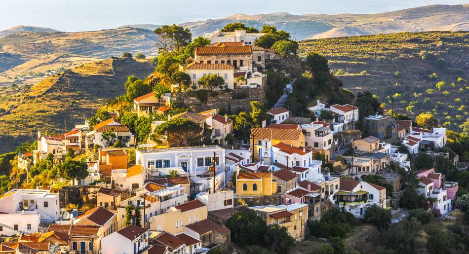 El hotel boutique Kea Village, uno de los mejores hoteles de Kea-Grecia, encaramado en la ladera norte, dentro del pueblo tradicional de Ioulida, tiene vista anfiteatral de Chora y ofrece vistas espectaculares de la puesta de sol y el archipiélago de las Cícladas.