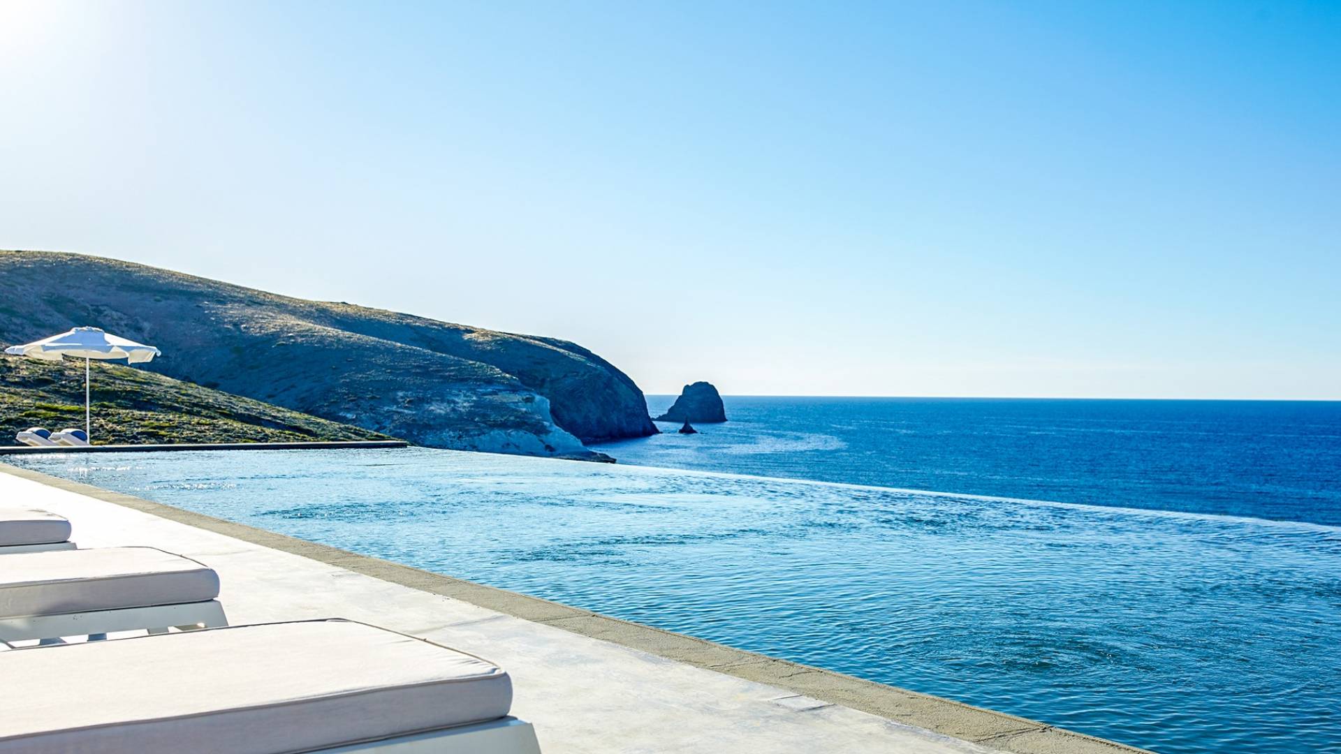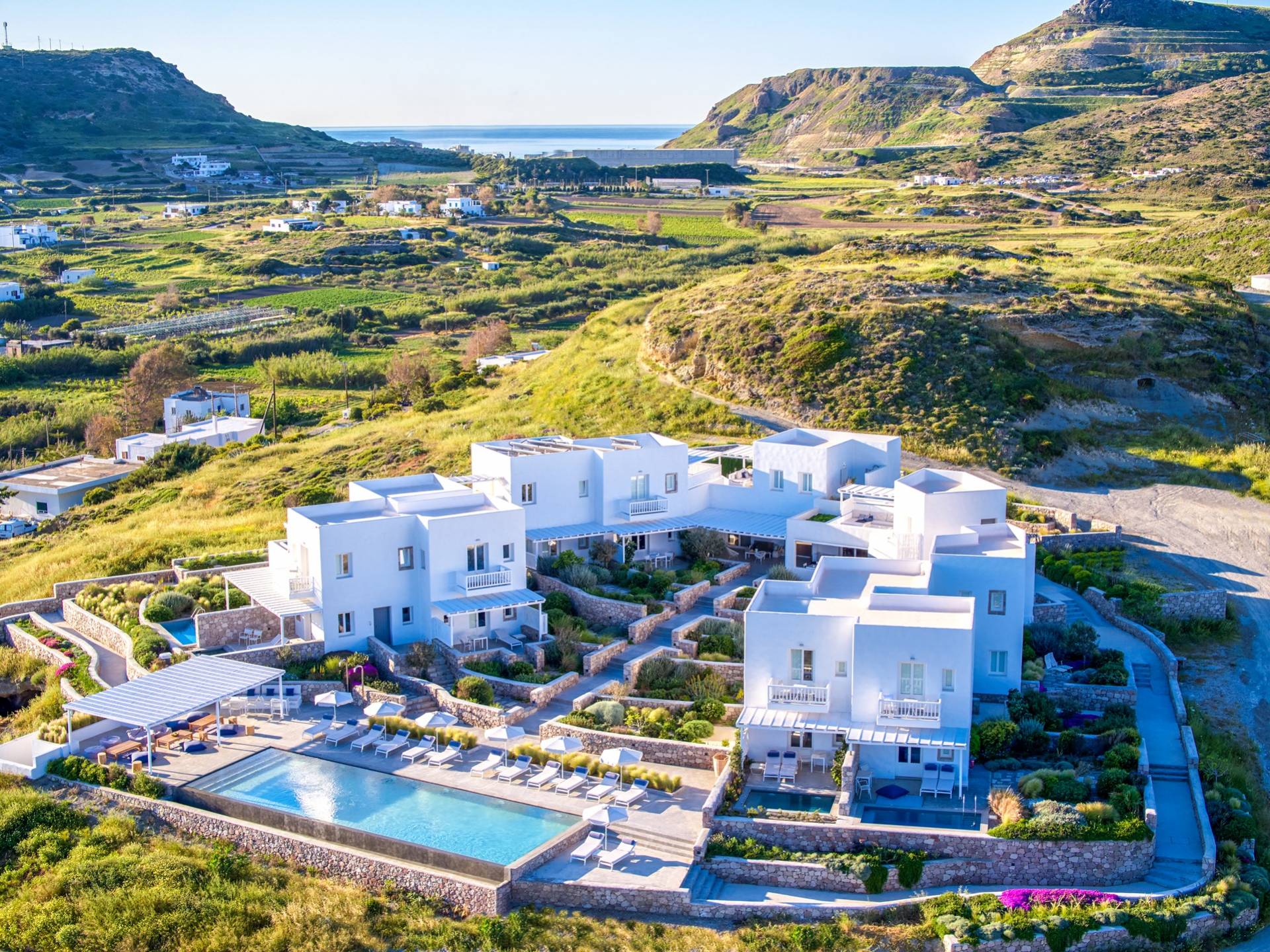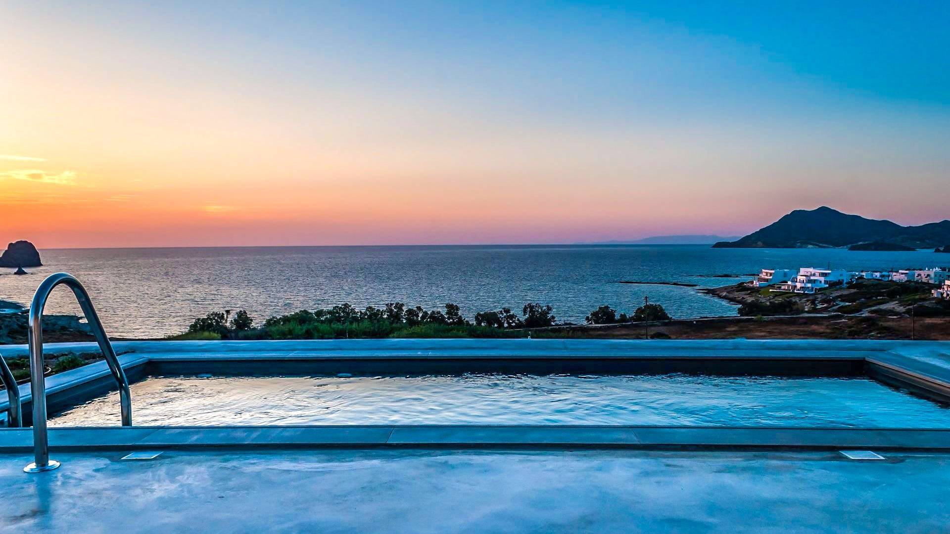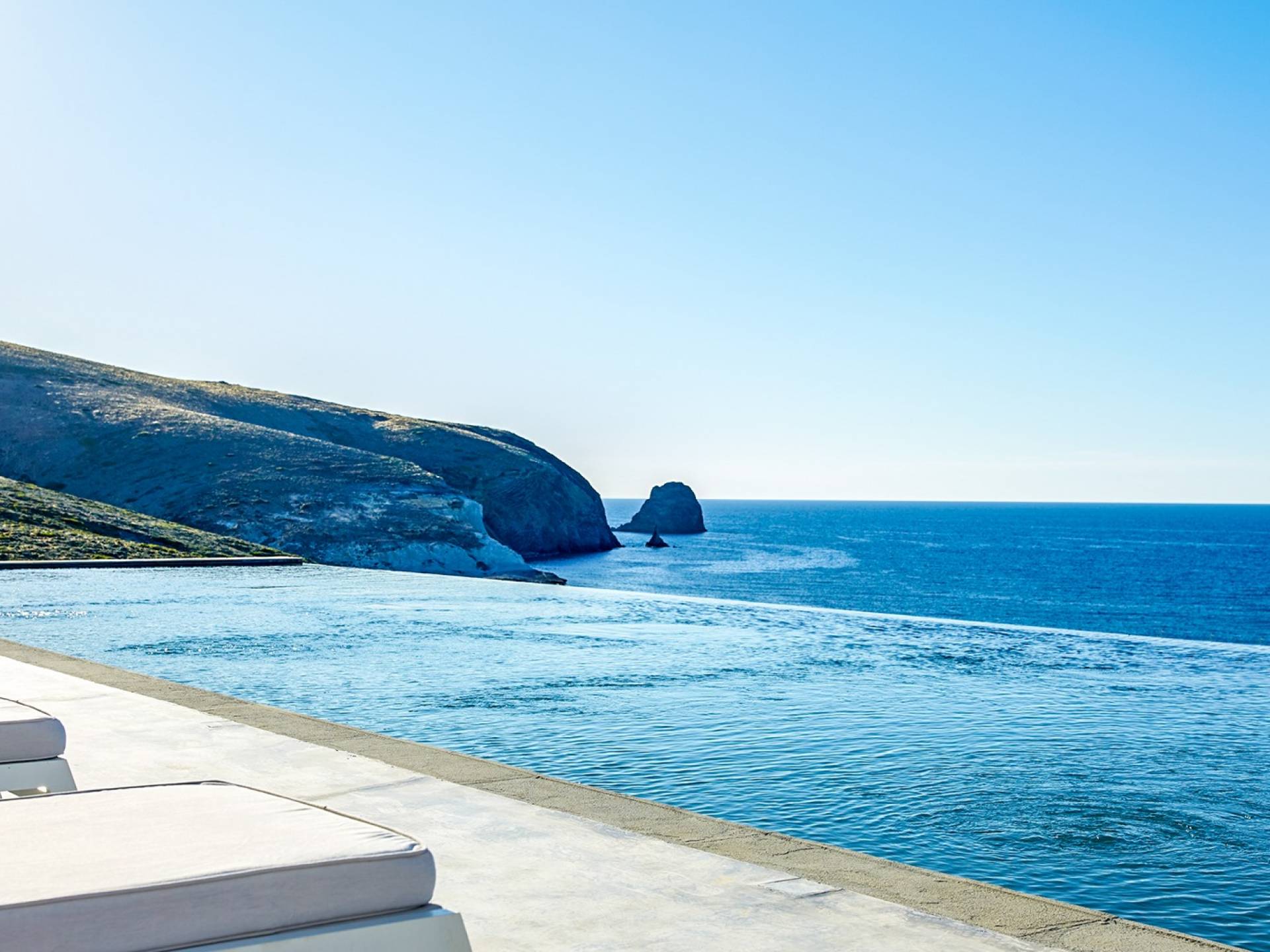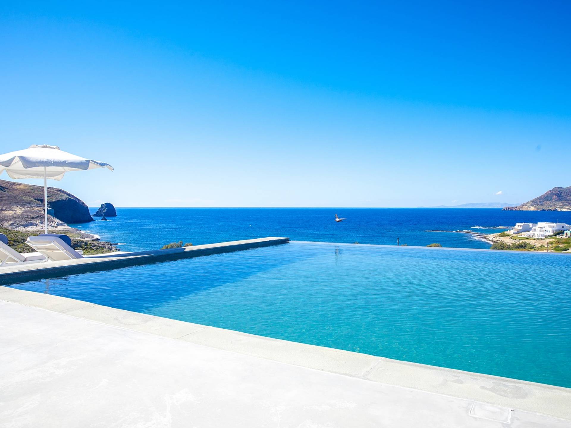 Construido en un lugar exclusivo y tranquilo en un impresionante acantilado, Milos Breeze ofrece vistas panorámicas ininterrumpidas del mar y las islas cercanas que uno puede admirar y disfrutar desde el balcón de cada habitación o suite: Kimolos, Sifnos, Serifos, Agios Georgios y Polyaigo se distinguen desde el espectacular mirador de Milos Breeze. Además, el hotel boutique cuenta con una piscina desbordante única mejorada con minerales de magnesio; un chapuzón y podrá sentir la diferencia.
