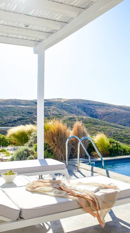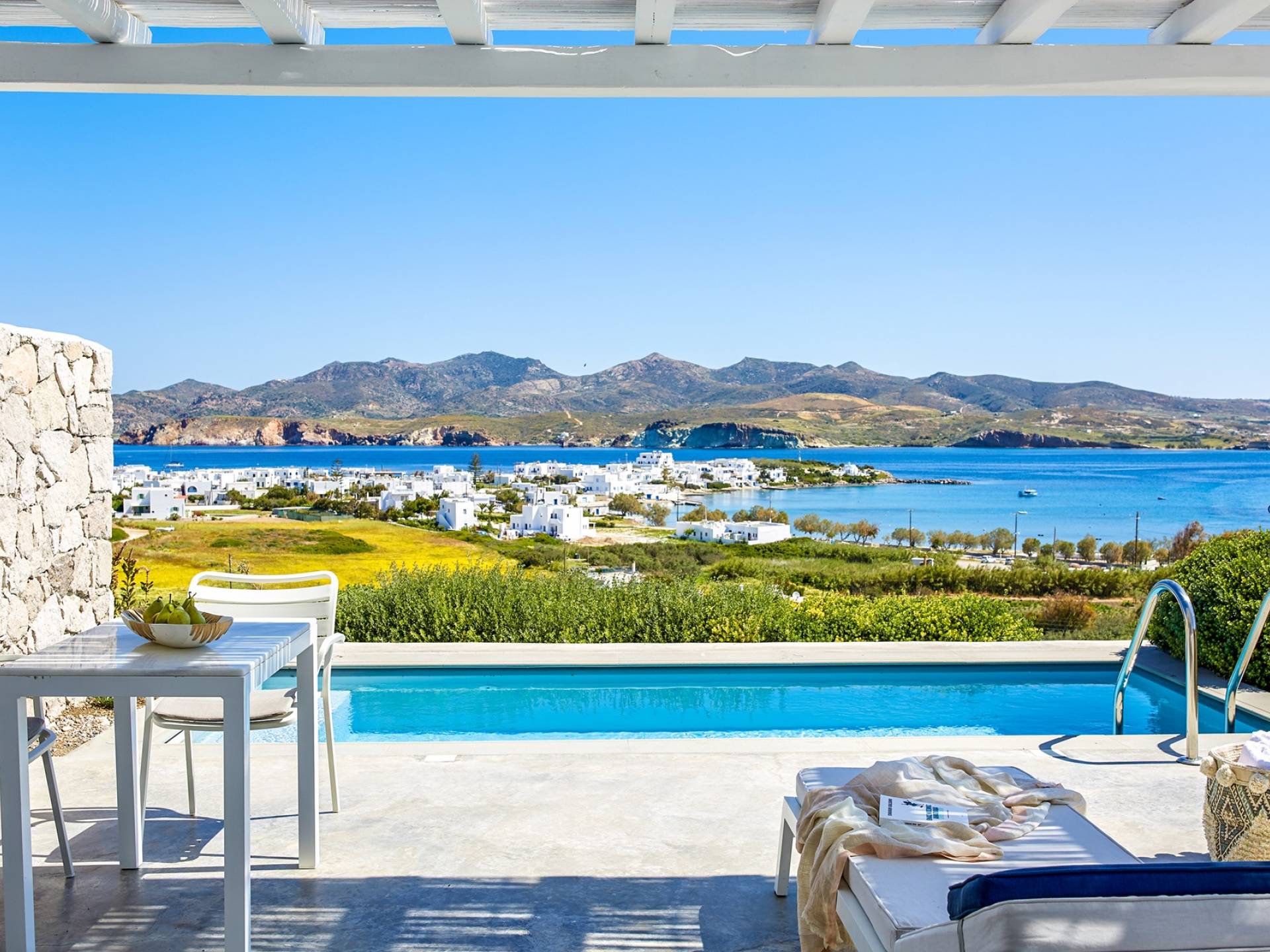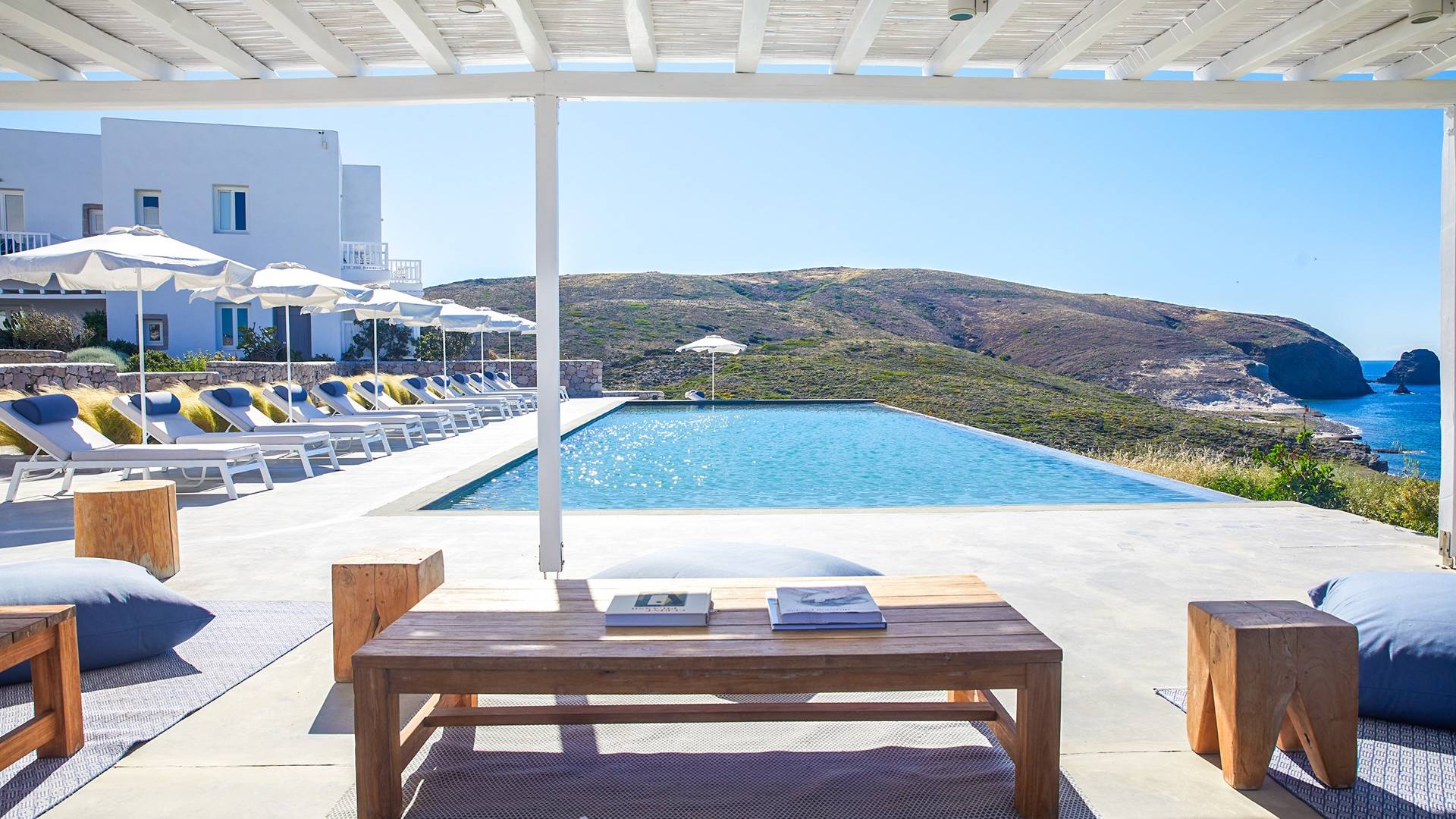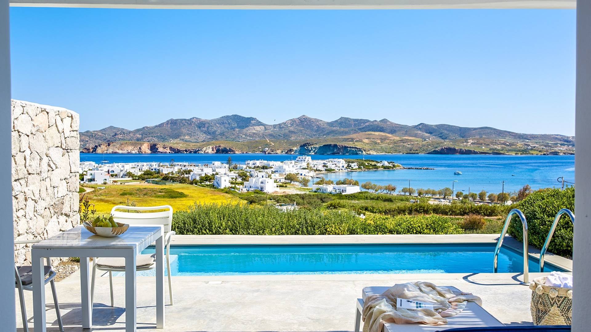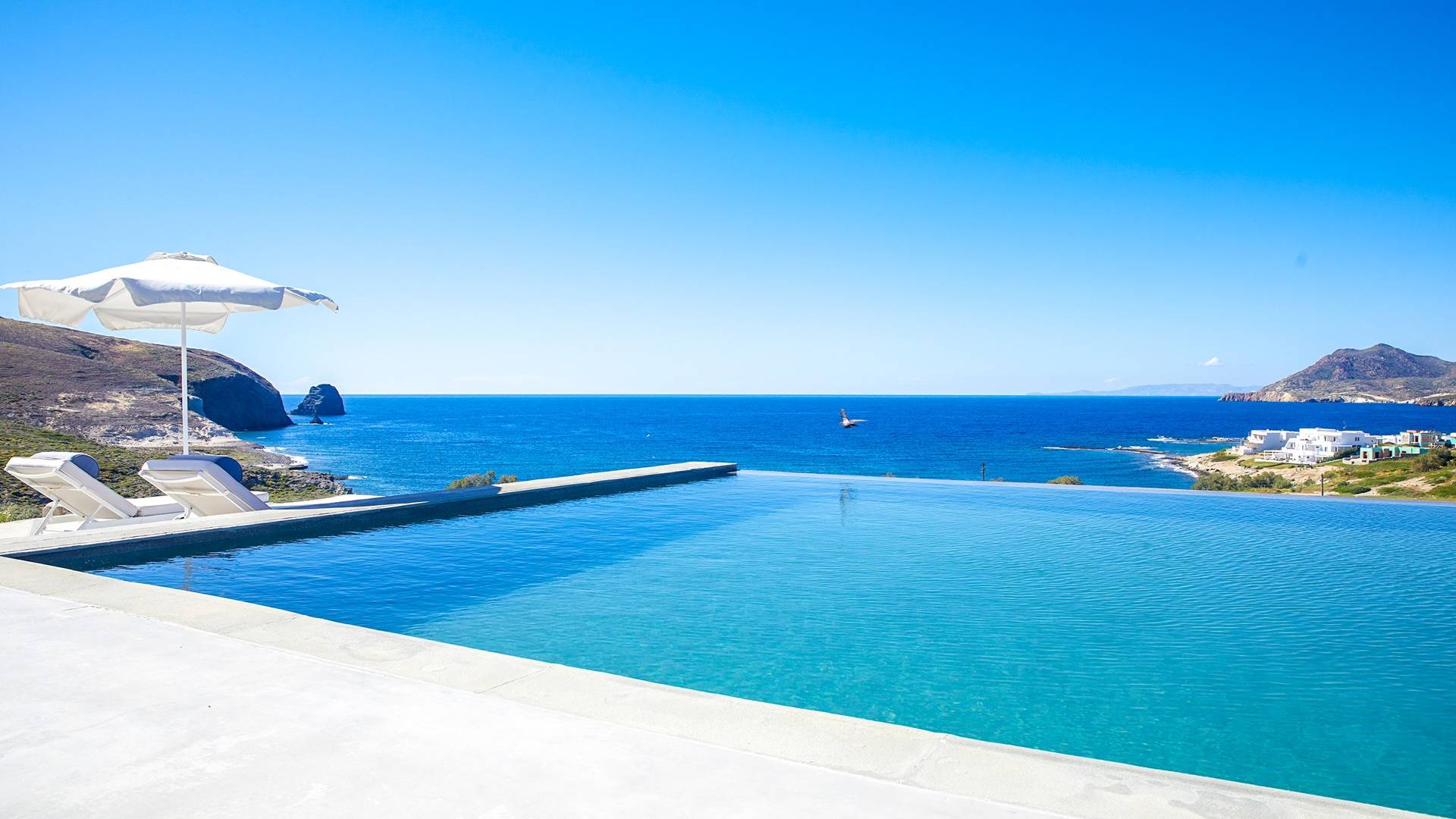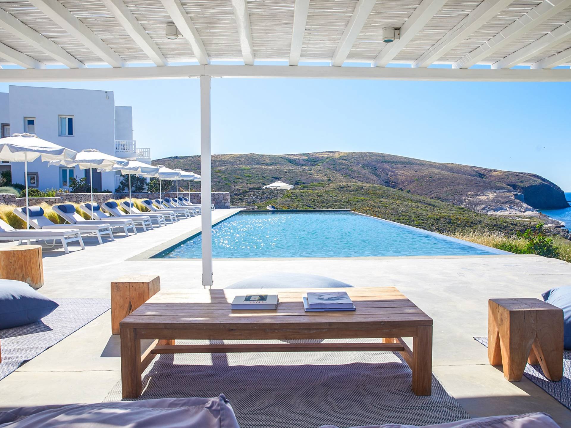 Construido en un lugar exclusivo y tranquilo en un impresionante acantilado, Milos Breeze ofrece vistas panorámicas ininterrumpidas del mar y las islas cercanas que uno puede admirar y disfrutar desde el balcón de cada habitación o suite: Kimolos, Sifnos, Serifos, Agios Georgios y Polyaigo se distinguen desde el espectacular mirador de Milos Breeze. Además, el hotel boutique cuenta con una piscina desbordante única mejorada con minerales de magnesio; un chapuzón y podrá sentir la diferencia.