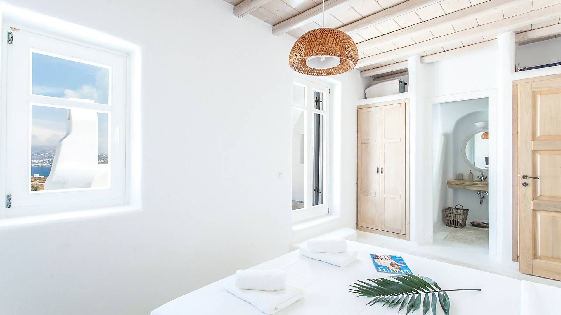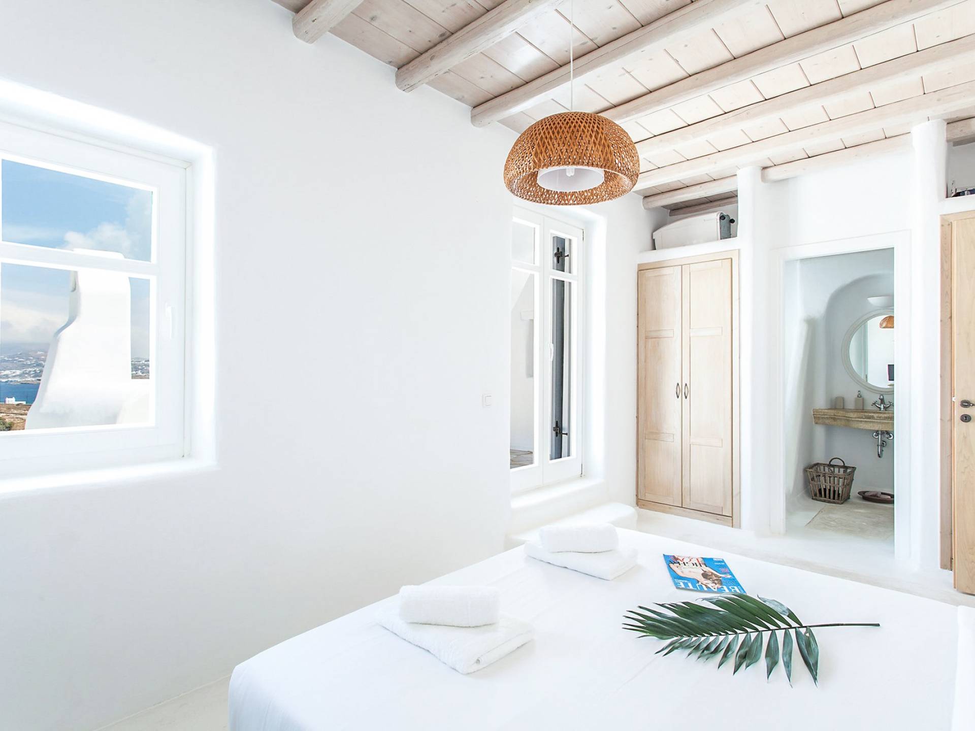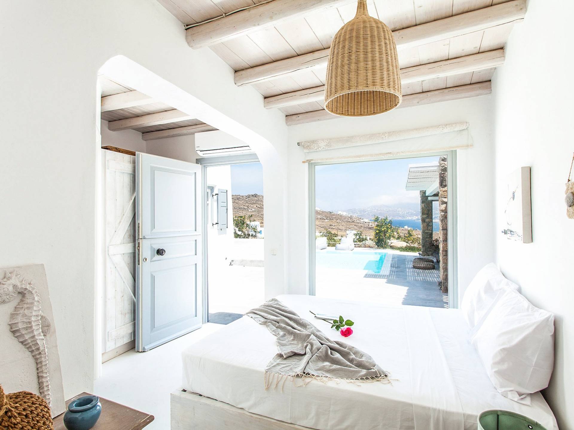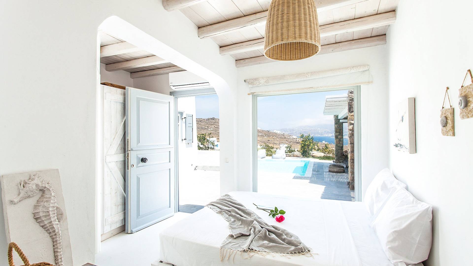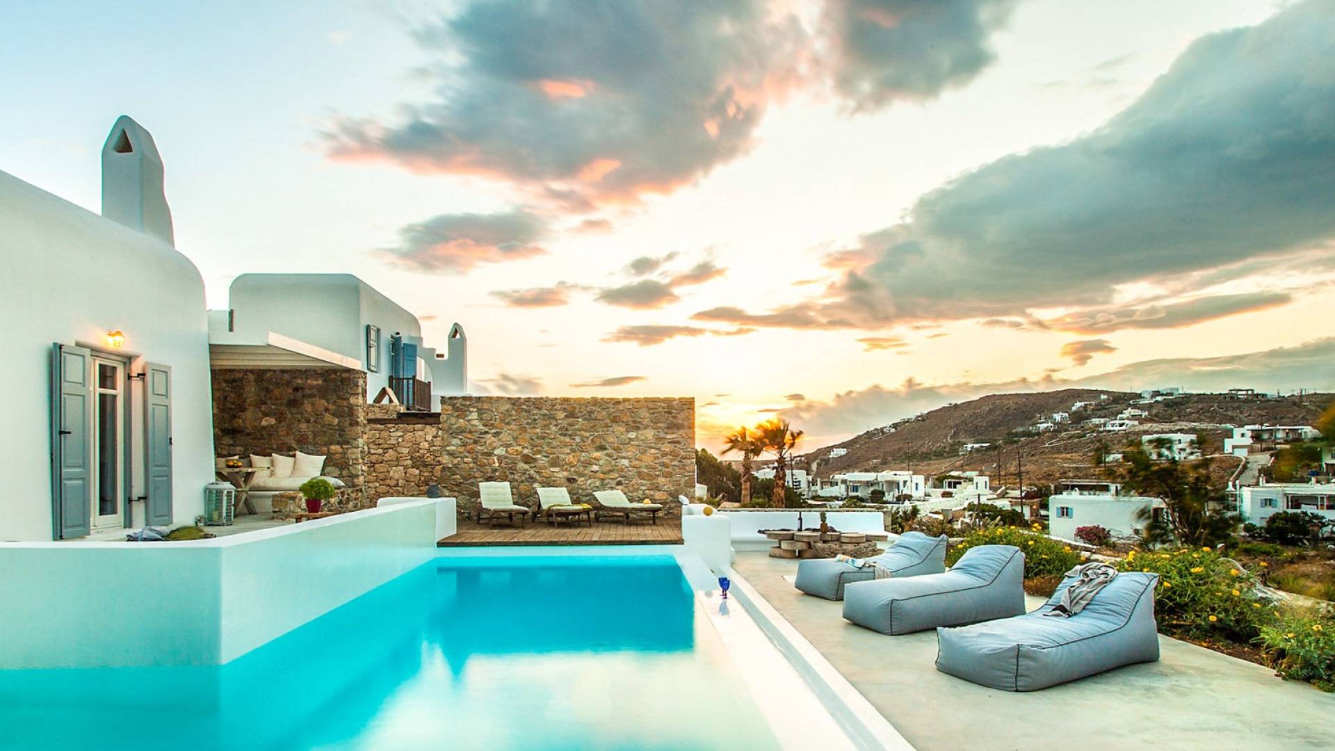 Villa Jasper Mykonos, una exclusiva villa de cinco dormitorios que ejemplifica el verdadero espíritu de la vida veraniega de Mykonos, donde puede disfrutar de una noche de vino tinto en la playa de Ornos mientras ofrece libaciones junto a la piscina a la diosa local Artemisa.