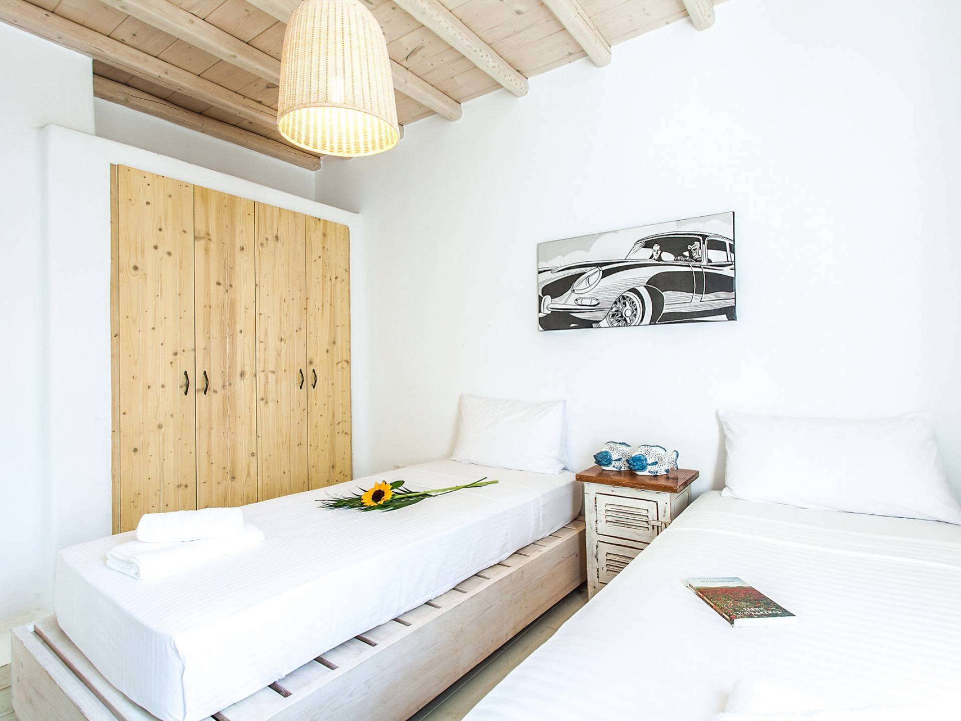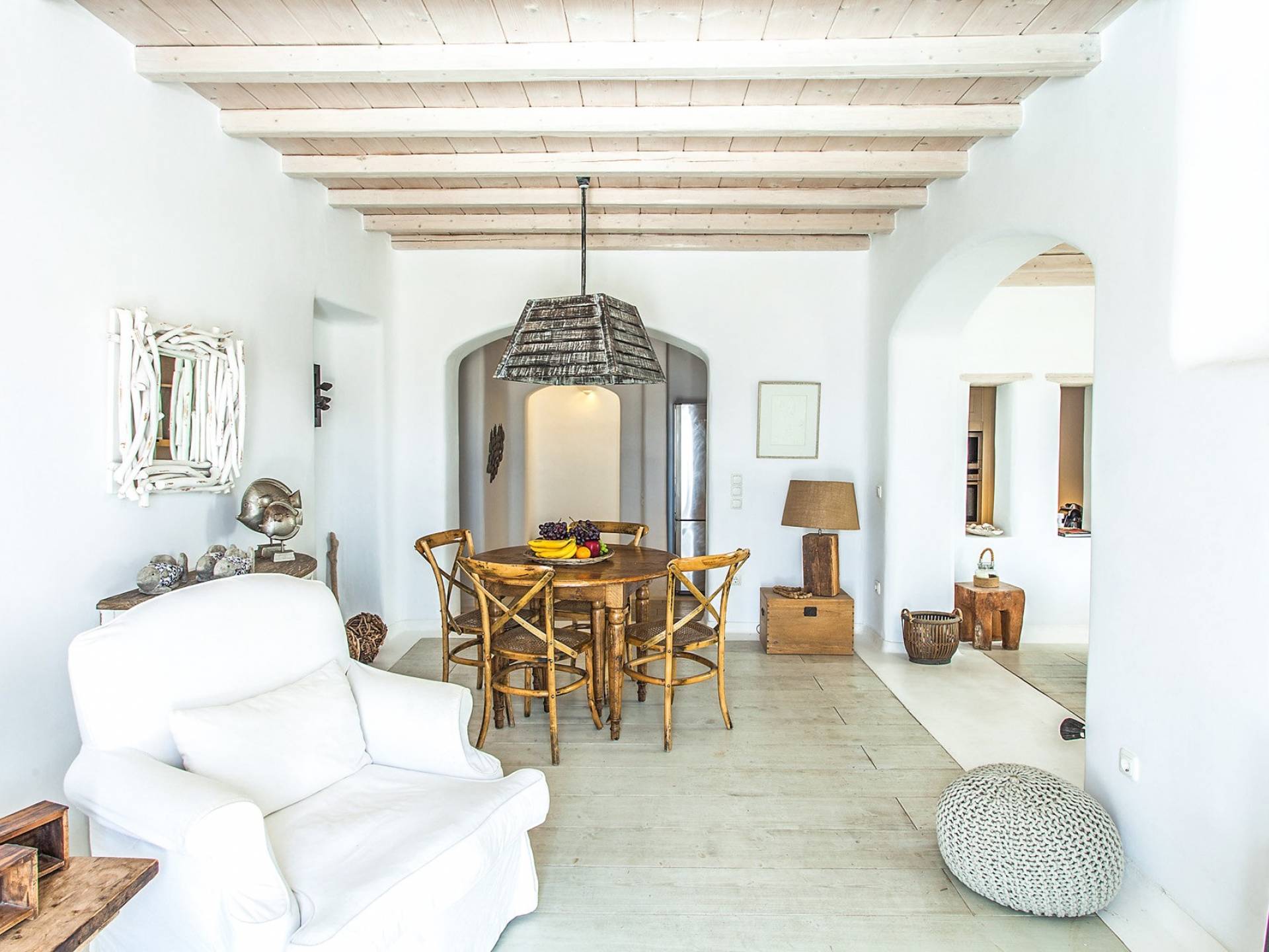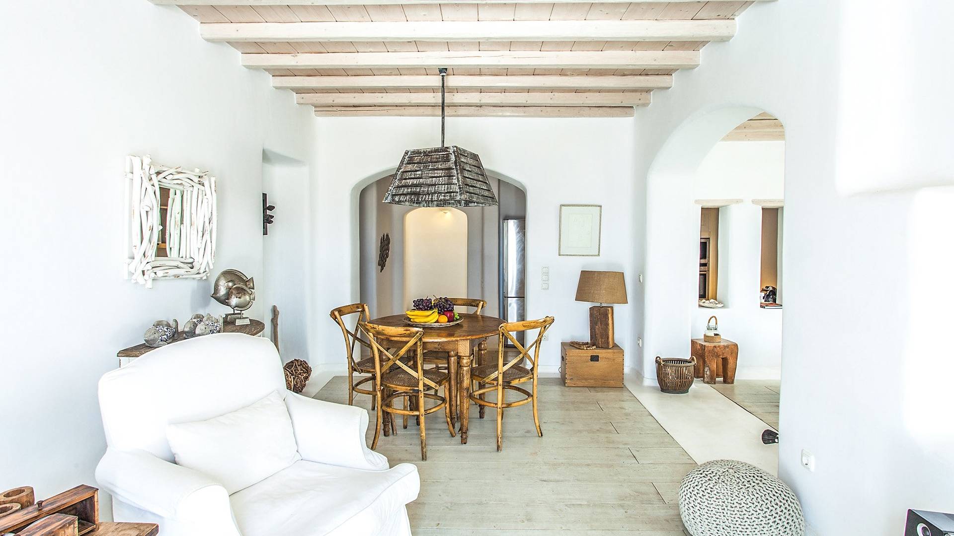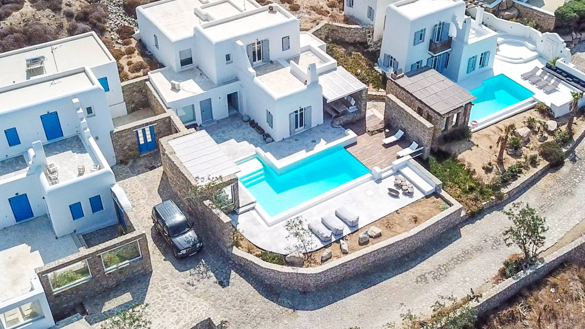 Villa Jasper Mykonos, una exclusiva villa de cinco dormitorios que ejemplifica el verdadero espíritu de la vida veraniega de Mykonos, donde puede disfrutar de una noche de vino tinto en la playa de Ornos mientras ofrece libaciones junto a la piscina a la diosa local Artemisa.