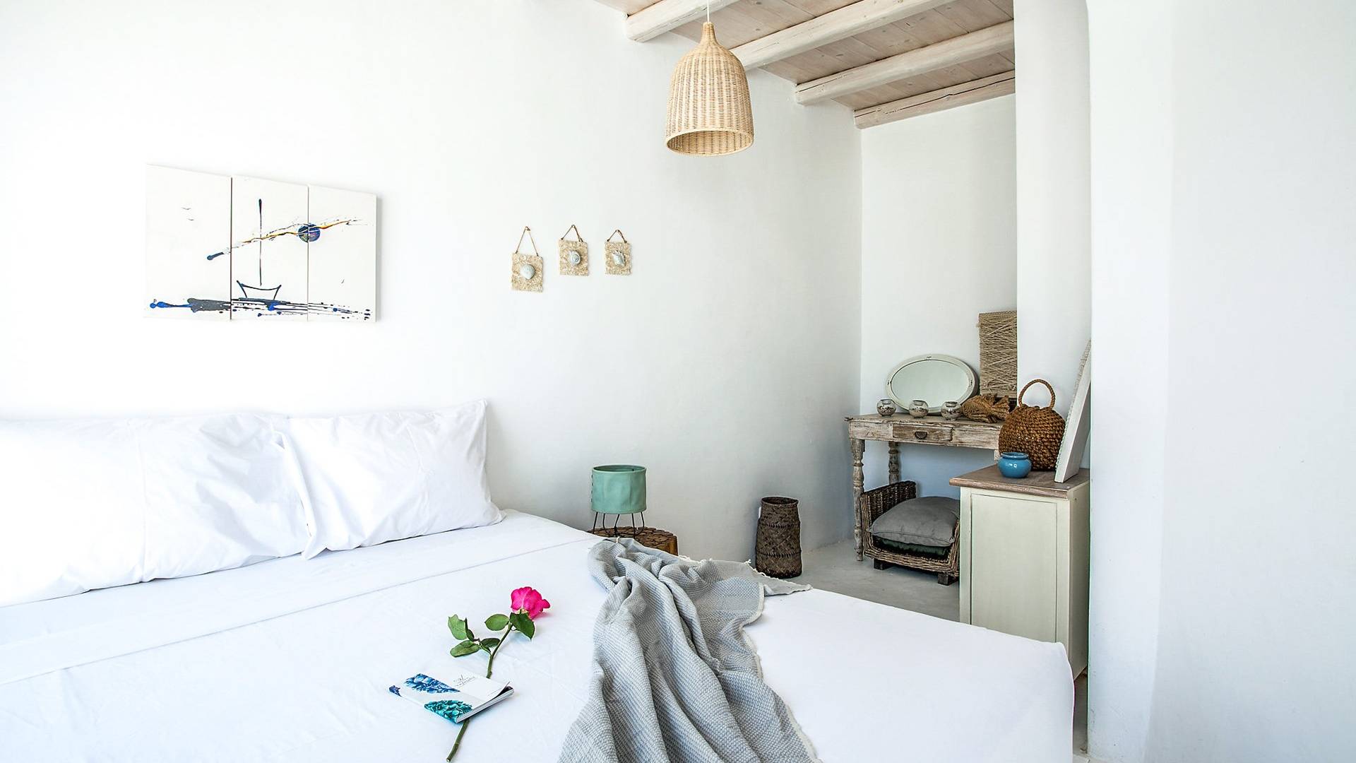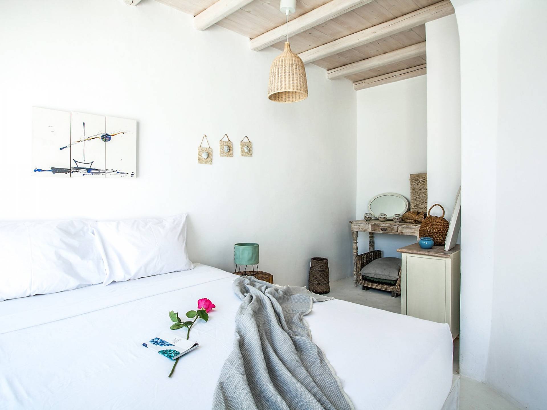 Agios Ioannis es un pequeño pueblo turístico en la parte suroeste de la isla de Mykonos, construido en forma de anfiteatro. Combina la belleza natural con una infraestructura turística increíble. Los hermosos patios están adornados con flores rosas y púrpuras que contrastan con el blanco y componen una pintura deslumbrante. La hermosa playa de arena de Agios Ioannis con aguas cristalinas tomó su nombre de una iglesia cercana. Es una playa…Agios Ioannis es un pequeño pueblo turístico en la parte suroeste de la isla de Mykonos, construido en forma de anfiteatro. Combina la belleza natural con una infraestructura turística increíble. Los hermosos patios están adornados con flores rosas y púrpuras que contrastan con el blanco y componen una pintura deslumbrante. La hermosa playa de arena de Agios Ioannis con aguas cristalinas tomó su nombre de una iglesia cercana. Es una playa…