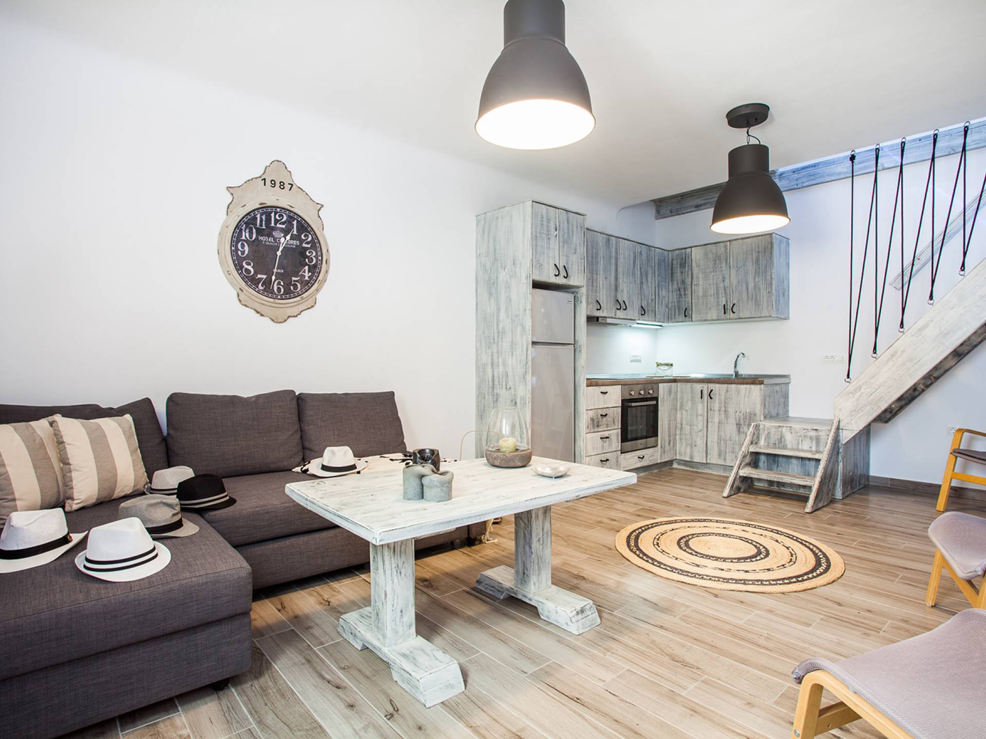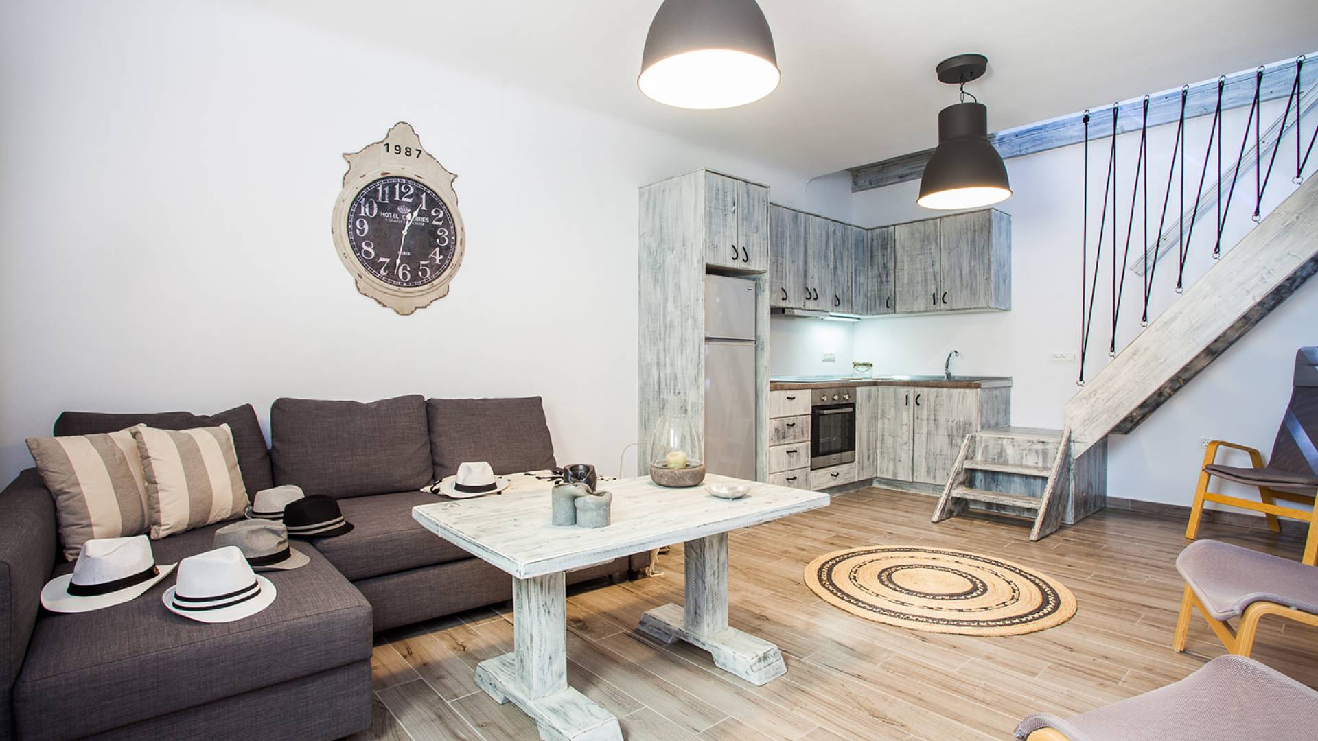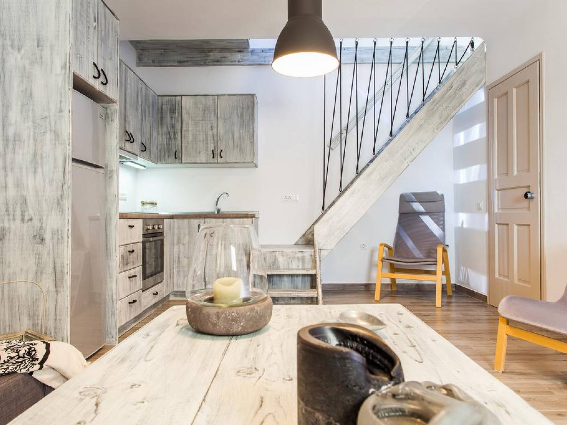 Olive Dúplex (40 m2) tiene 1 dormitorio independiente (cama queen size) en el primer piso + 1 sofá cama, baño con ducha, sala de estar y comedor de diseño moderno y cocina totalmente equipada con todas las comodidades. Al aire libre hay una piscina privada, un comedor al aire libre y una barbacoa.