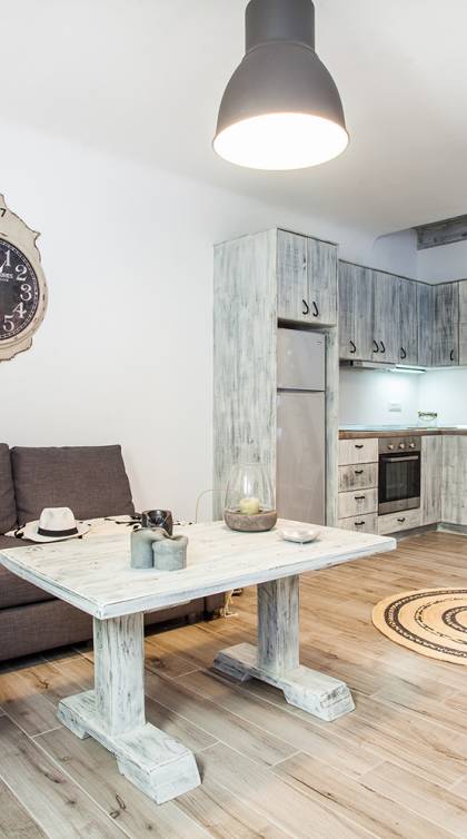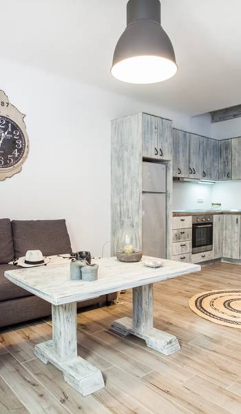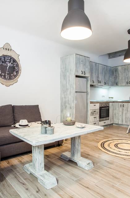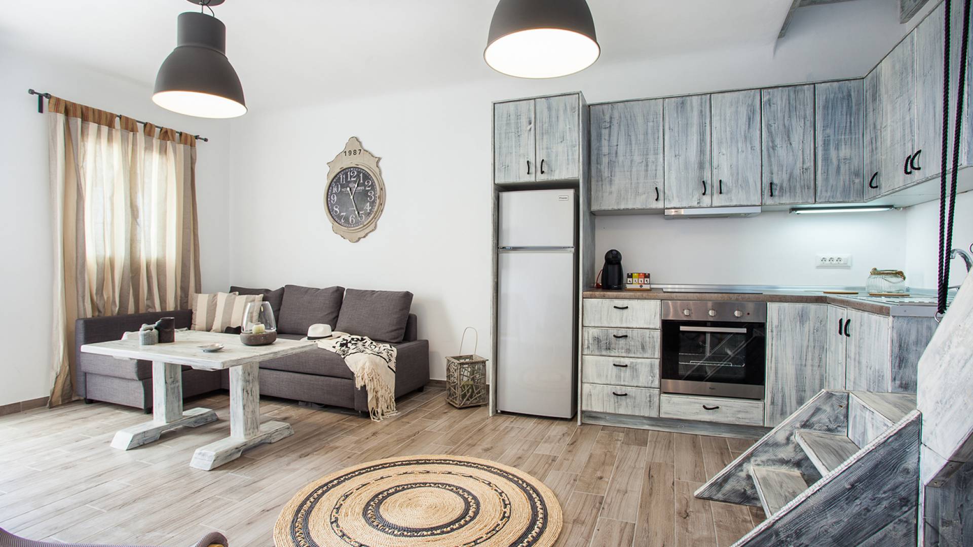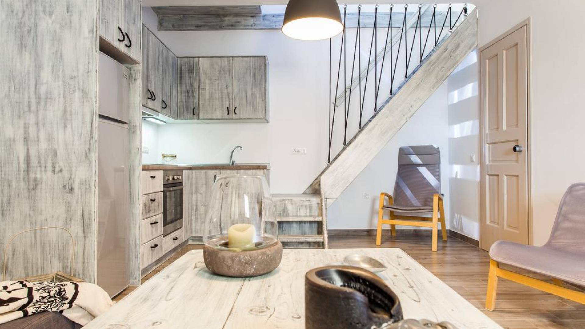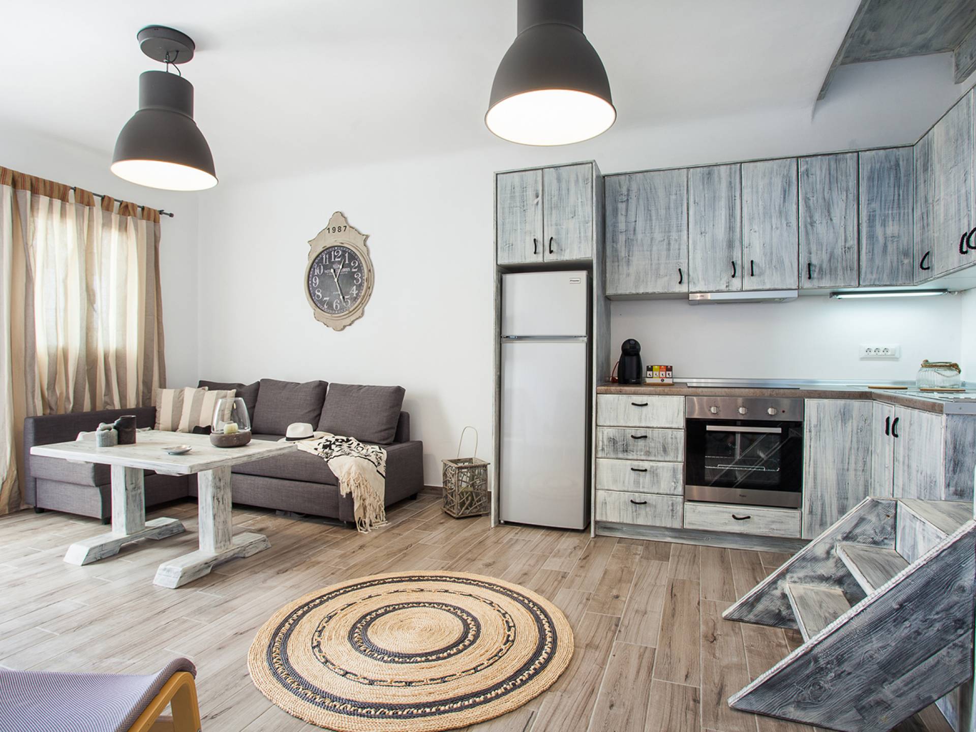 Olive Dúplex (40 m2) tiene 1 dormitorio independiente (cama queen size) en el primer piso + 1 sofá cama, baño con ducha, sala de estar y comedor de diseño moderno y cocina totalmente equipada con todas las comodidades. Al aire libre hay una piscina privada, un comedor al aire libre y una barbacoa.
