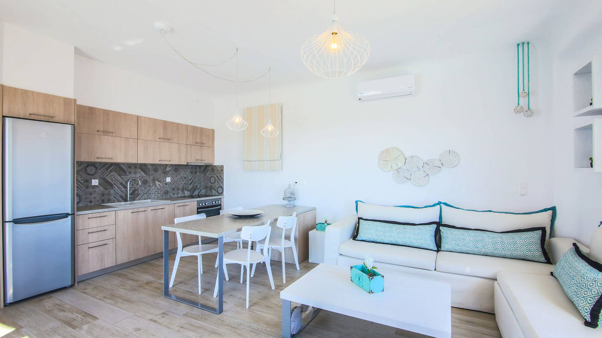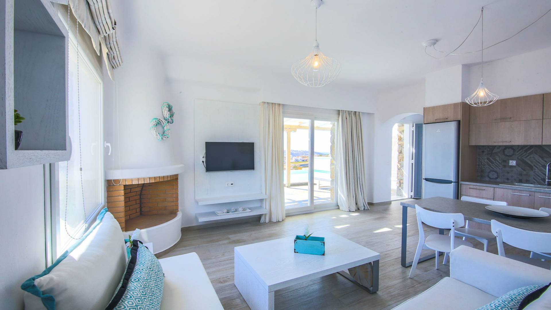 La villa de lujo de 1 dormitorio en Evi Mykonos tiene un diseño moderno y ligero, muebles elegantes, camas exuberantes, toques decorativos minimalistas que resaltan nuestra estética y amor por el mar ... Sentimientos de equilibrio, simplicidad, lujo discreto y privacidad: todo lo cual encarnan nuestra filosofía.