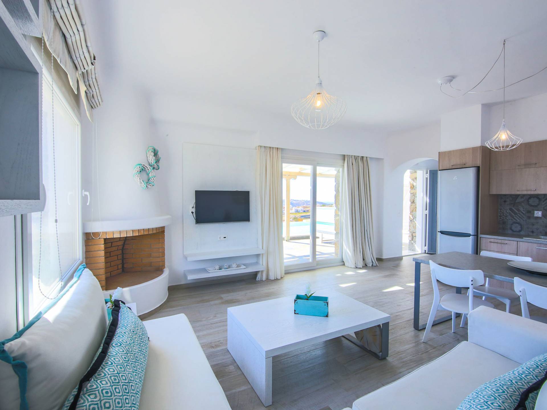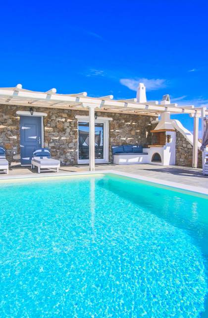 Villa Evi se convertirá en tu escondite personal si lo que buscas es una variedad de comodidades, diseño interior contemporáneo, vistas inigualables, tranquilidad y acceso directo a las playas más famosas de Mykonos. Villa Evi siempre sorprende a sus residentes ya que supera todas las expectativas y nunca deja de ofrecer una experiencia única.