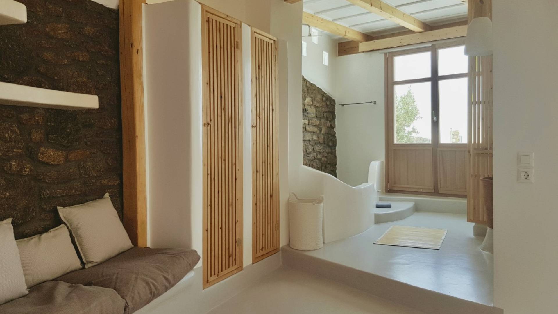 Construidos al estilo de la verdadera arquitectura de Myconian, los interiores minimalistas de cada suite y villa personifican el diseño contemporáneo amueblado con detalles auténticos. Las paredes encaladas, los arcos lisos y los espacios abiertos que se ven en todo el complejo crean un ambiente relajante y relajante.