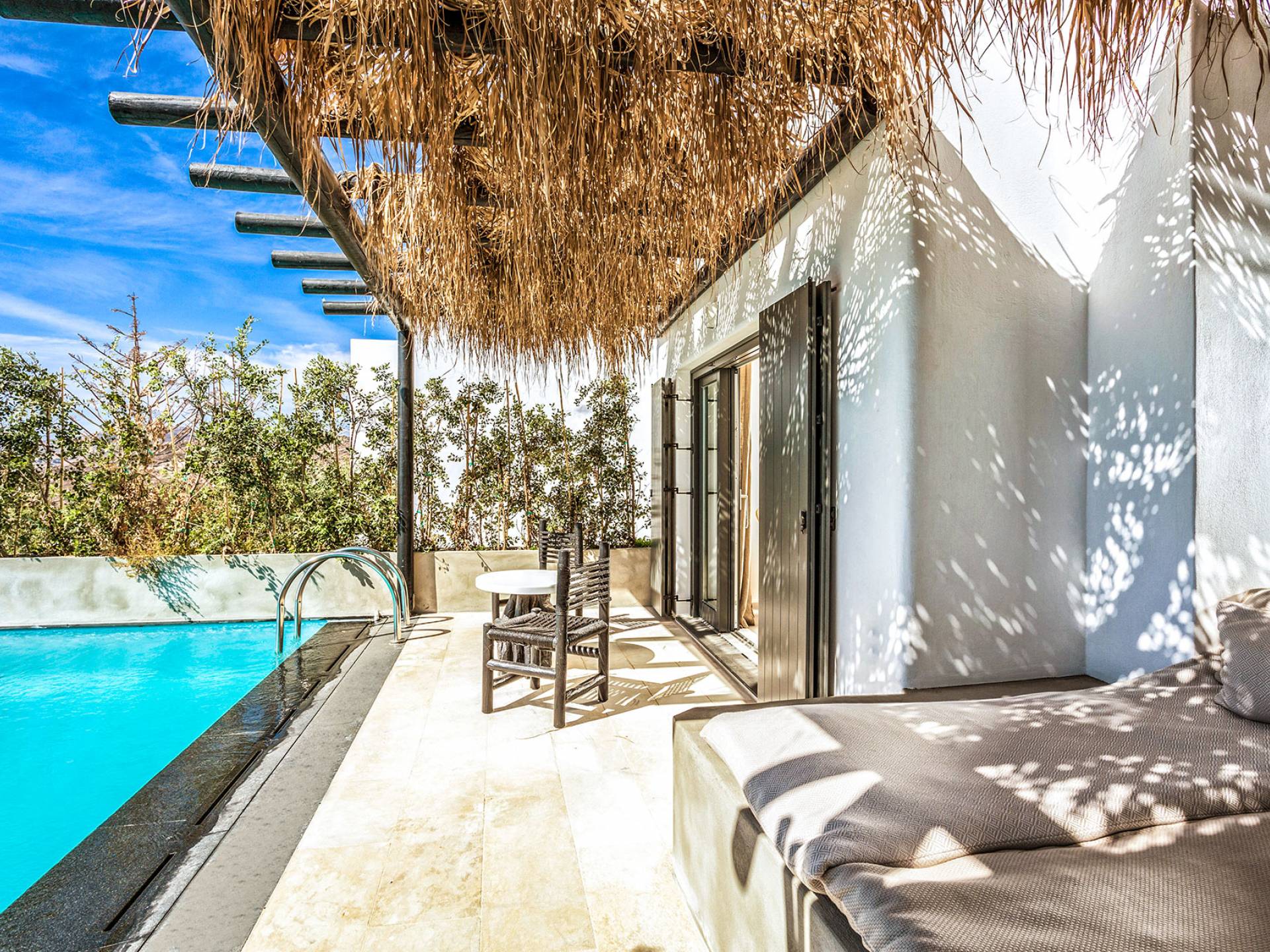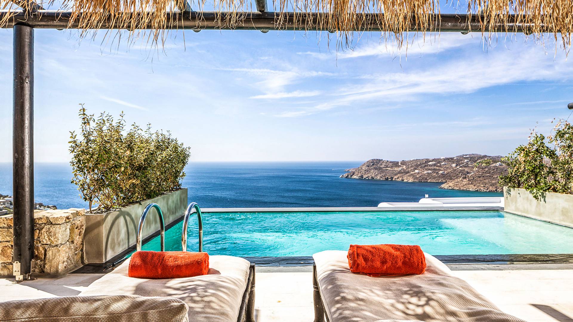 La Grand Villa es la joya de la corona. Para los huéspedes que buscan relajarse en nuestro equilibrio de lujo de Villa y disfrutar de vistas incomparables de la cosmopolita playa de Elia, no busque más. La Villa Grand Majestic consta de dos dormitorios principales, una sala de estar bien decorada, una cocina y un comedor, así como una terraza completamente amueblada con una gran piscina infinita privada y área de barbacoa. Un hogar lejos del hogar, ya que le brindamos la máxima hospitalidad mientras satisfacemos su necesidad de privacidad y tranquilidad.