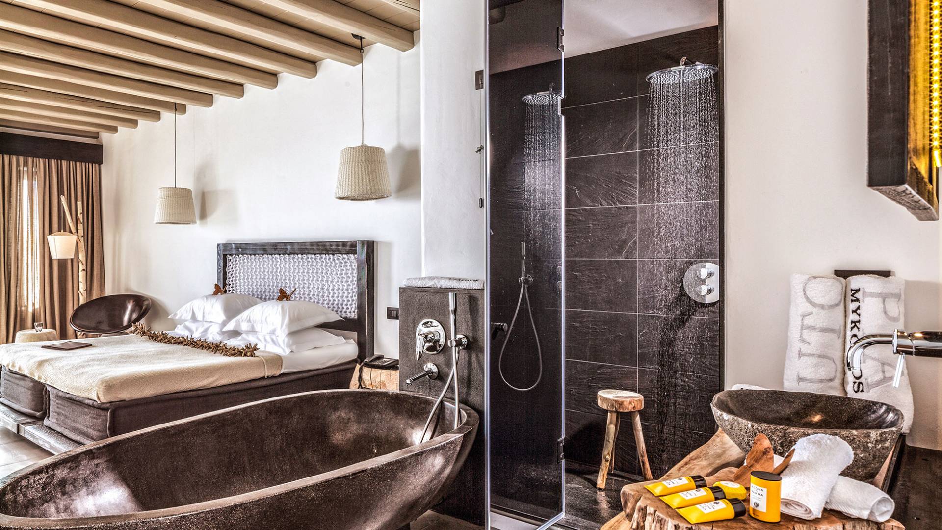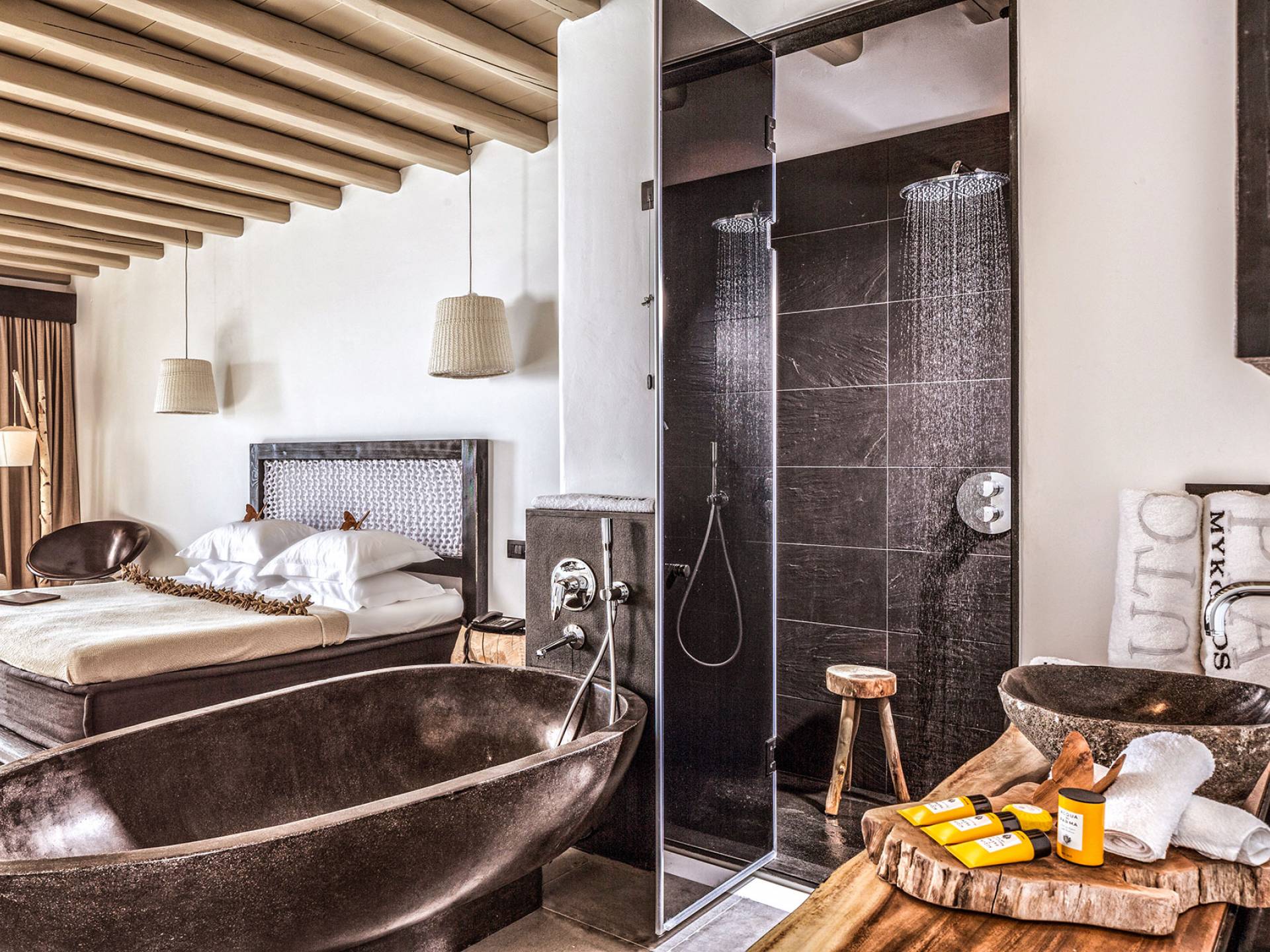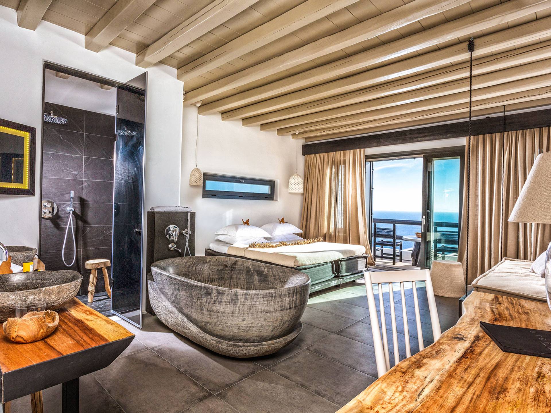 Combinando la impresionante magnificencia de la naturaleza virgen con la sofisticación del diseño contemporáneo, Utopia se destaca como el pináculo de la hospitalidad exclusiva y personalizada en la isla de Mykonos. Además de ofrecer espectaculares vistas al mar y alojamiento en villas y suites de clase mundial, Utopia cuenta con instalaciones impecables, servicios personalizados impecables, tratamientos de spa de talasoterapia de lujo y opciones gastronómicas gourmet, lo que garantiza que todos los huéspedes disfruten de una experiencia vacacional única de 5 estrellas. Diseñado para tener una "conciencia verde", el Myconian Utopia Resort se construyó utilizando técnicas respetuosas con el medio ambiente, con cada suite o villa meticulosamente equipada con materiales sostenibles de origen local. La piedra tallada a mano, las ricas maderas exóticas y una amplia gama de muebles hechos a medida fusionan la opulencia moderna con la artesanía tradicional para brindarle lo que solo puede describirse como un santuario para los sentidos en un destino de ensueño.