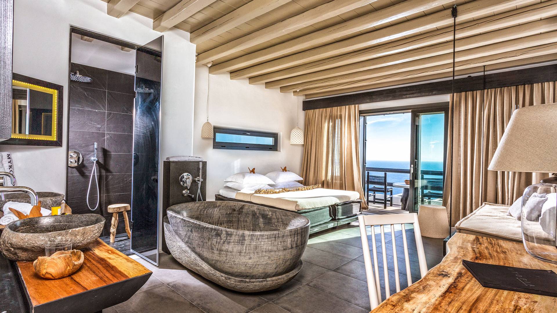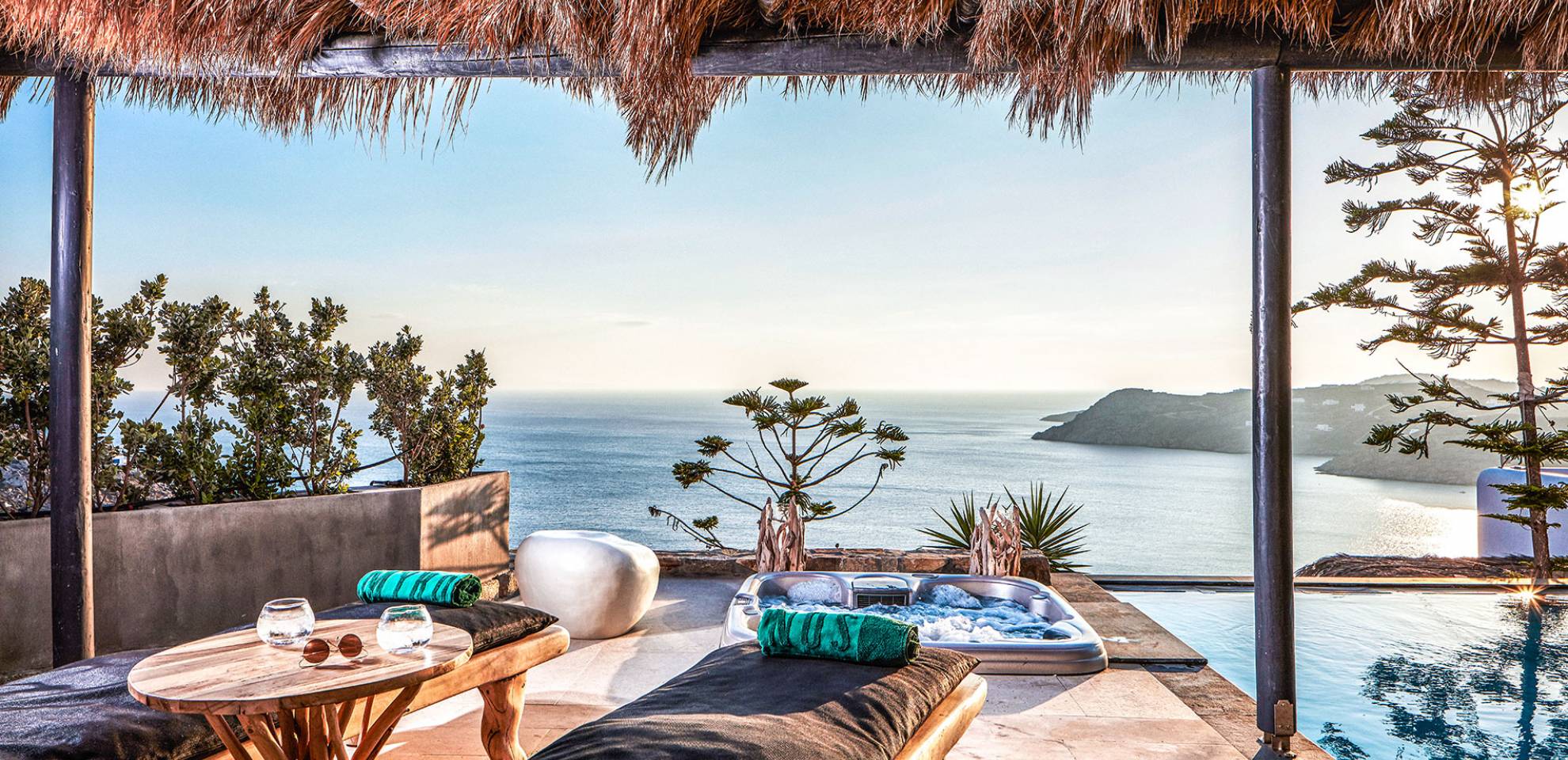 Con vistas a las profundas aguas azules del mar Egeo desde su posición dominante a 100 metros (300 pies) sobre la famosa Elia Beach en Mykonos, el Myconian Utopia Resort es una de las nuevas joyas de la corona de la Colección Myconian de hoteles, complejos turísticos, villas y miembro orgulloso de Relais & Chateaux.