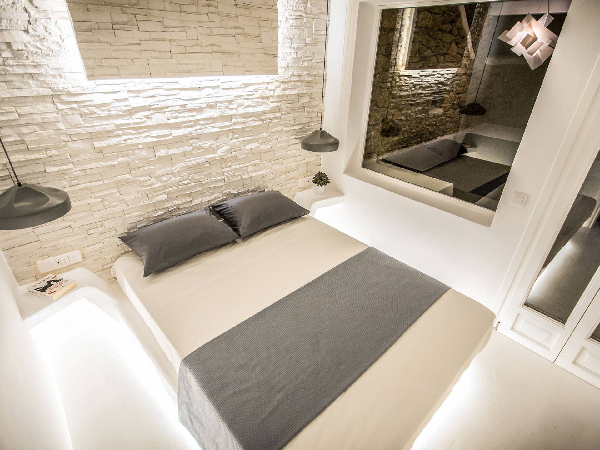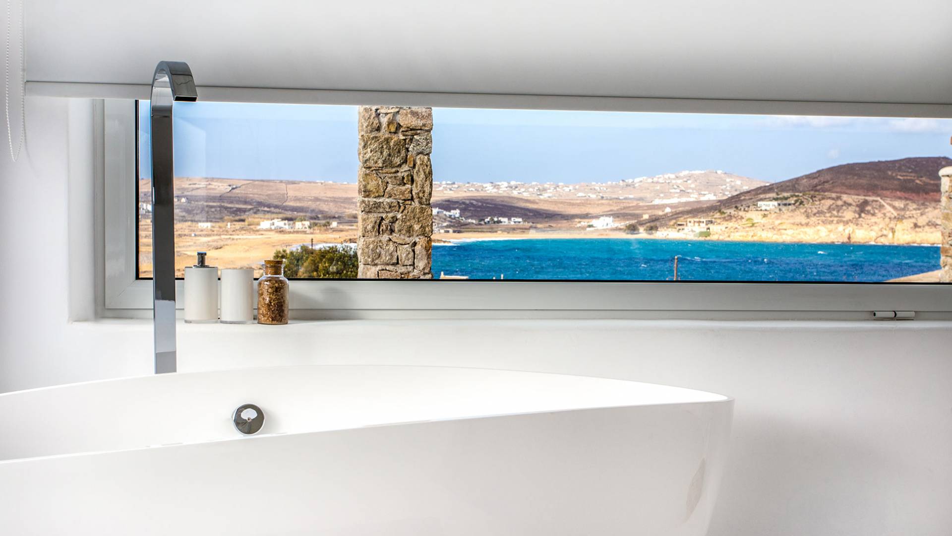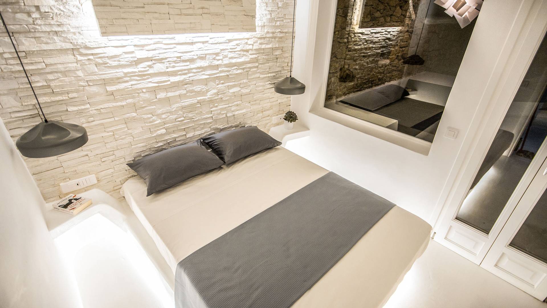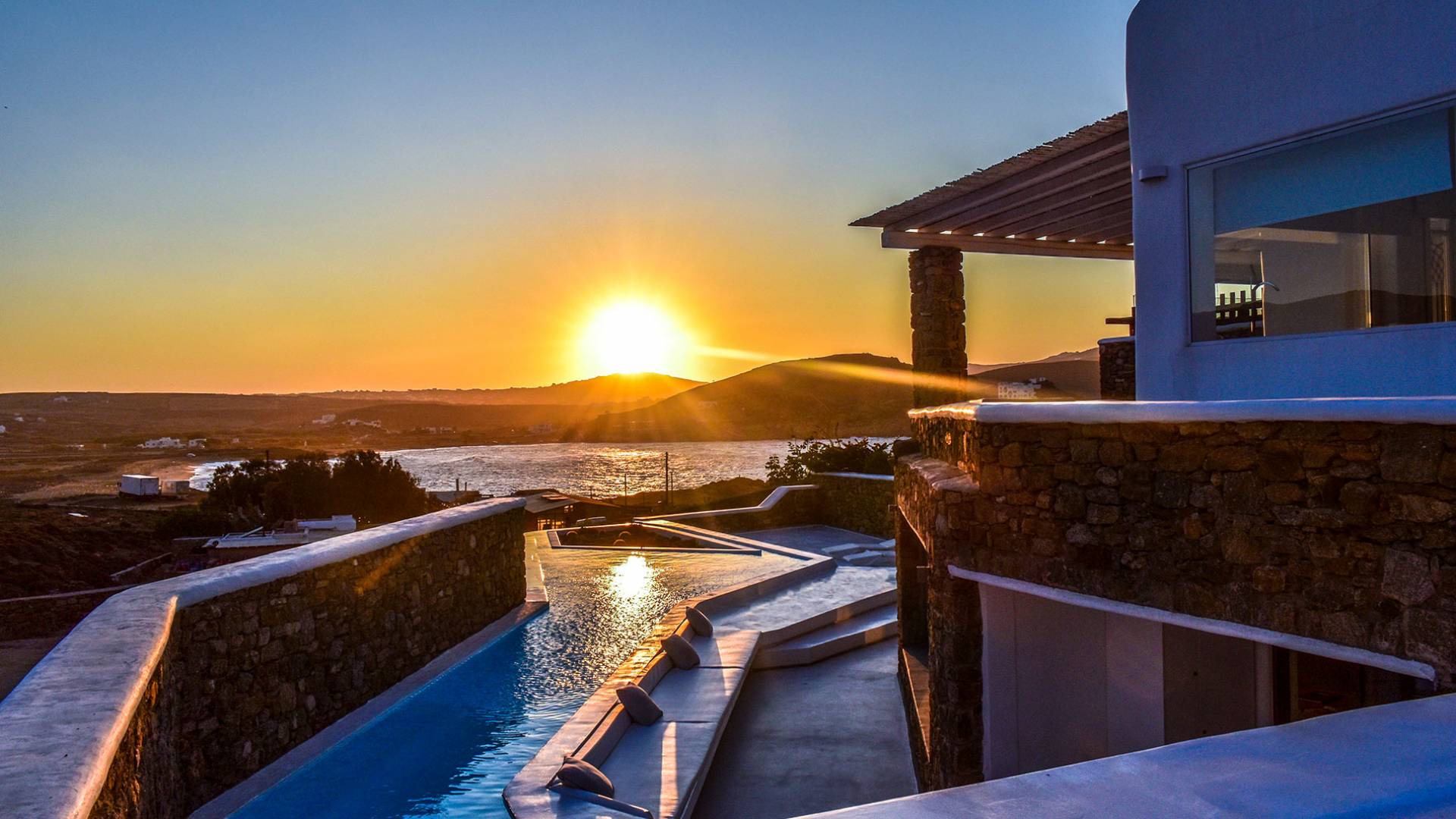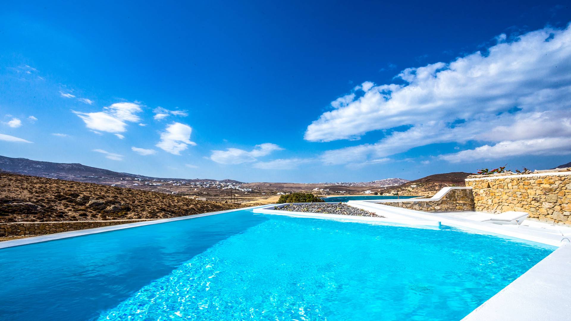 La tecnología fluye sutilmente a través de la villa. La sala de estar cuenta con un impresionante cine en casa con un proyector de alta definición, reproductor multimedia Bluetooth Blueray y Apple TV que le permite transmitir contenido sin problemas desde cualquier dispositivo. La misma potencia se puede encontrar en el dormitorio principal del nivel superior. Los 4 dormitorios tienen aire acondicionado, ofrecen vistas panorámicas sin obstáculos al mar oa la montaña, y tienen acceso directo a la piscina y a las terrazas y el patio del nivel superior. Un dormitorio principal cuenta con un baño en suite accesible para sillas de ruedas con rieles de apoyo para inodoro y ducha, mientras que el otro cuenta con una bañera junto a las ventanas panorámicas del piso al techo, ideal para olvidarse de sus problemas. Pase las tardes relajándose en los salones de la terraza y contemple el horizonte con asombro mientras se desarrolla la majestuosa puesta de sol de Myconian. Por la noche, las numerosas opciones de iluminación, incluida la iluminación arquitectónica LED, lo ayudan a crear el ambiente adecuado. Shhhh. Deje que el sonido de las olas lo calme mientras se aleja lentamente en la comodidad de su cama y sueña con los días sin preocupaciones por venir.