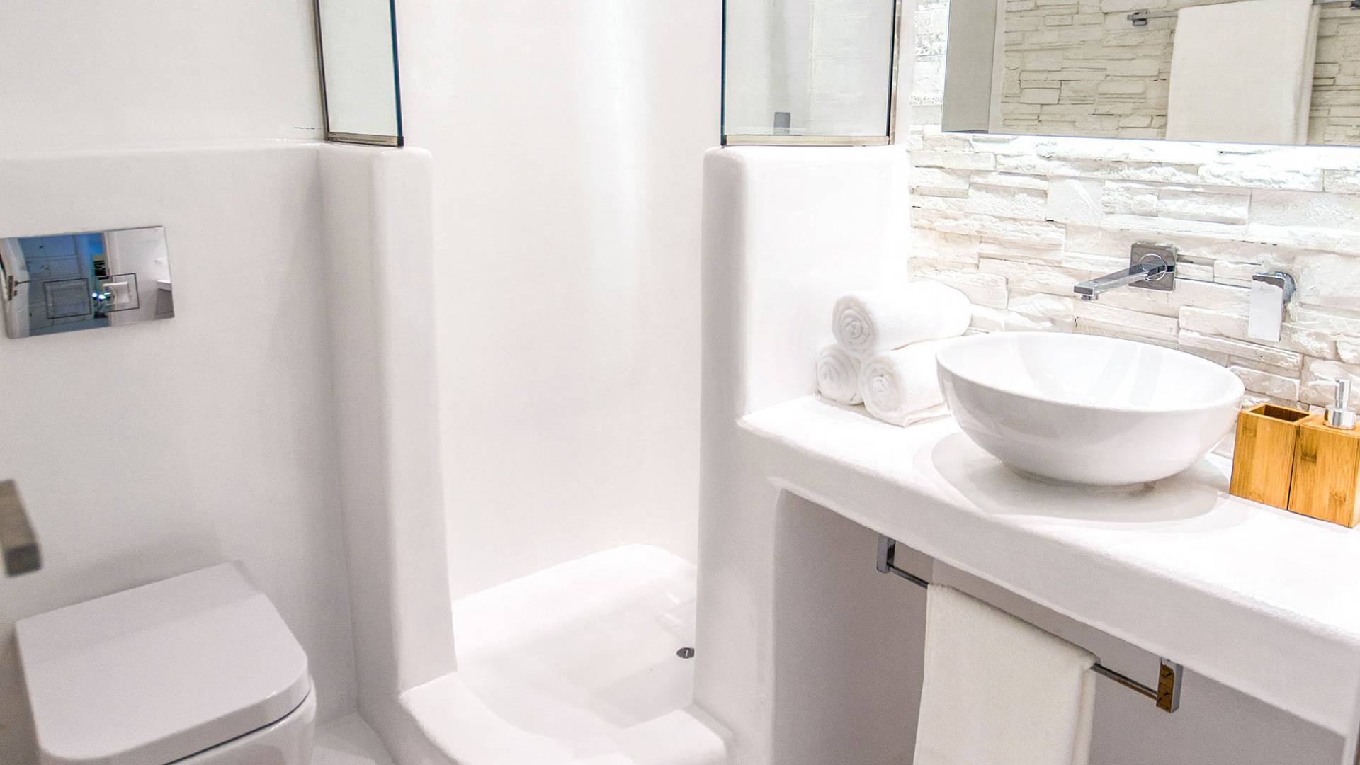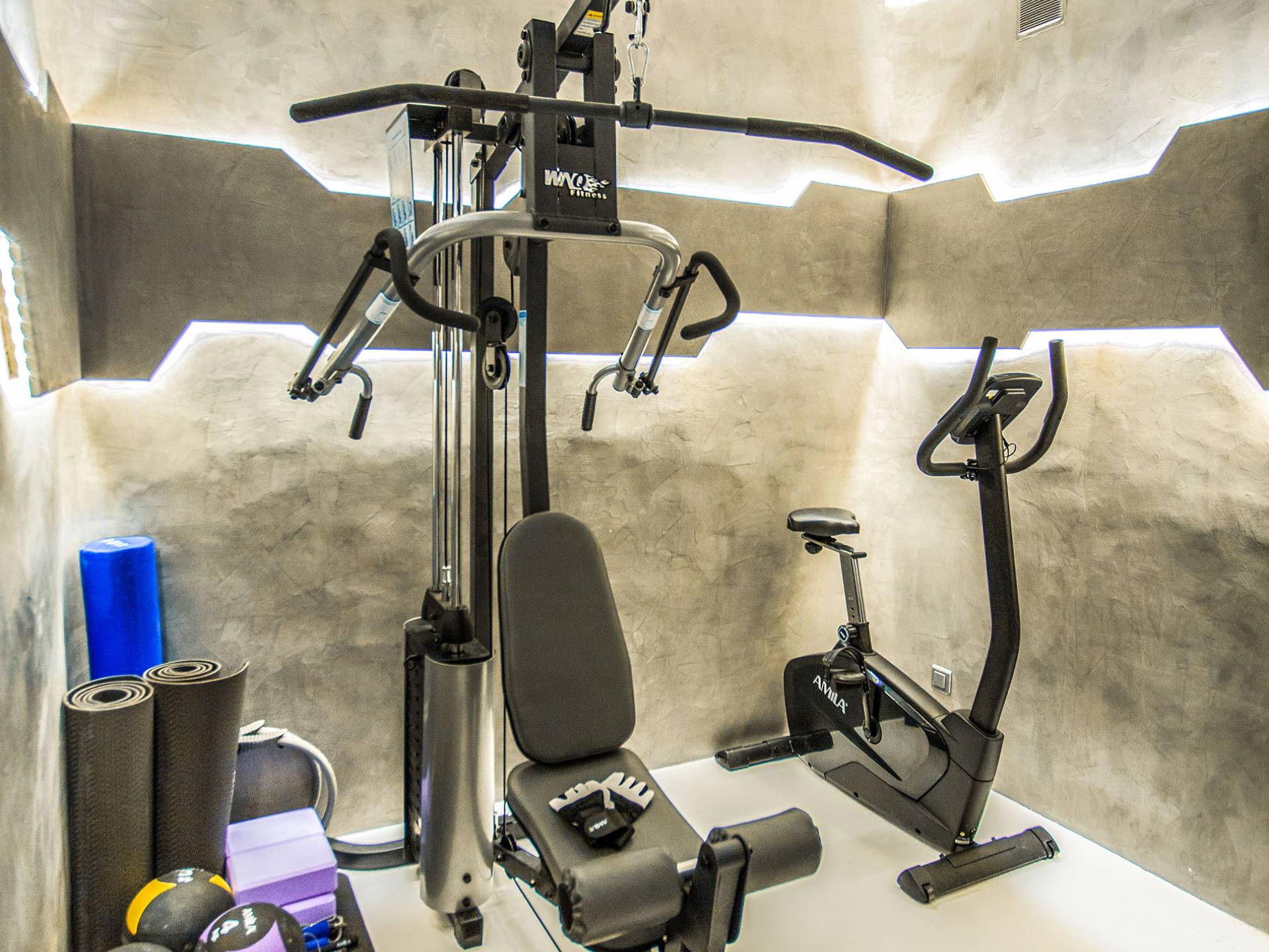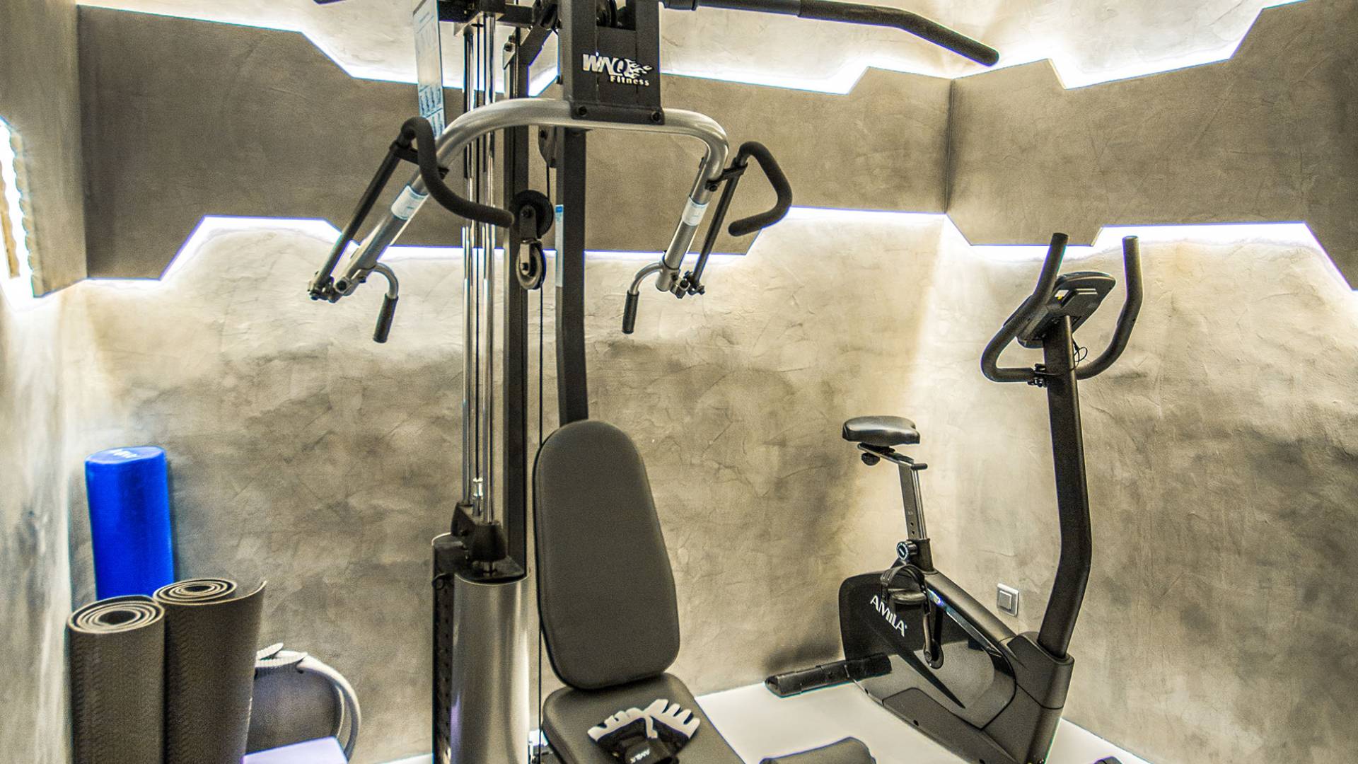 Pasa al patio del nivel superior para disfrutar de una vista más anfiteatro de la piscina y el mar y déjate cautivar por el reflejo del sol griego en el mar ondulado. Medite entre las montañas circundantes o sin estirarse con yoga o pilates antes de ir a la playa. Si prefiere hacer ejercicio en el interior, encontrará más equipos de fitness y opciones de ejercicio en el gimnasio interior.