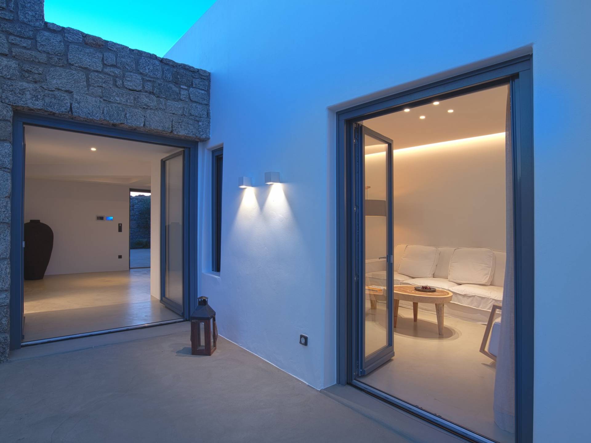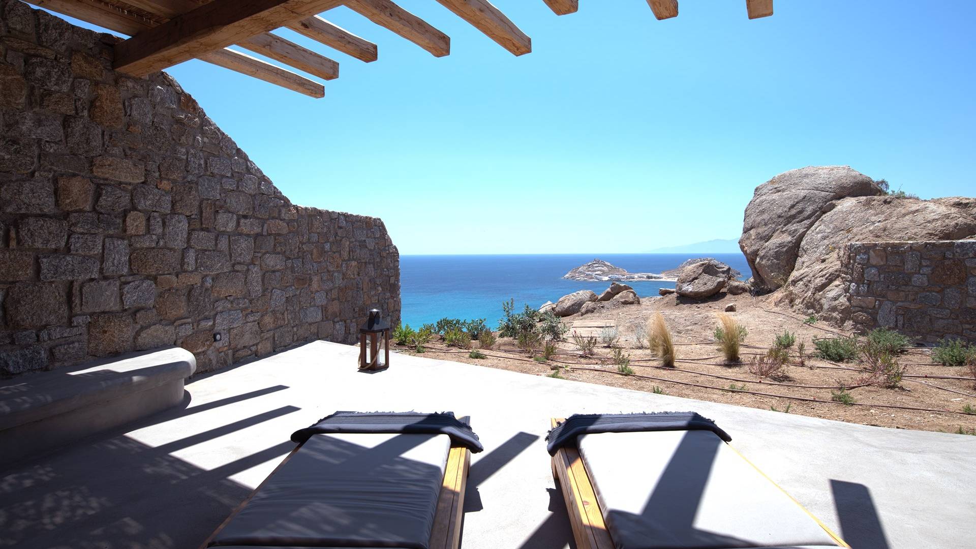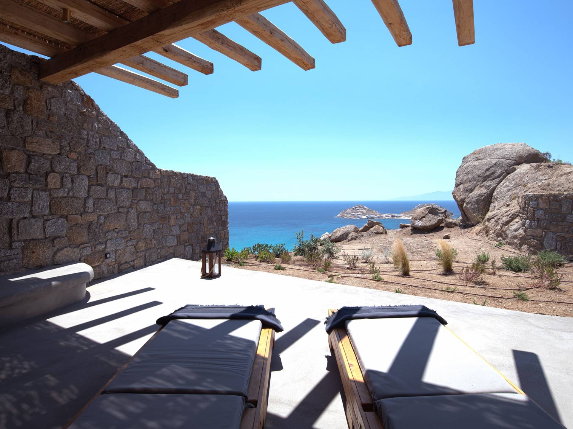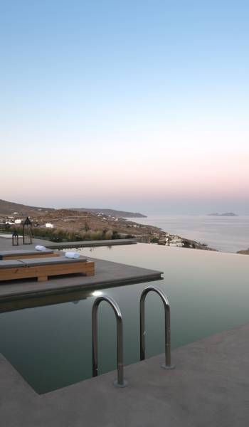 Villa Aqua Marine Mykonos está situada en un terreno privilegiado que ofrece gloriosas vistas del mar Egeo, la villa Aqua Marine es un hermoso 250sq.m. residencia de cuatro dormitorios que captura perfectamente el estilo atemporal de la isla. La estructura, una losa revestida de piedra diseñada para tener un impacto mínimo en el paisaje, se extiende por dos niveles que se abren a terrazas equipadas con todos los elementos esenciales para vivir al aire libre: hay una pérgola con áreas de descanso y comedor a la sombra y una hermosa piscina infinita, todo orientado hacia el paisaje marino. Aunque la residencia es parte de un complejo de 3 casas, está configurada de tal manera que se siente privada y completamente abierta al glorioso paisaje al mismo tiempo.