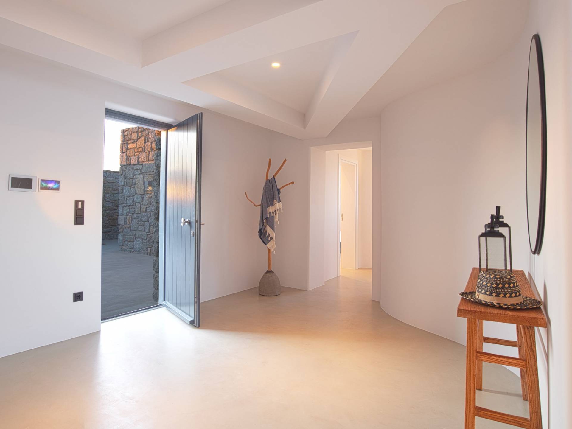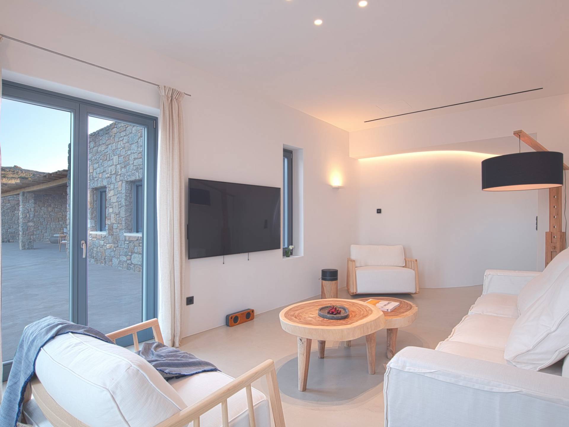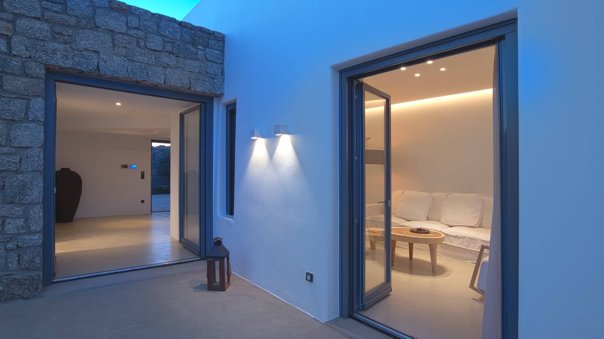 Villa Aqua Marine Mykonos está situada en un terreno privilegiado que ofrece gloriosas vistas del mar Egeo, la villa Aqua Marine es un hermoso 250sq.m. residencia de cuatro dormitorios que captura perfectamente el estilo atemporal de la isla. La estructura, una losa revestida de piedra diseñada para tener un impacto mínimo en el paisaje, se extiende por dos niveles que se abren a terrazas equipadas con todos los elementos esenciales para vivir al aire libre: hay una pérgola con áreas de descanso y comedor a la sombra y una hermosa piscina infinita, todo orientado hacia el paisaje marino. Aunque la residencia es parte de un complejo de 3 casas, está configurada de tal manera que se siente privada y completamente abierta al glorioso paisaje al mismo tiempo.