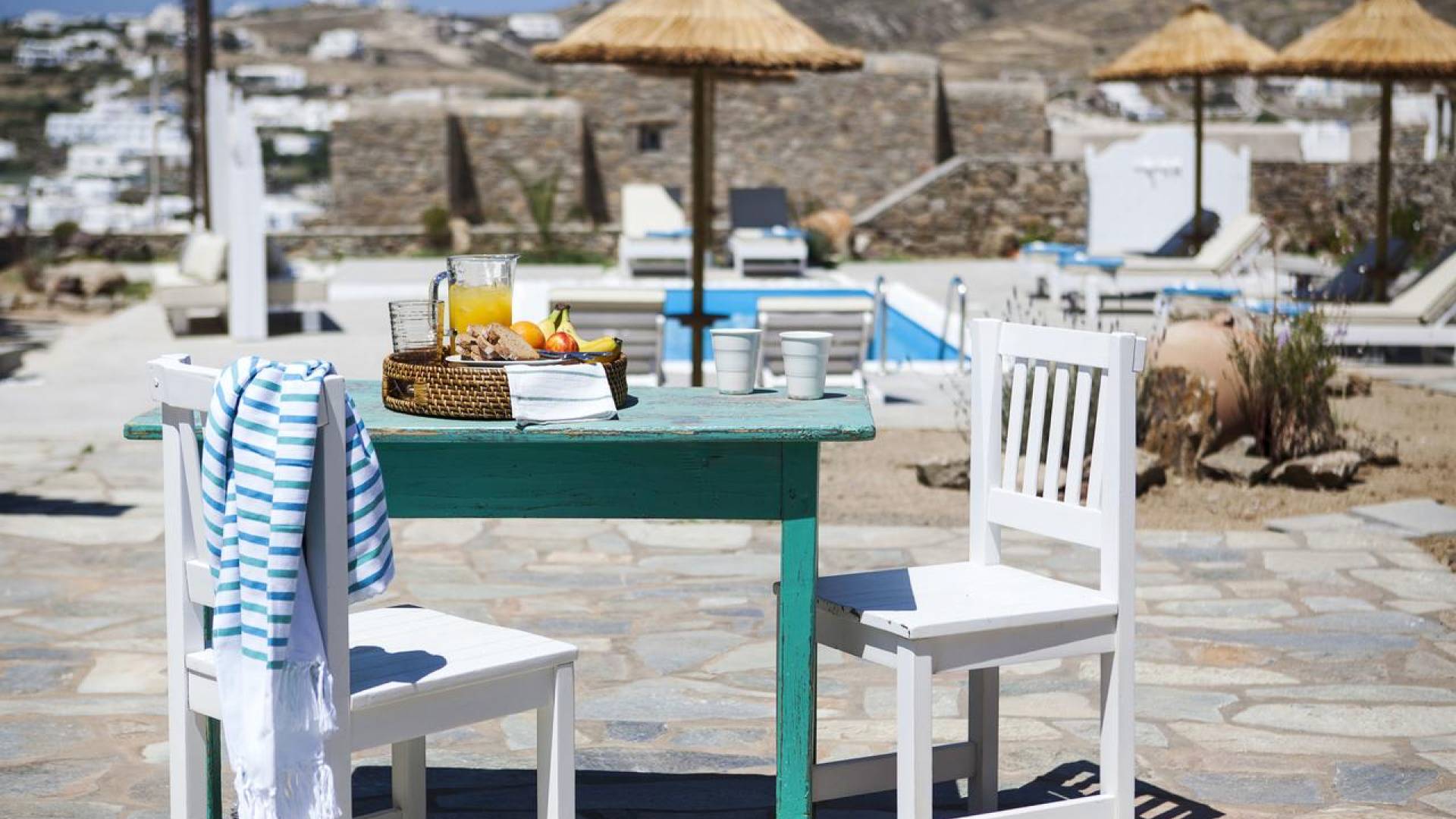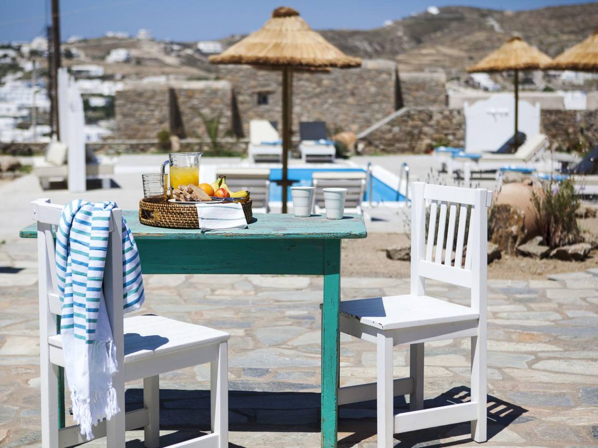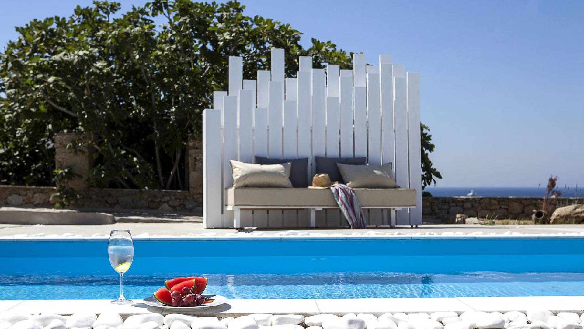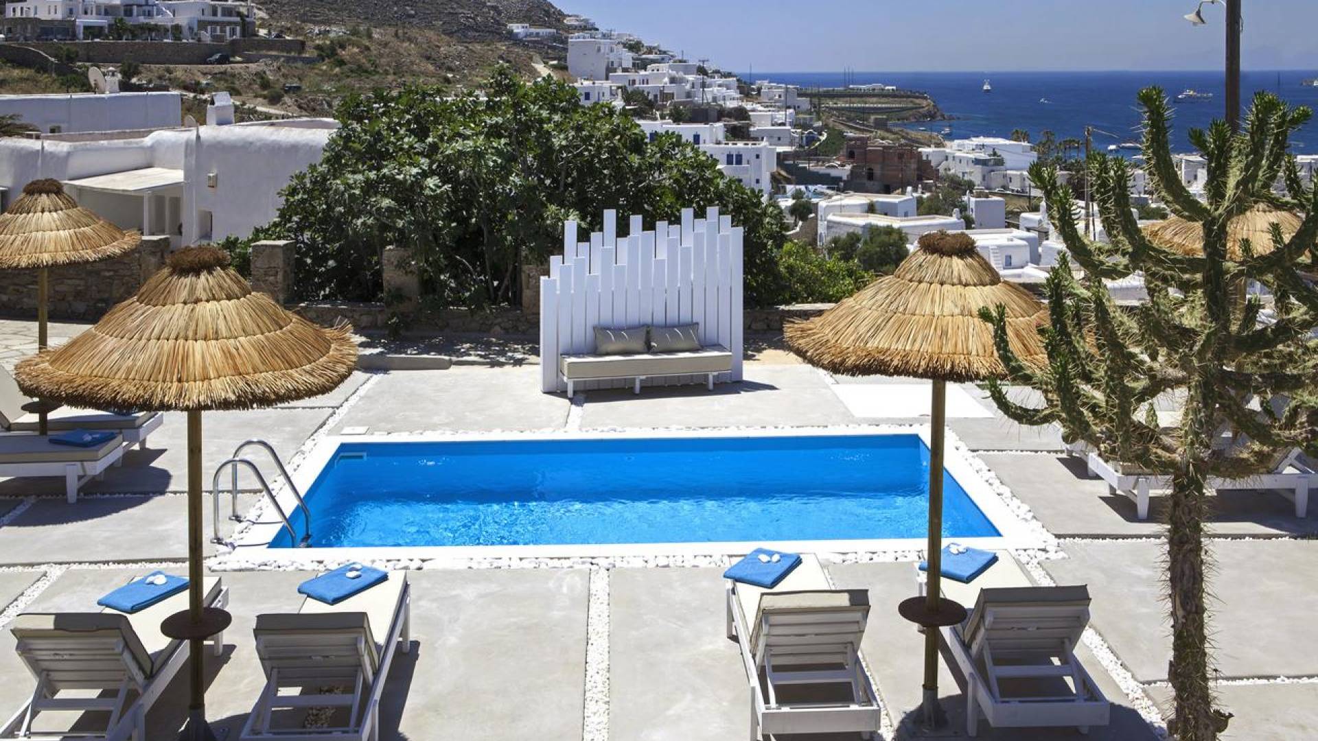 Thalassa Prive Villa Mykonos es una lujosa villa privada con vistas al mar en Mykonos con piscina privada, que brinda total privacidad para un alojamiento discreto en Mykonos, con comodidad y lujo. Esta finca de lujo ofrece un gran jardín con área de piscina, ideal para que los huéspedes se relajen, mientras disfrutan de las vistas panorámicas hacia las aguas cristalinas de la playa de Ornos y también al asentamiento tradicional de Ornos. El diseño de Thalassa Villa en Mykonos ha sido diseñado orgánicamente para optimizar la hermosa vista al mar y la vista a la piscina, conectando perfectamente los espacios interiores y exteriores, para un alojamiento de villa exclusivo y distintivo, entre villas de lujo en la isla de Mykonos, Grecia.