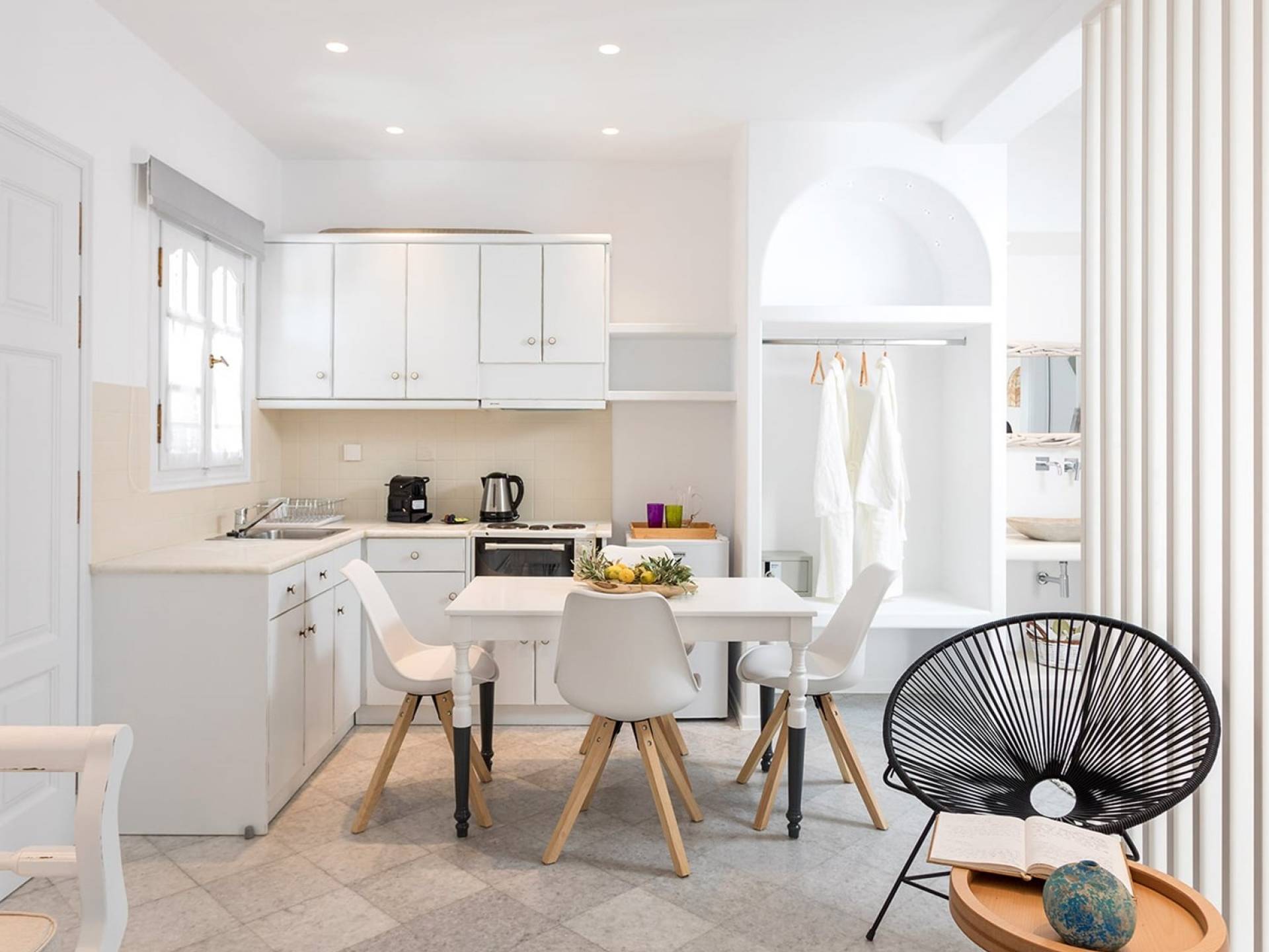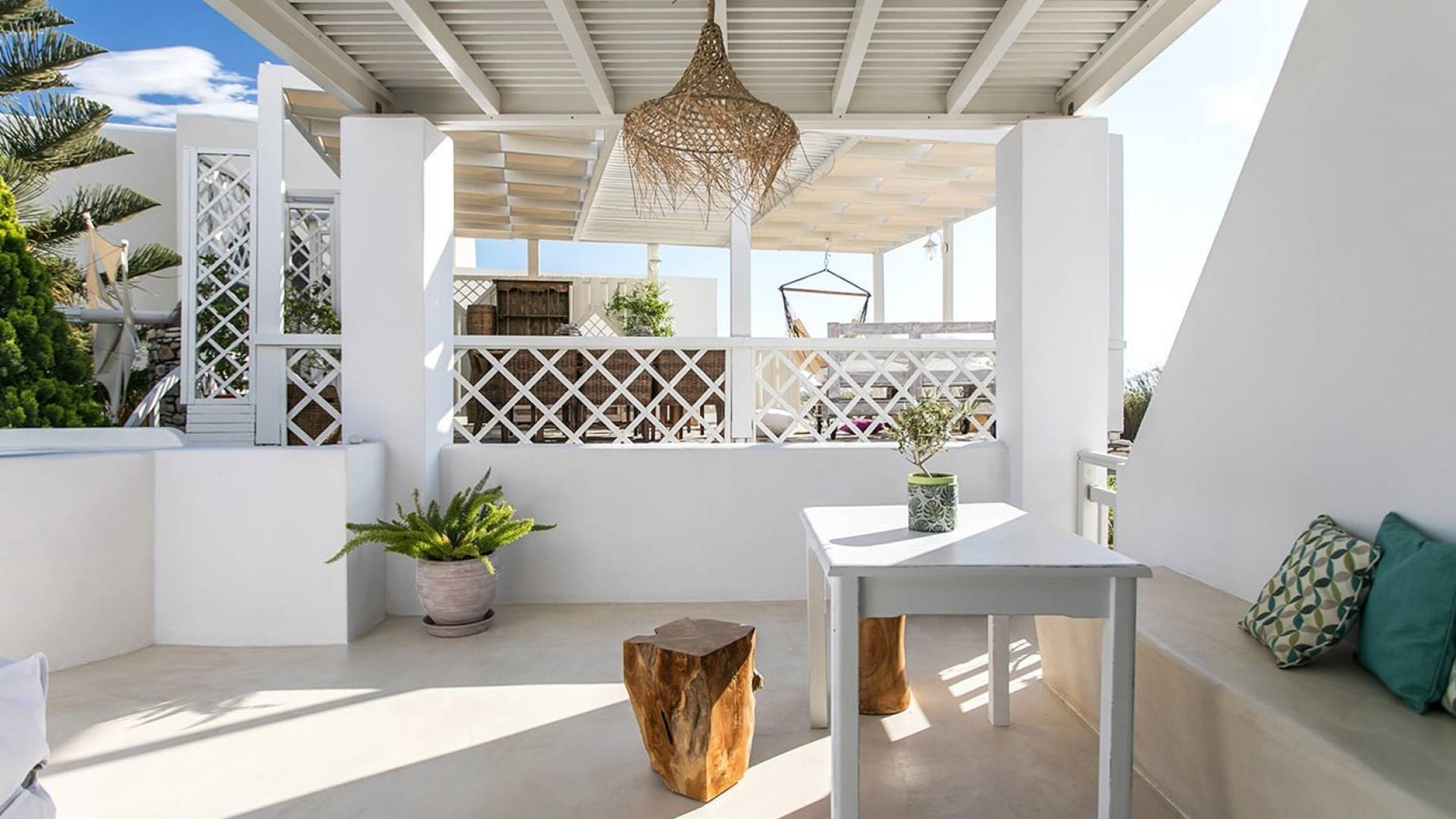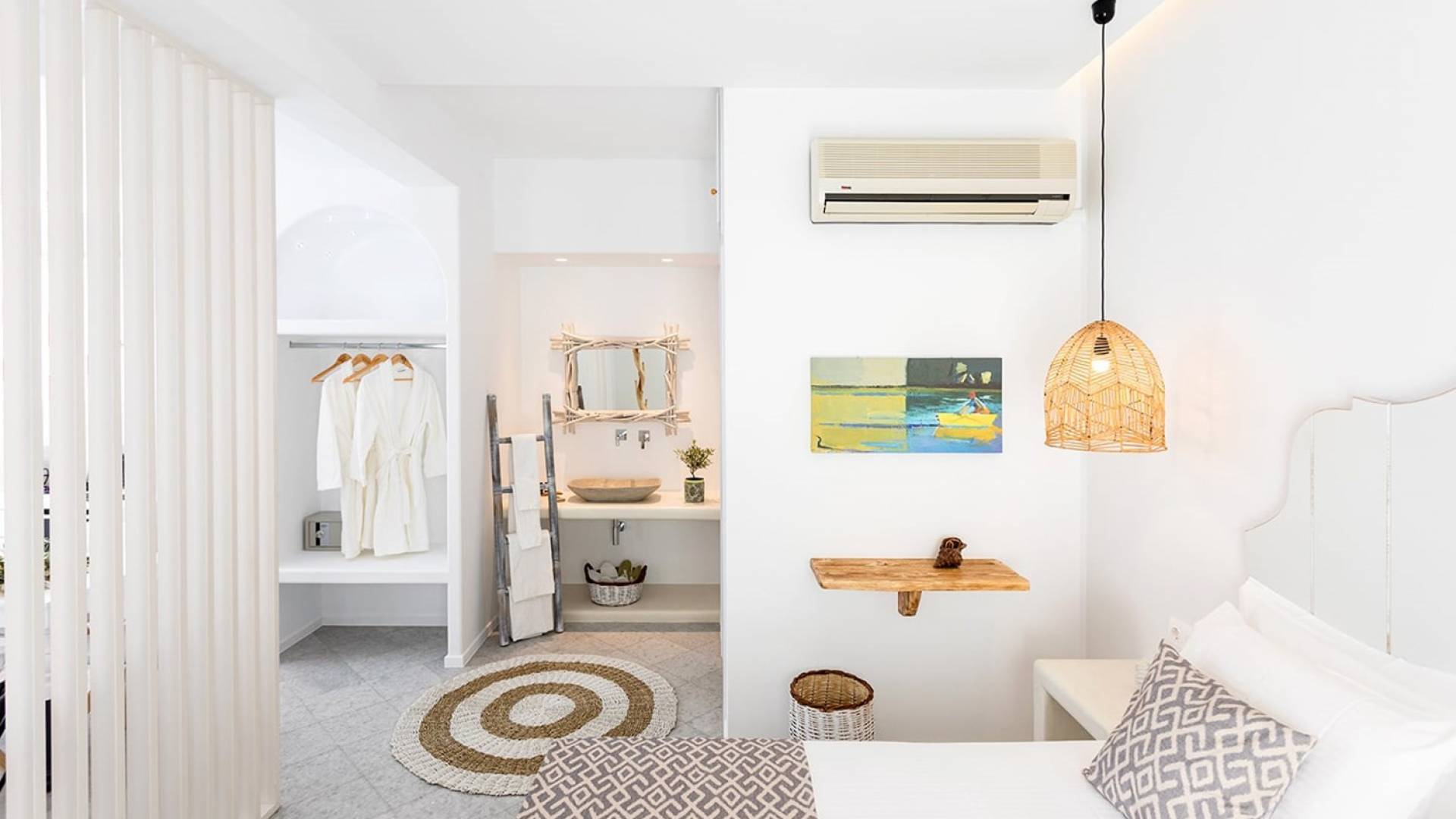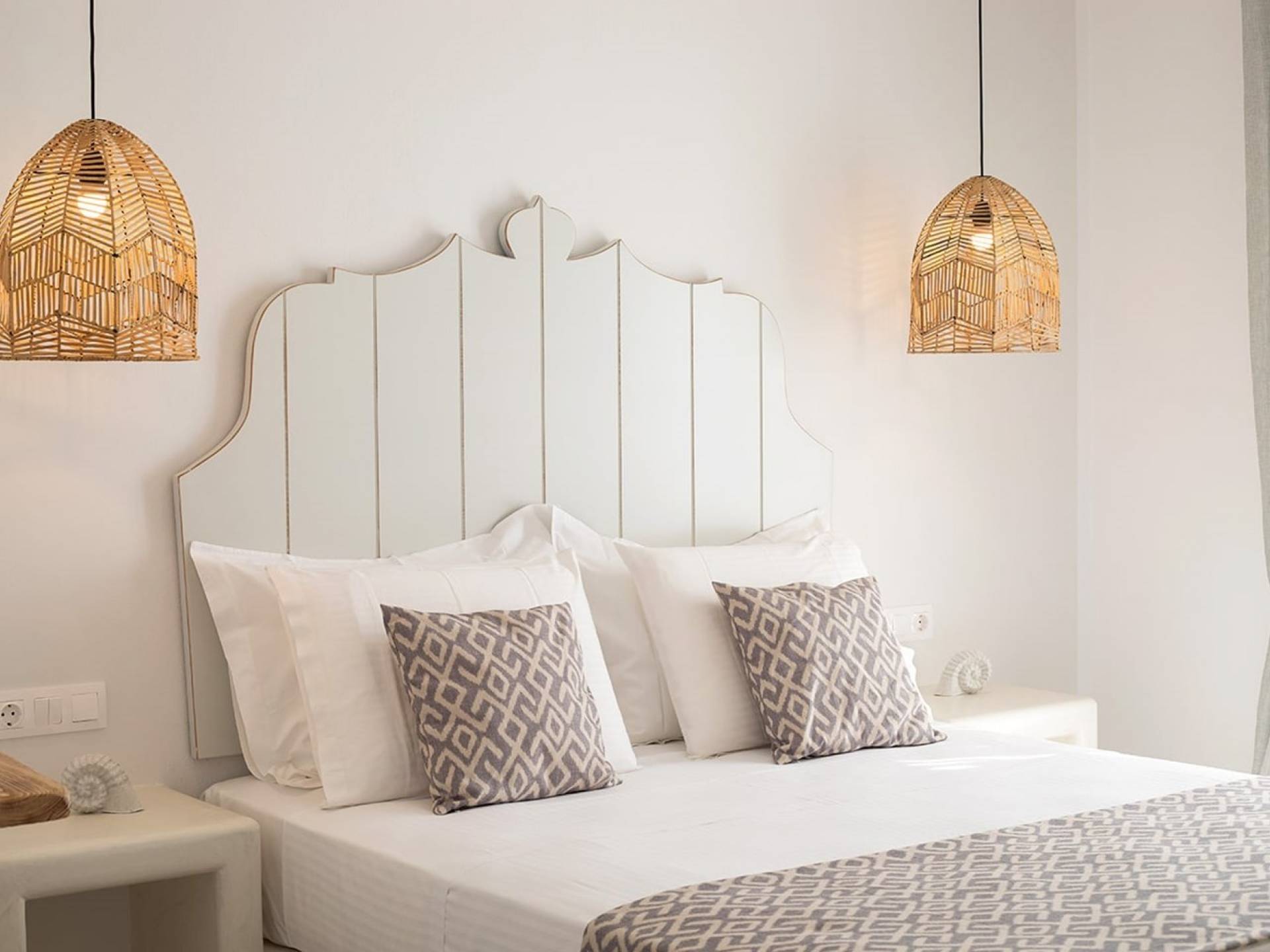 Además, en sintonía con la belleza de su entorno natural, Aeolos Luxury Villas & Suites ofrece ventajosas vistas panorámicas que se extienden desde los picos de las montañas de la isla y el campo llano hasta las casas encaladas de cubos de azúcar de la ciudad principal, el resplandeciente mar Egeo, y la impresionante puesta de sol.