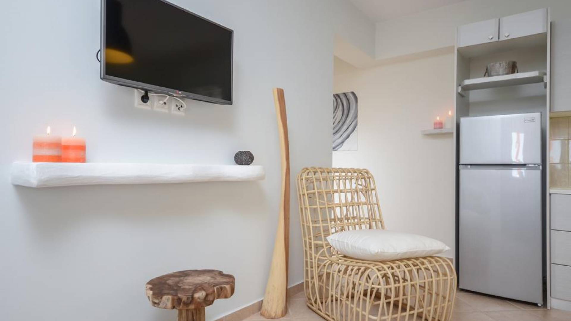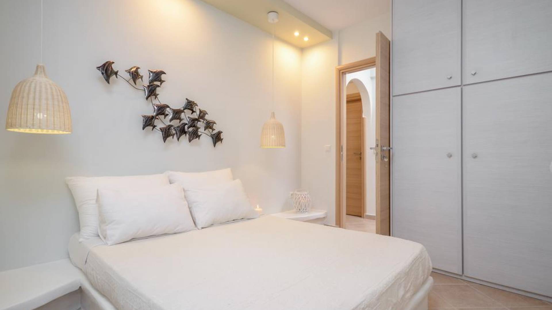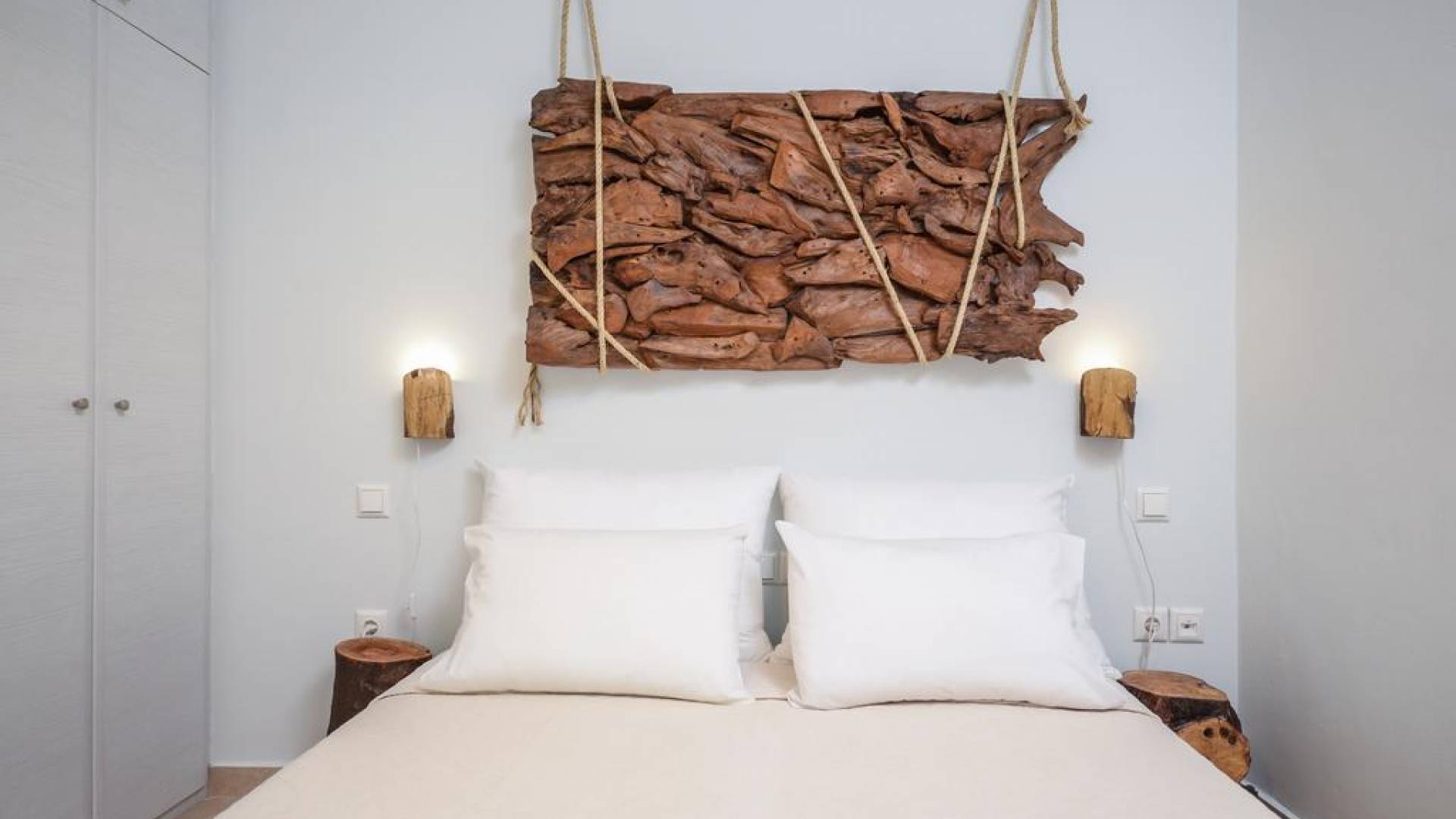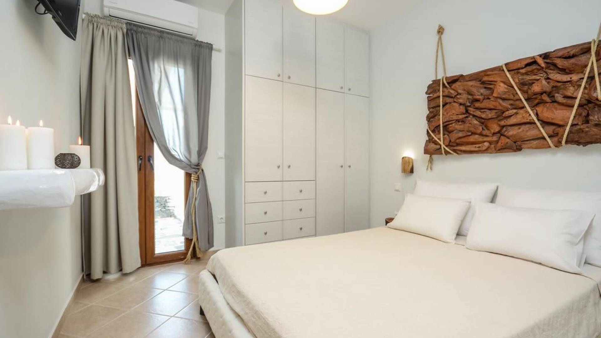 Grand Suite en Villa Bella Vista Naxos es una suite de lujo en alquiler con 2 dormitorios y un jacuzzi al aire libre. La Grand Suite tiene 85 m2 y ofrece 2 habitaciones (camas dobles), sala de estar, área de cocina, 2 baños, jacuzzi exterior privado, vista al mar.