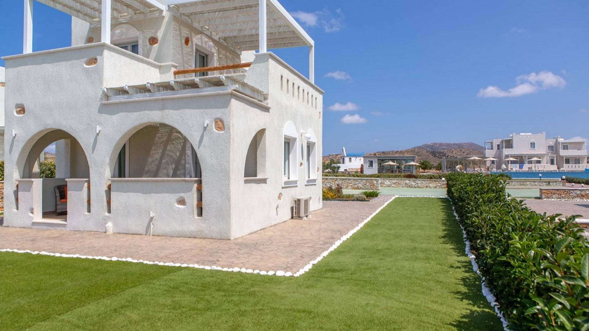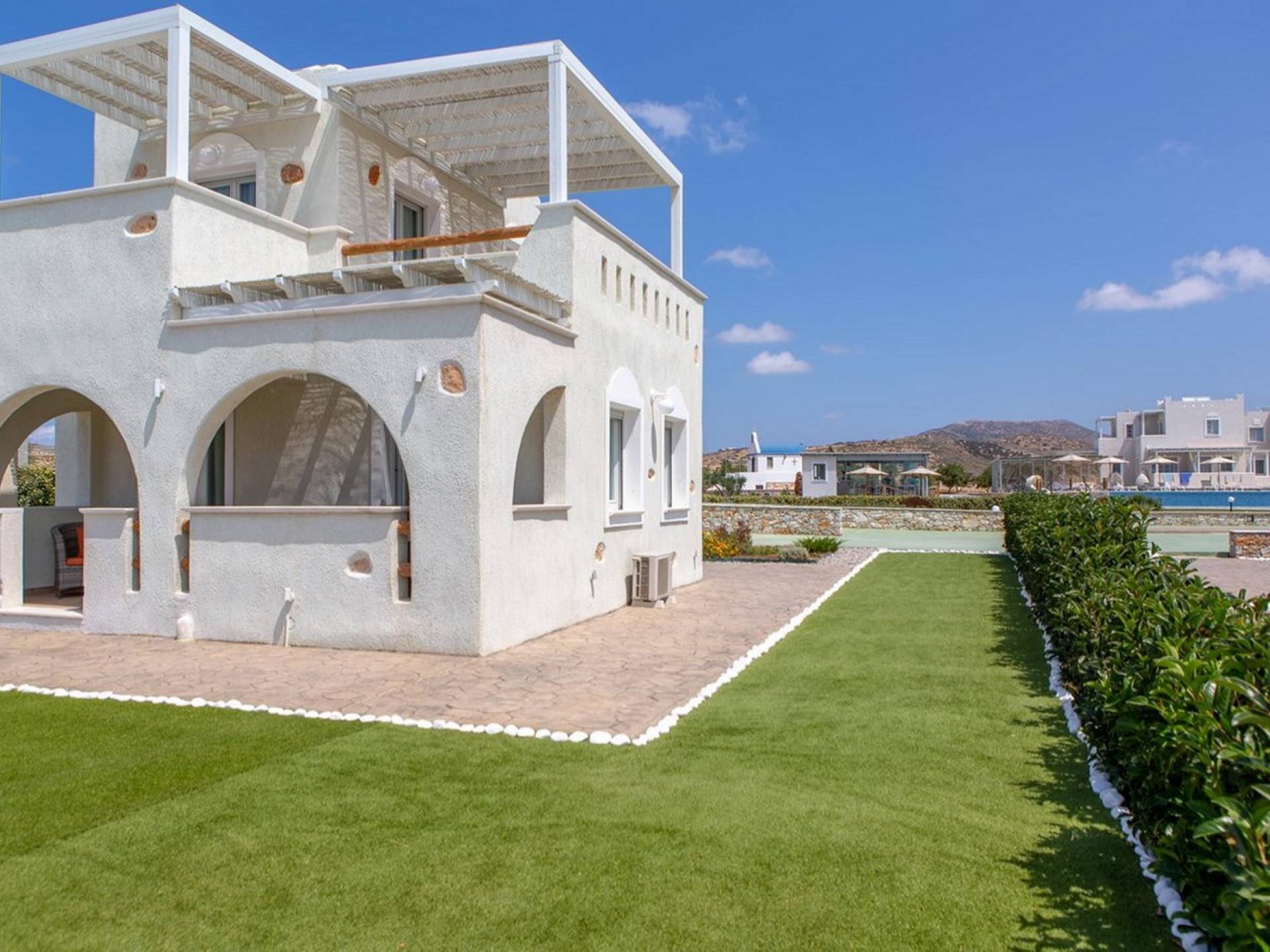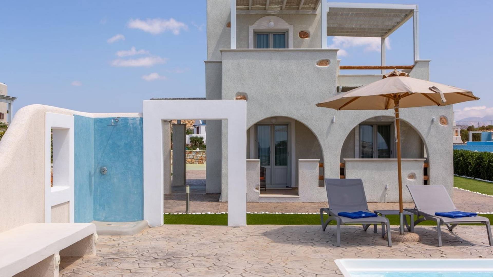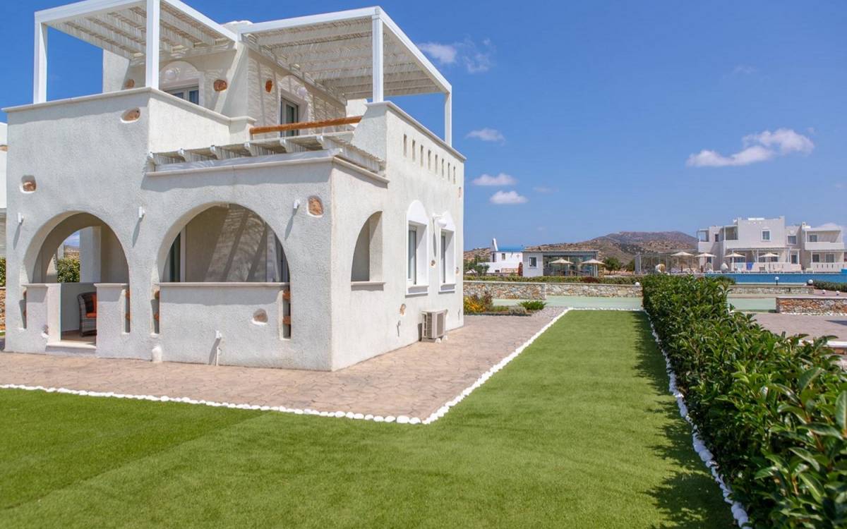 Diseñadas temáticamente para capturar la esencia de "ser uno" con el sol y la luna de verano del Egeo, el cielo azul y las noches estrelladas, Sun and Moon Villas cuenta con un estilo contemporáneo de las Cícladas que combina la belleza natural distintiva característica de Naxos con lujosas alojamiento.