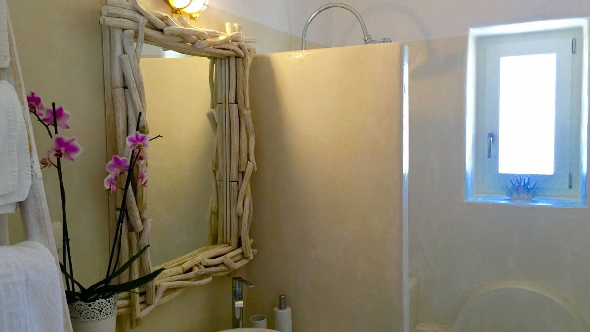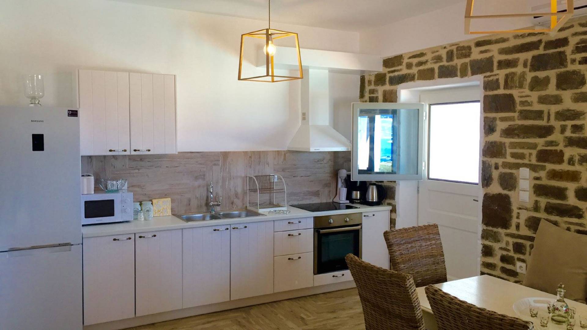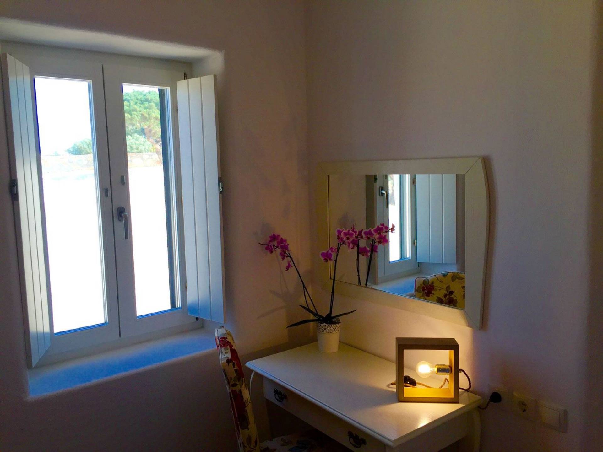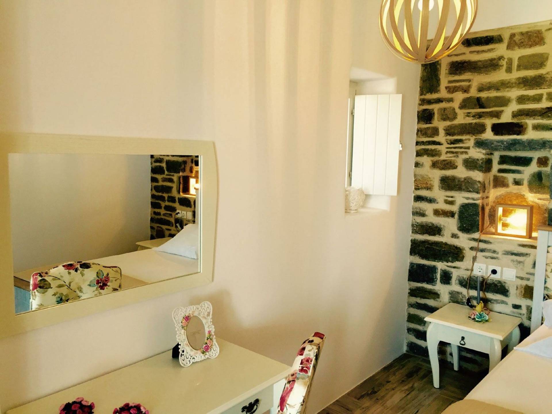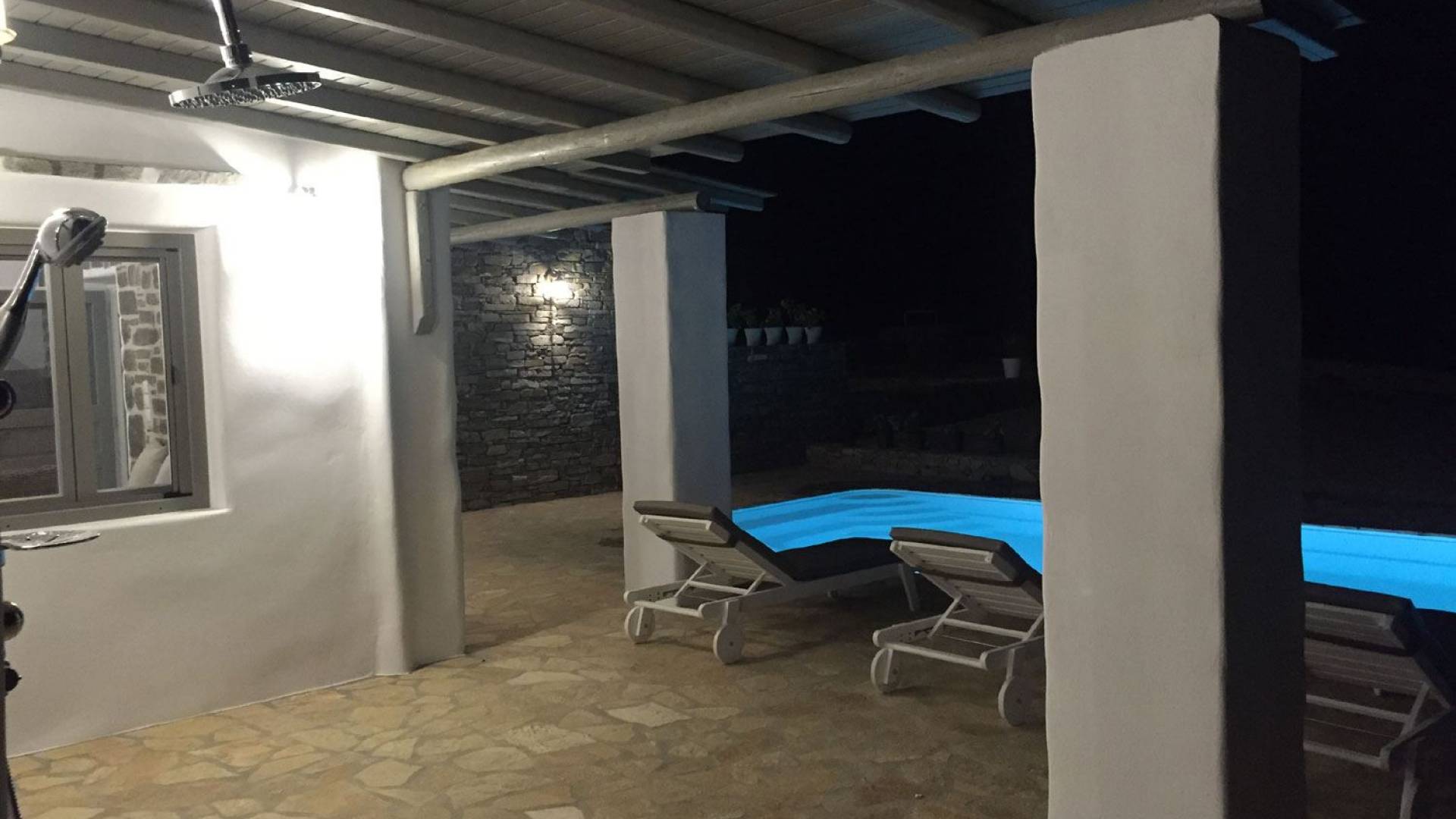 Villa Afrodite 3 en Paros Villas ofrece una piscina privada, un espacio de usos múltiples con un salón, que cuenta con 1 sofá tradicional con sillas, cocina con todos los utensilios (tazas, platos, ollas, etc.), chimenea y horno tradicional, familia nevera y congelador, un dormitorio con cama doble (2 personas), un dormitorio con una cama doble (2 personas) y un sofá cama (1 persona). También incluye un gran baño de mármol con inodoro y una bañera tradicional, una barbacoa y una lavadora. Todos los espacios anteriores cuentan con calefacción autónoma, A/C, T/V, wifi gratis.