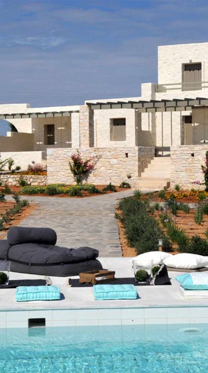 Stagones Villas Paros, es un exclusivo complejo de alquiler de villas, que ofrece privacidad, alojamiento espacioso y suntuosamente amueblado. Stagones Villas Paros consta de siete villas ubicadas en el pueblo costero de Ampelas, a solo 10 minutos en coche del conocido destino, Naoussa de Paros.